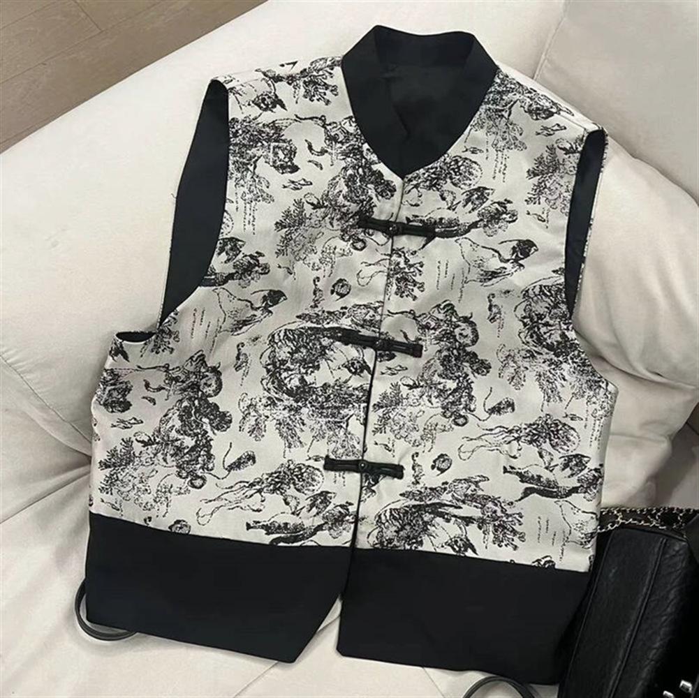 Chaleco de moda de estilo nacional para mujer, primavera 2024, nuevo chaleco adelgazante que combina con todo, nuevo chaleco con costuras de estilo chino, chaqueta sin mangas