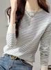 Suéter de rayas de cuello redondo de estilo coreano para mujer, diseño fino, temperamento adelgazante, camisa holgada de manga larga, jersey superior