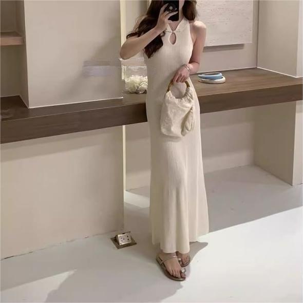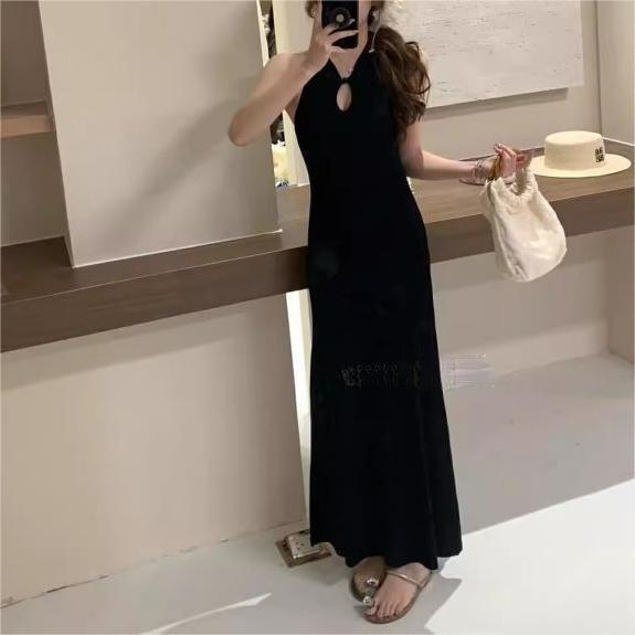 Nuevo Cheongsam de Atmósfera de Estilo Chino Vestido de Punto de Verano sin Mangas Ajustado Adelgazante Vestido Básico Falda Larga