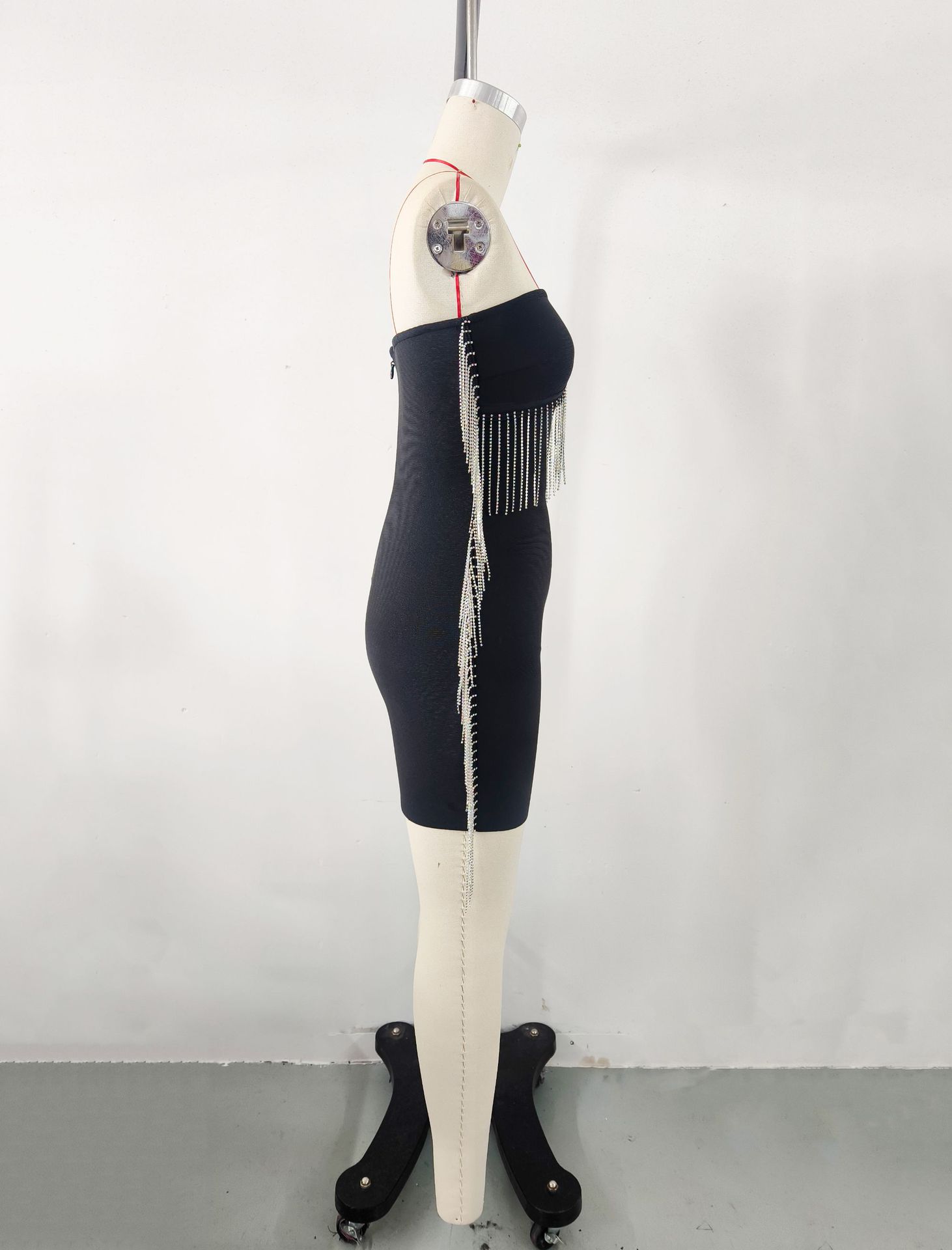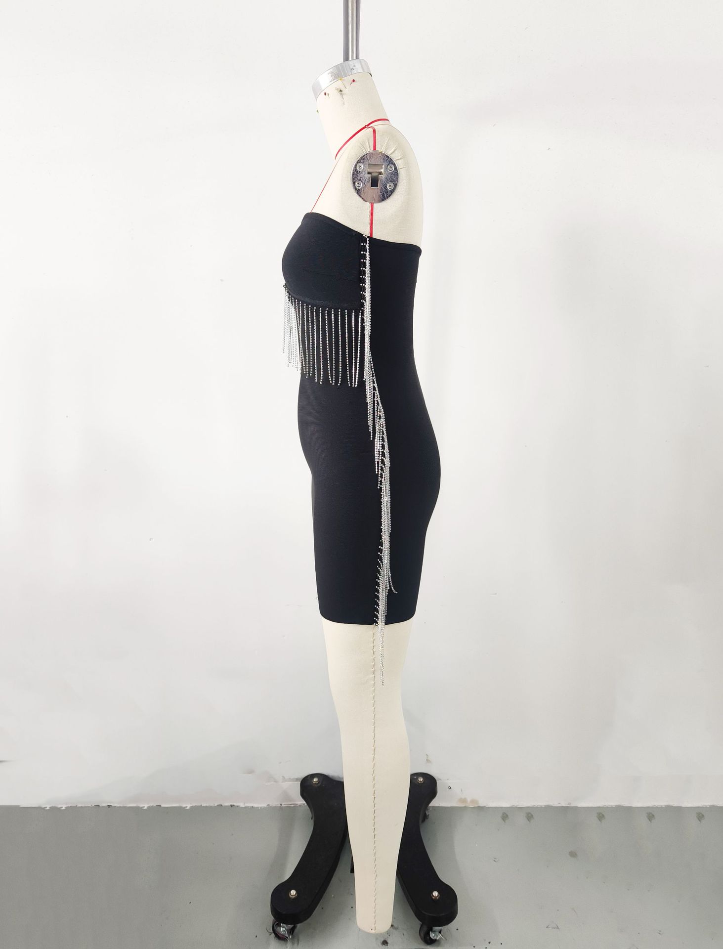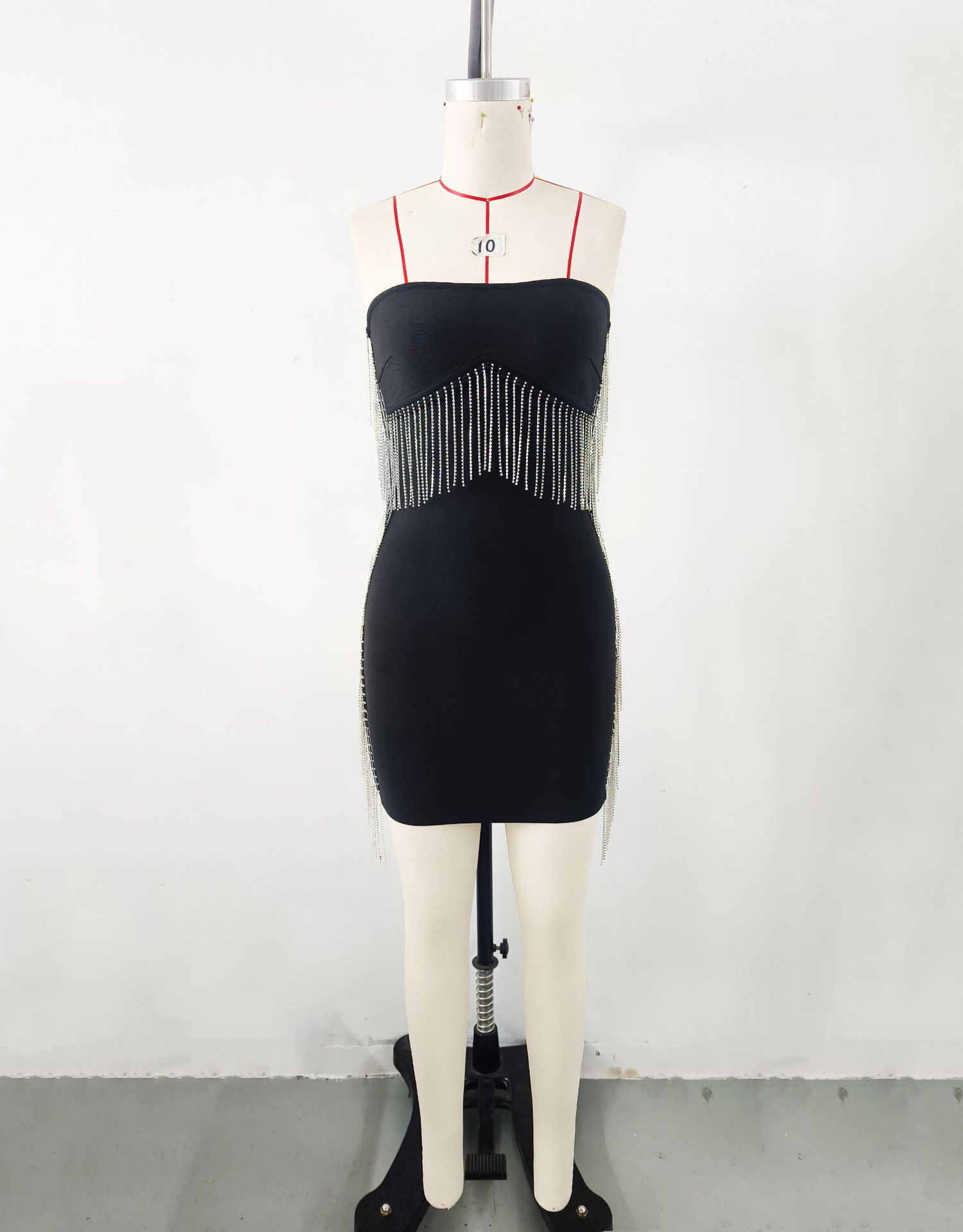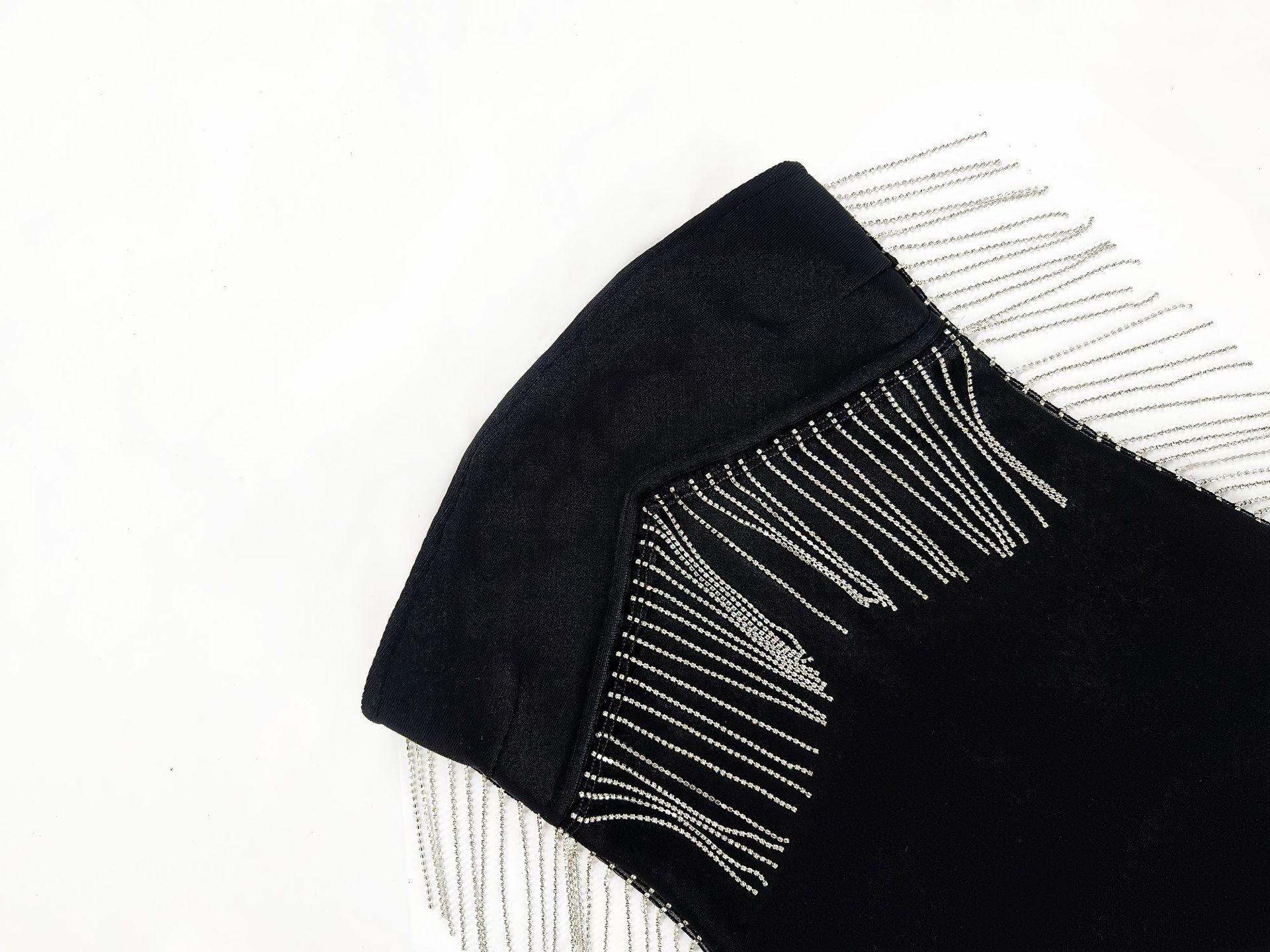 Amazon Vestido de Fiesta Sexy de Verano para Mujer 2025 Negro Top de Tubo Cadena de Borlas Falda Vendaje