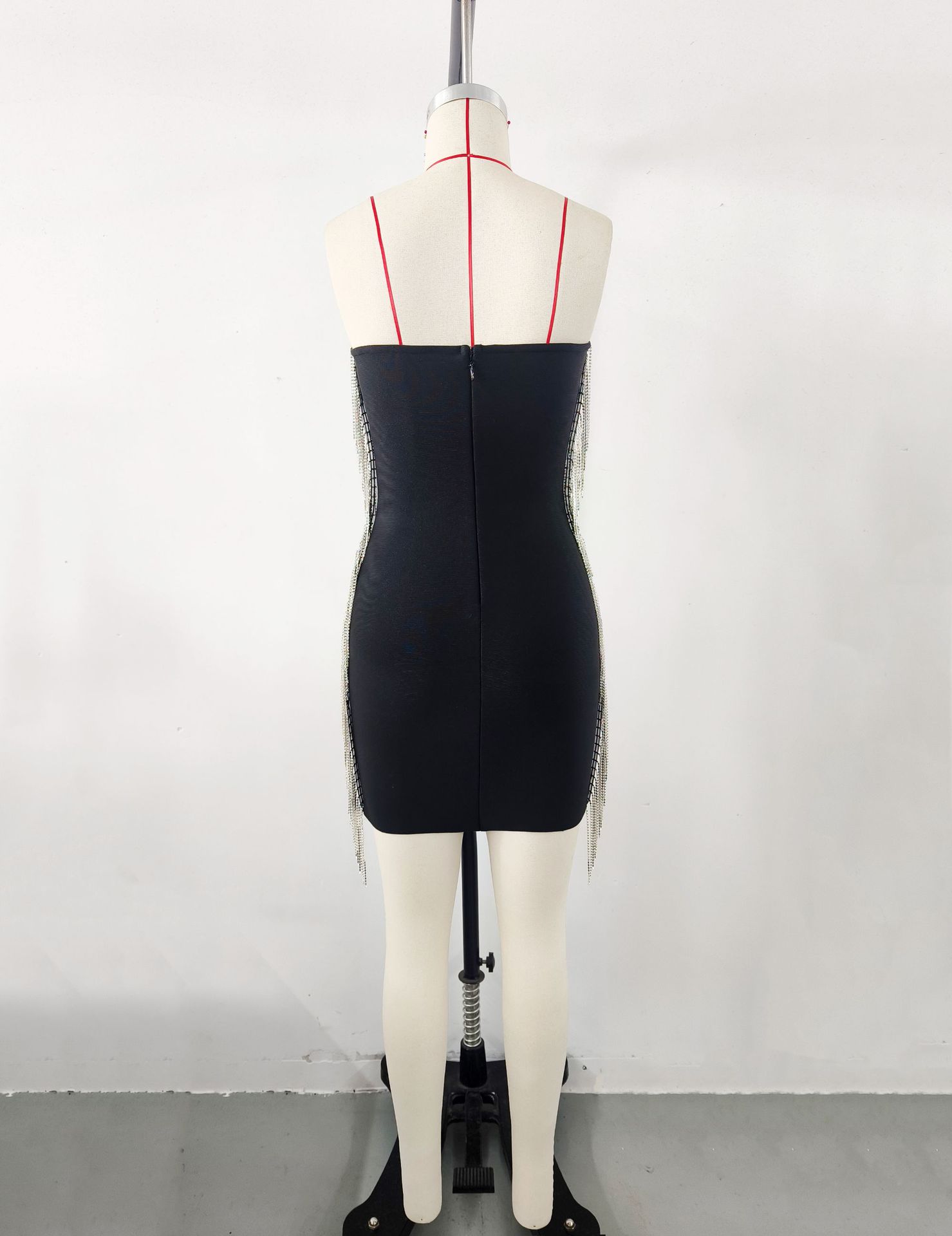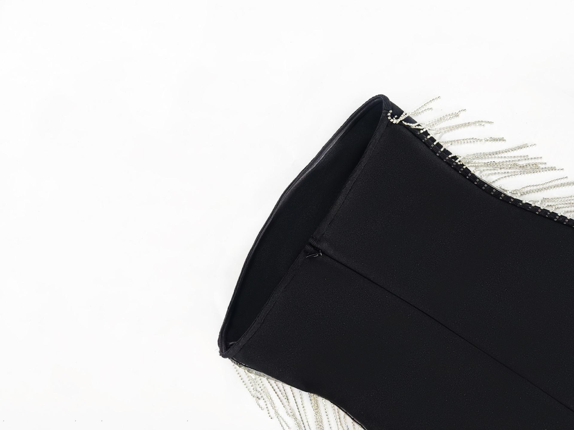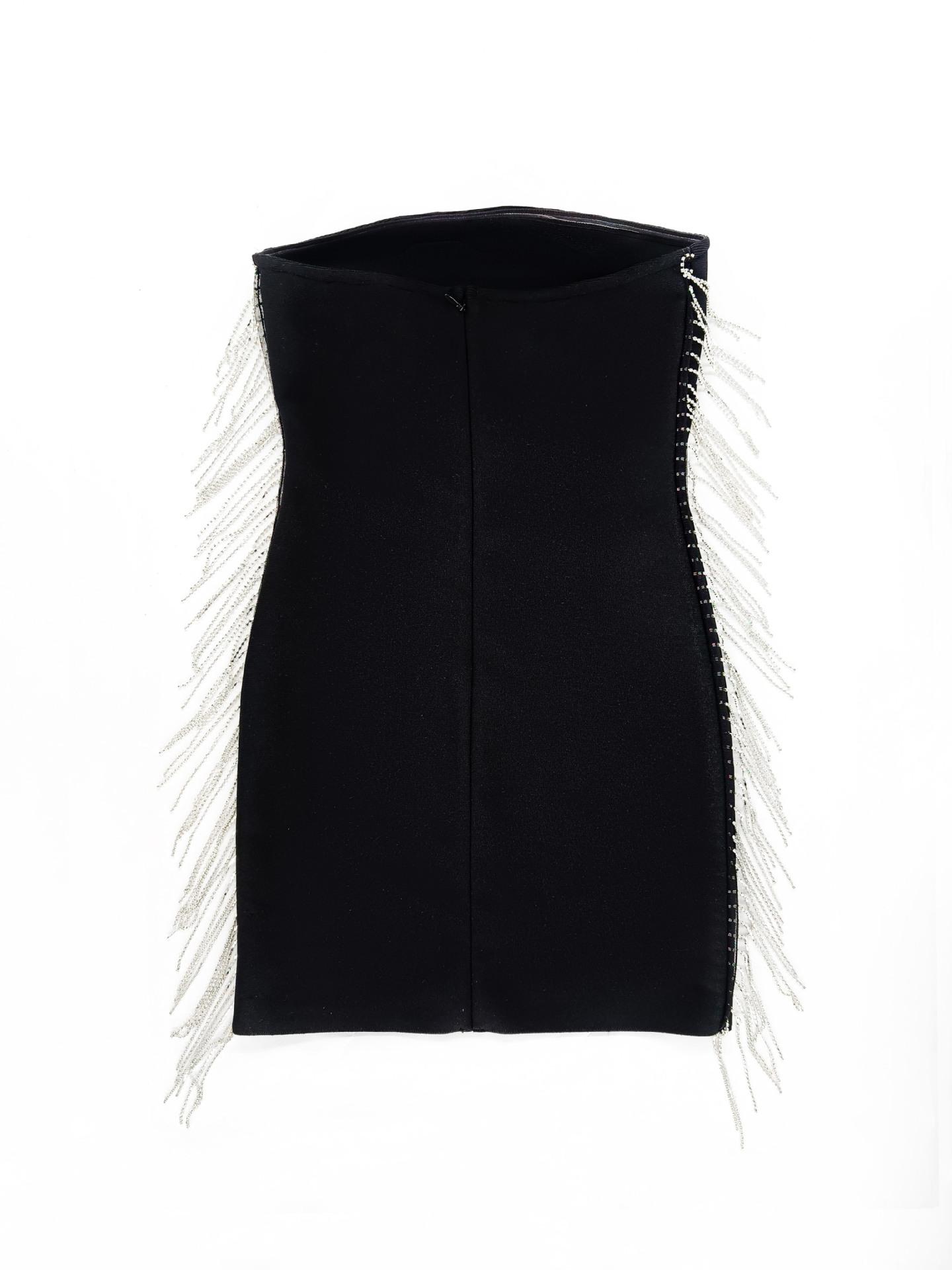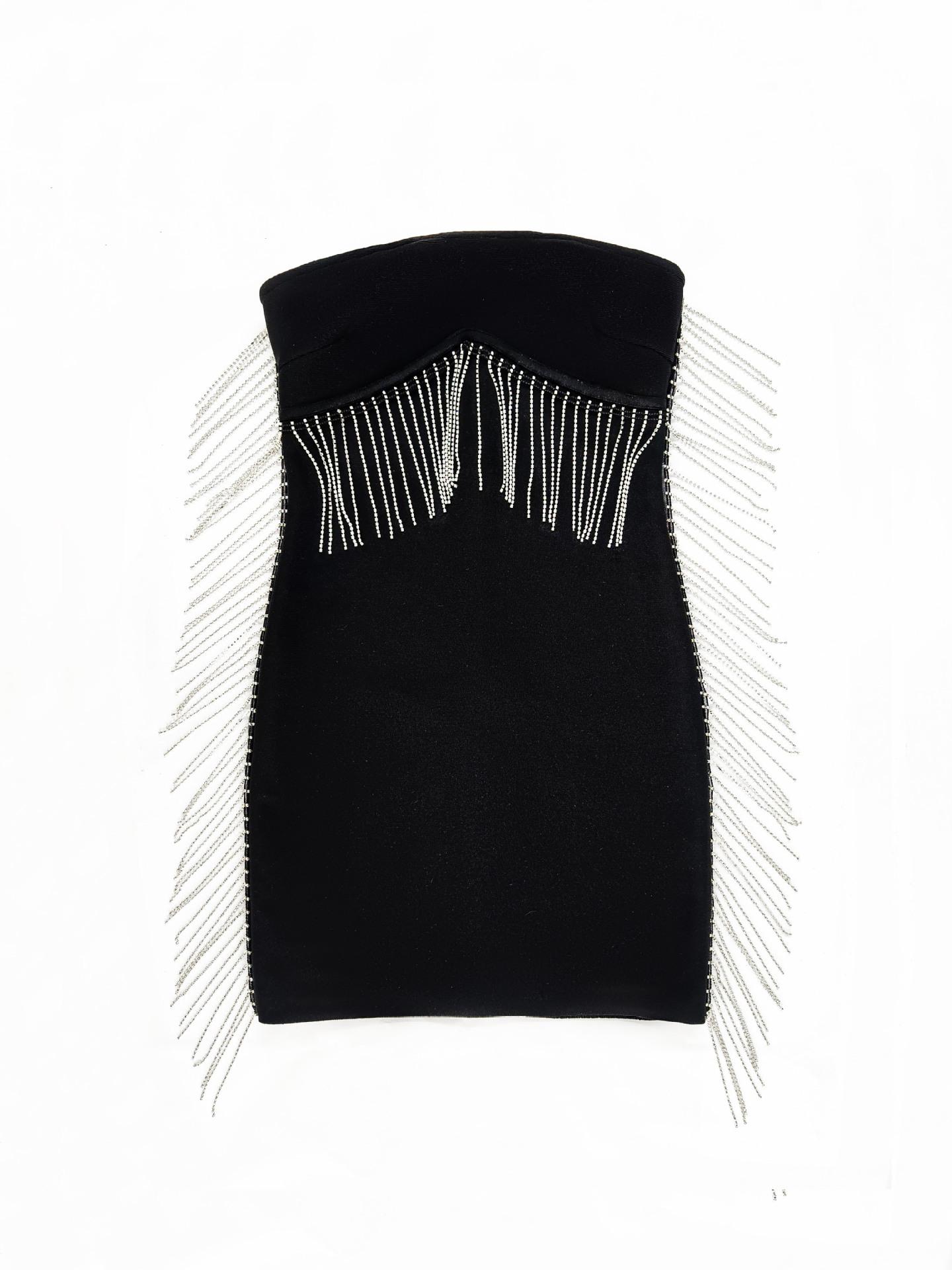 Amazon Vestido de Fiesta Sexy de Verano para Mujer 2025 Negro Top de Tubo Cadena de Borlas Falda Vendaje