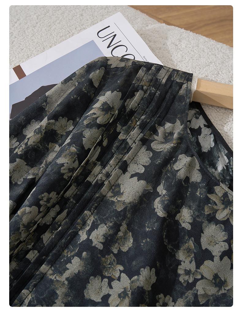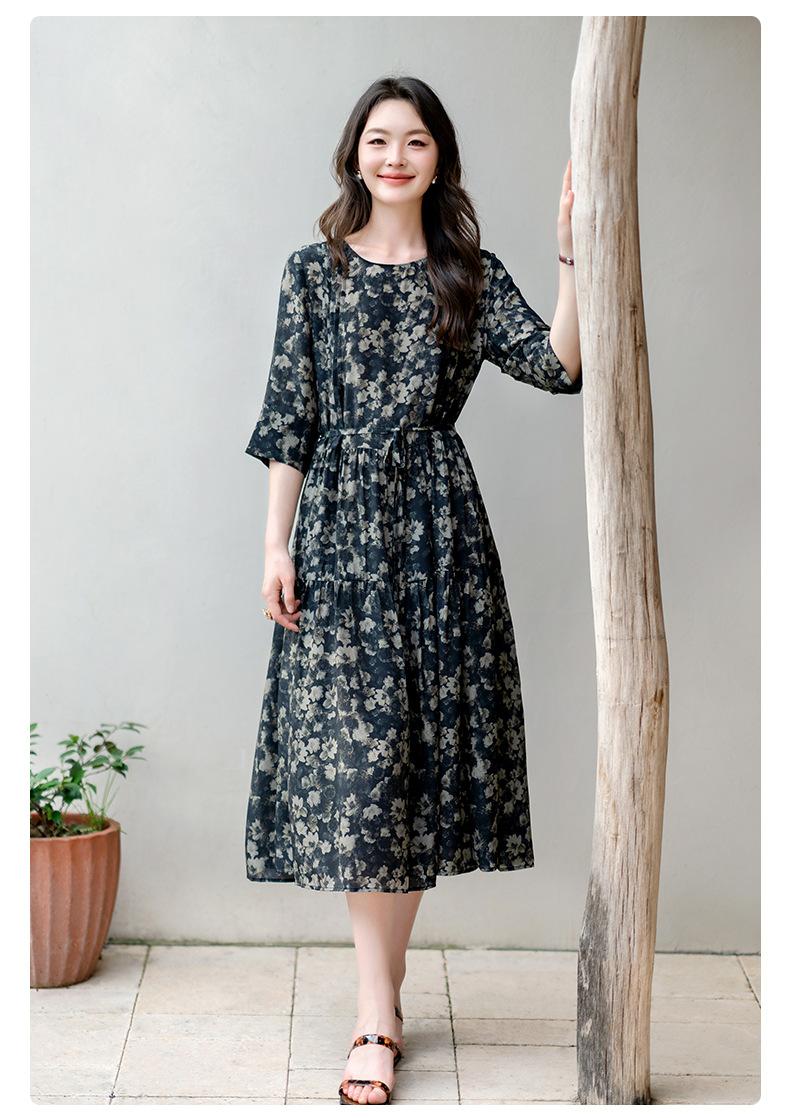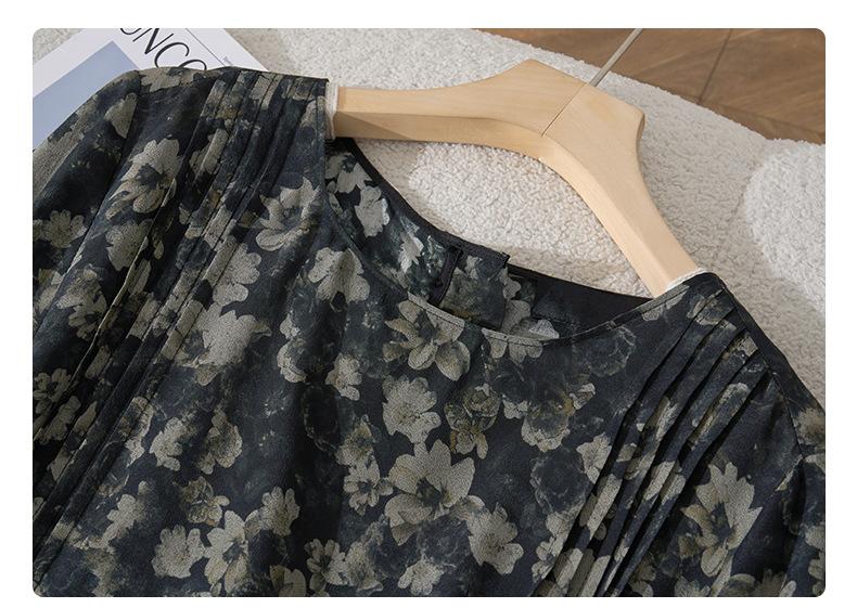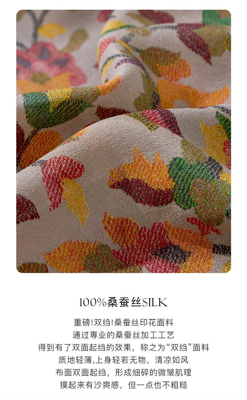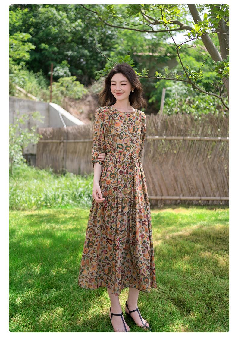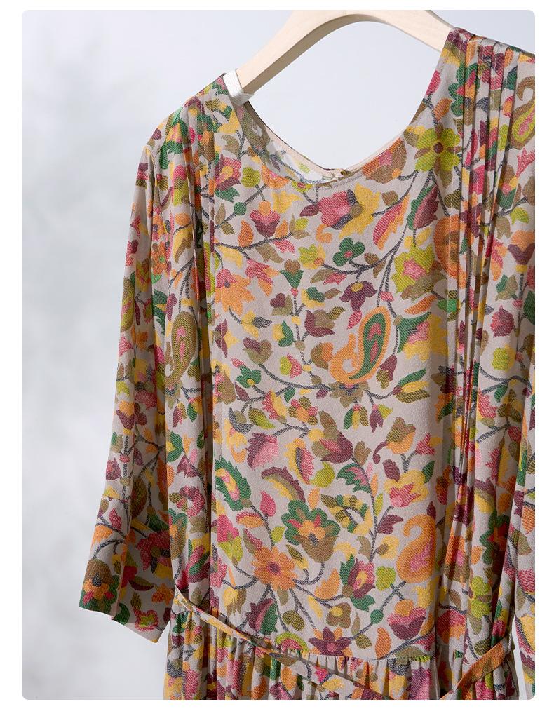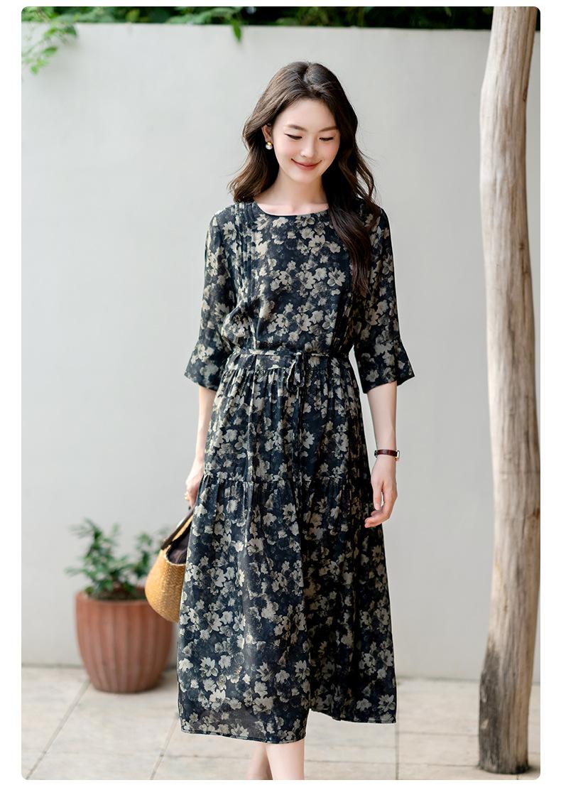 Vestido de seda morera de una sola capa con diseño plisado floral y cuello redondo de Rongtai, falda adelgazante con cordones de verano para mujer