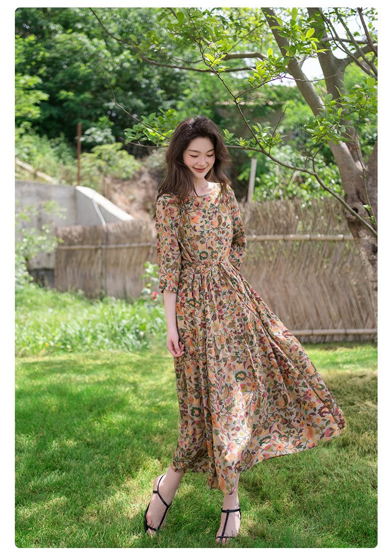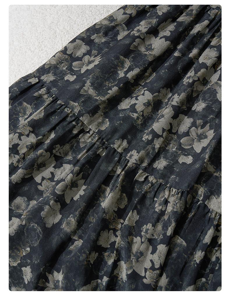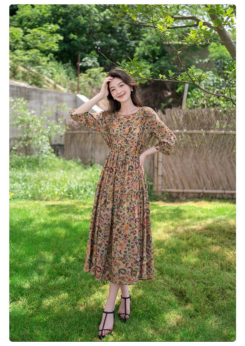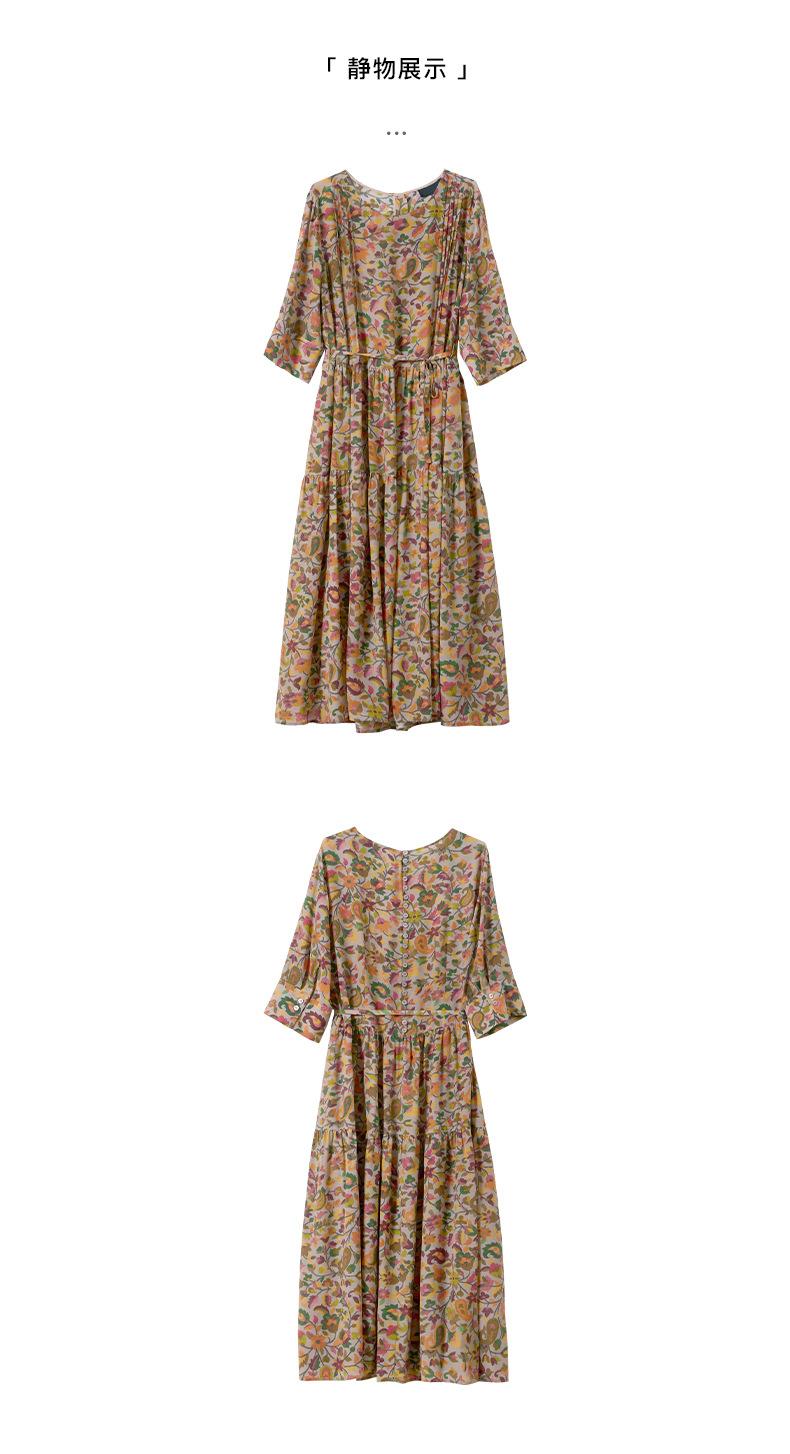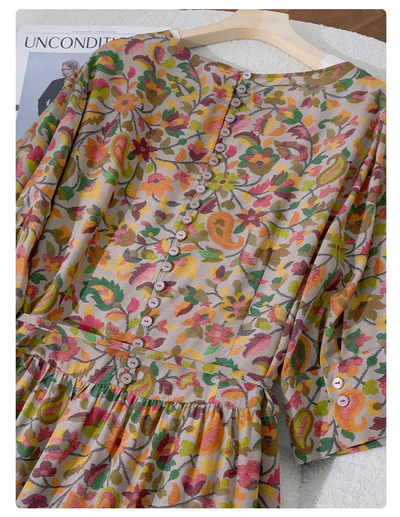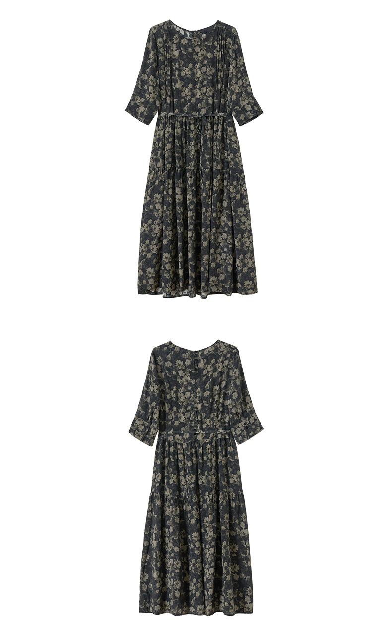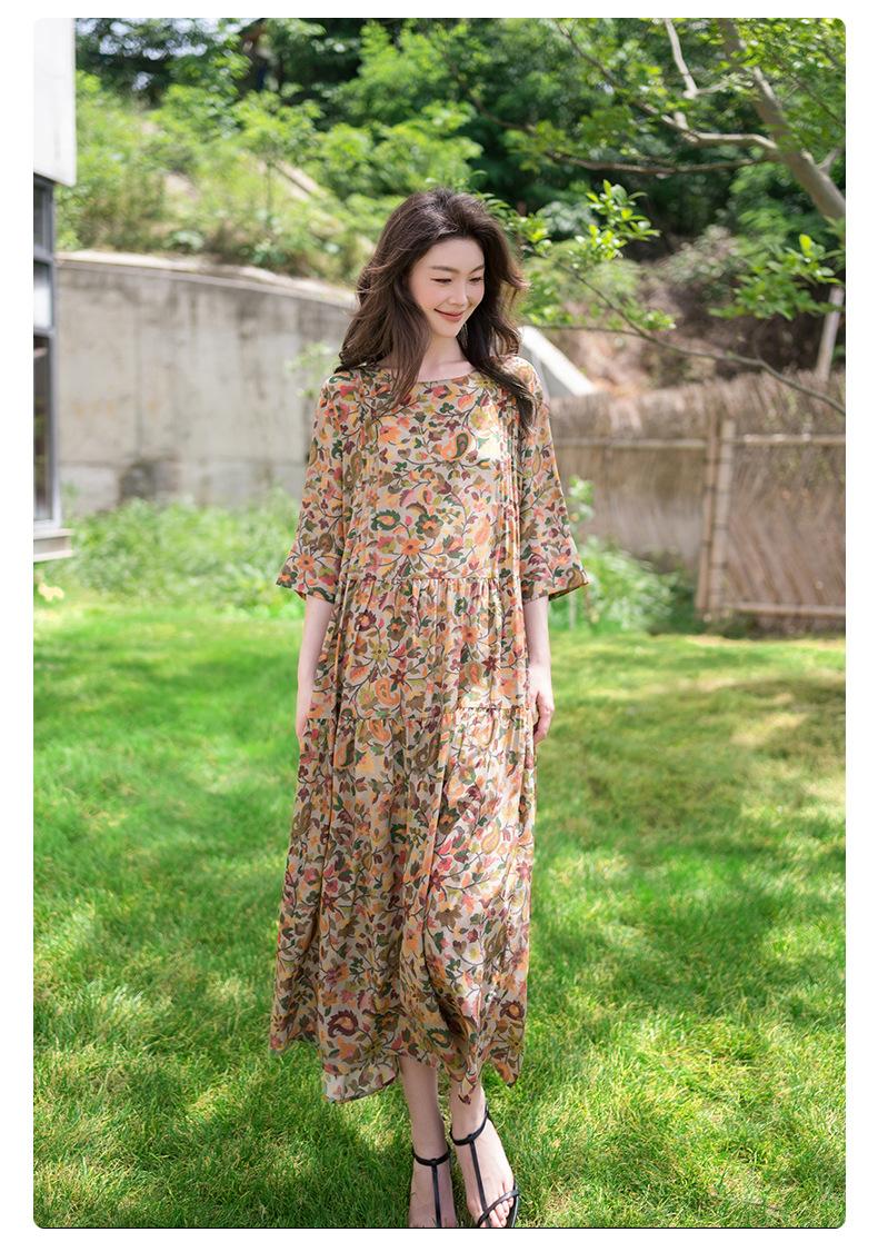 Vestido de seda morera de una sola capa con diseño plisado floral y cuello redondo de Rongtai, falda adelgazante con cordones de verano para mujer