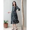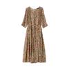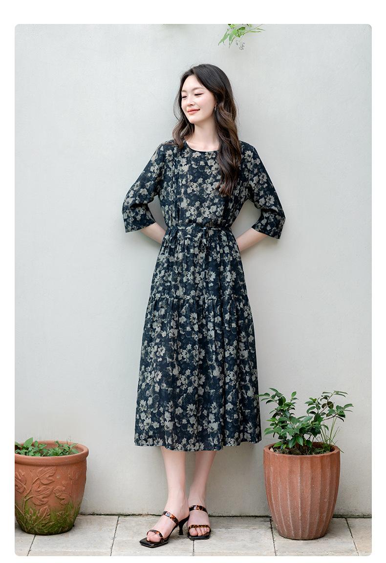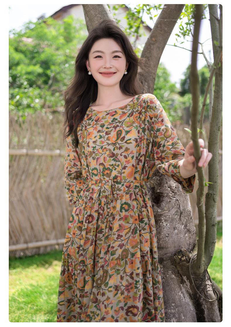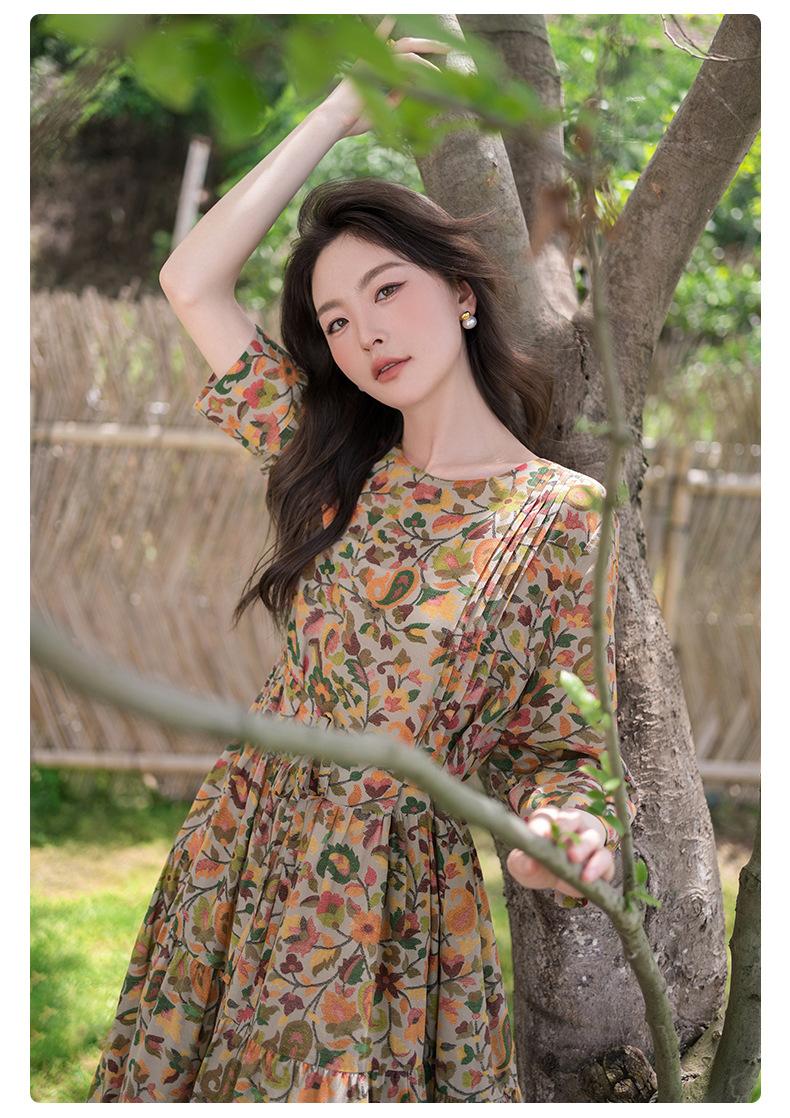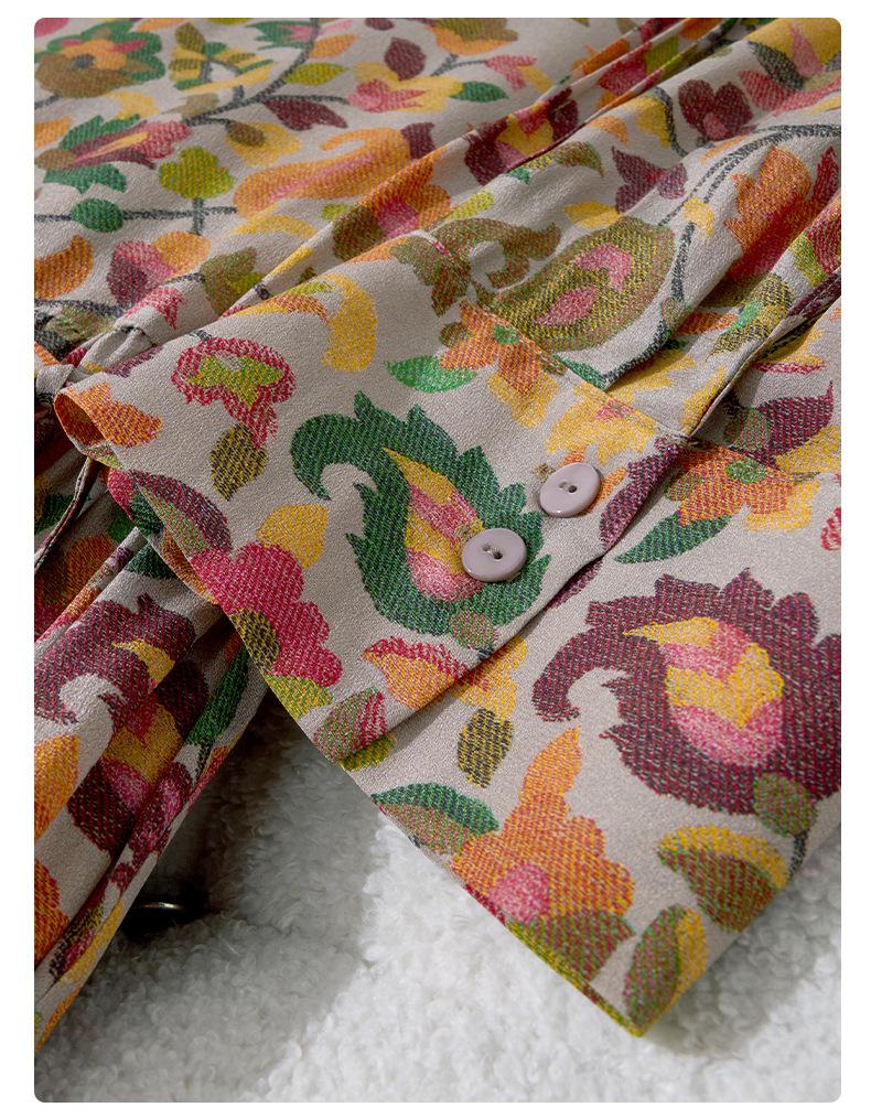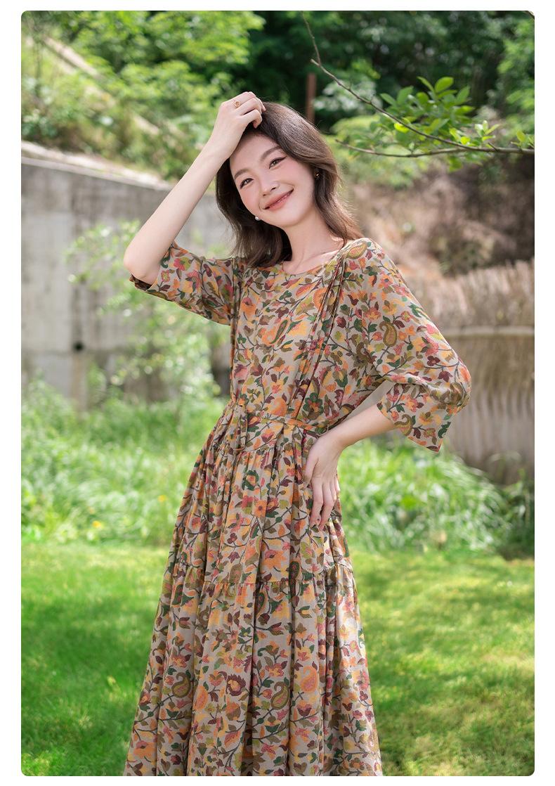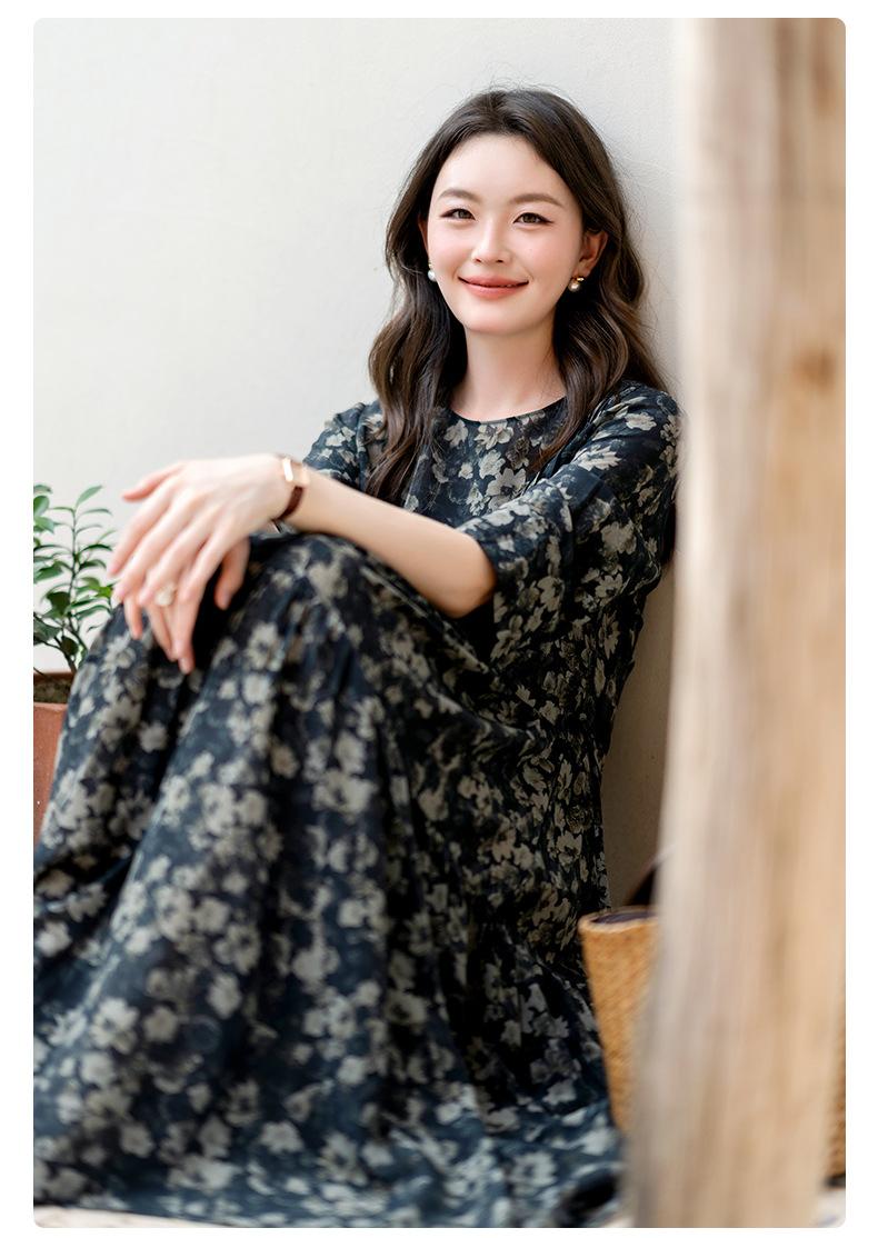 Vestido de seda morera de una sola capa con diseño plisado floral y cuello redondo de Rongtai, falda adelgazante con cordones de verano para mujer