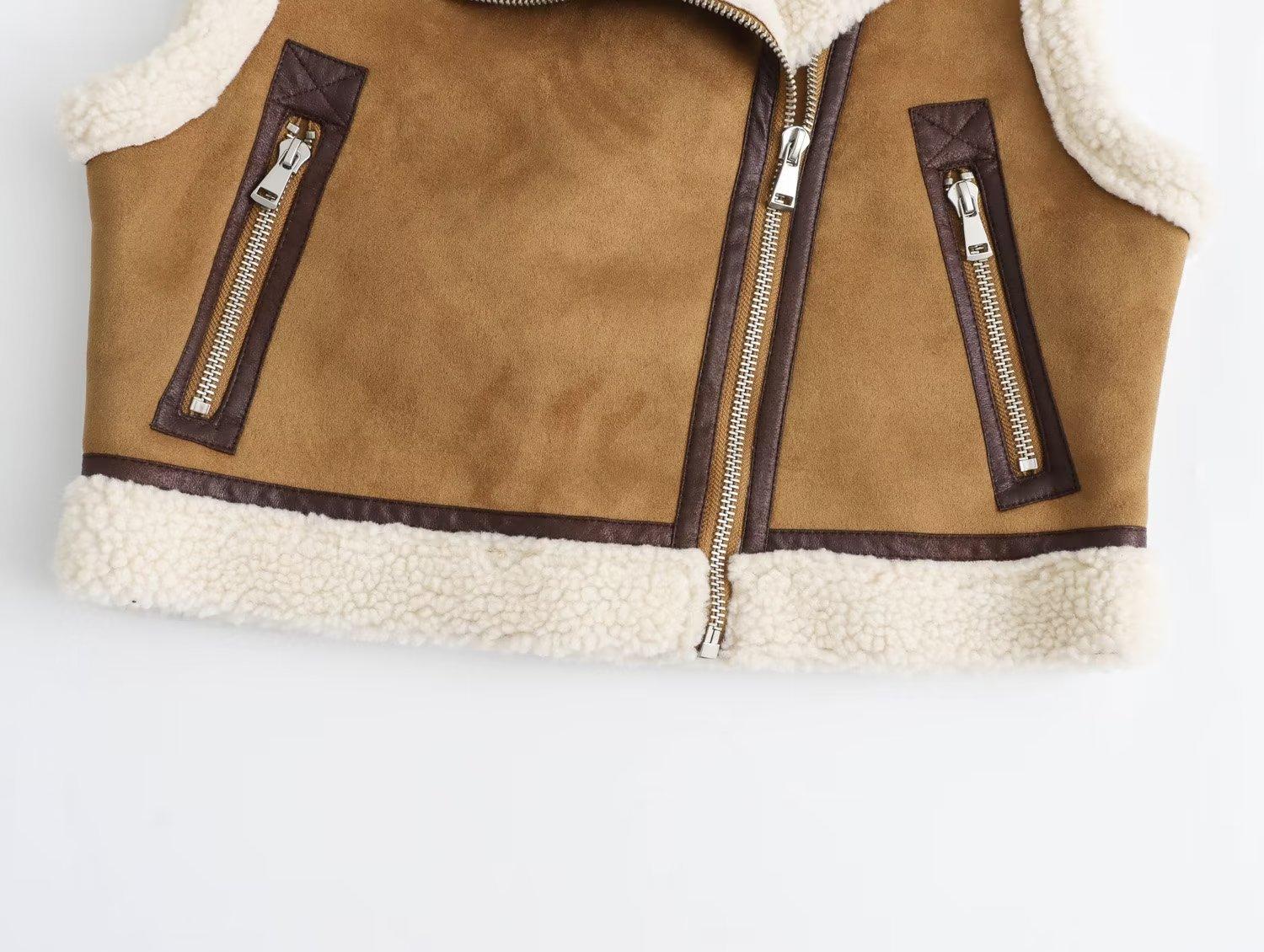 Otoño 2023 nueva ropa transfronteriza europea y americana para mujer, moda callejera, costura, chaleco corto, abrigo w025 9819