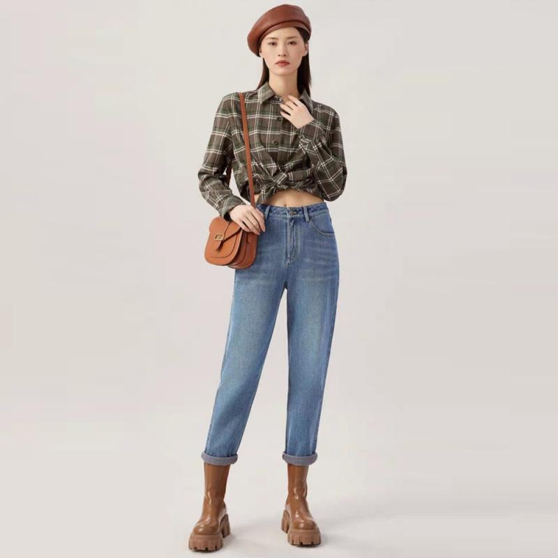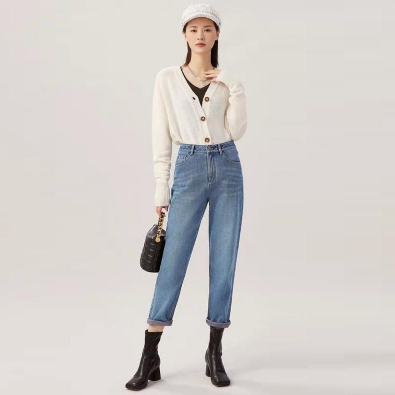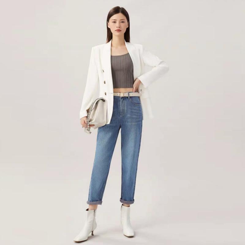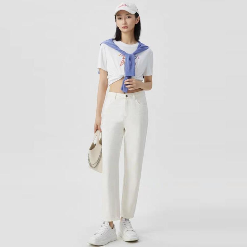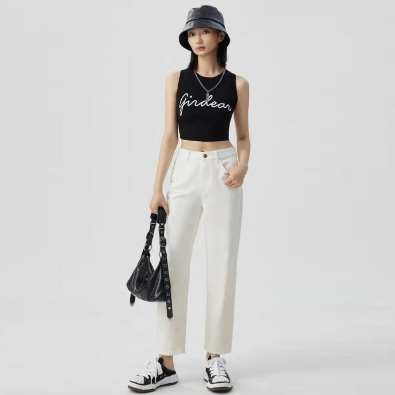Remove Gabinete productos de comercio exterior otoño 2024 nuevo versátil cintura alta adelgazante recto cropped jeans tapered pantalones casuales para mujer