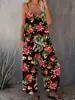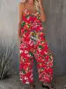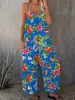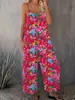 Pantalones de mujer nuevos de Amazon Europa y América de verano 2024, mono holgado informal con tirantes y bolsillos con estampado transfronterizo