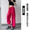 Pantalones Crock Rojo Rosa para Mujer Primavera y Verano 2024 Nuevo Secado Rápido Estilo Americano Cintura Alta Recto Adelgazante Pierna Ancha Pantalones Casuales