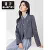 Chaqueta Zhenqi personalizada con solapa y costuras de nueva moda para mujer, abrigo pequeño recto de manga larga CN598