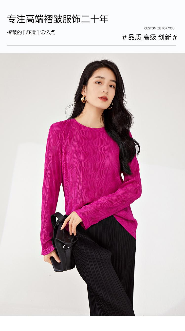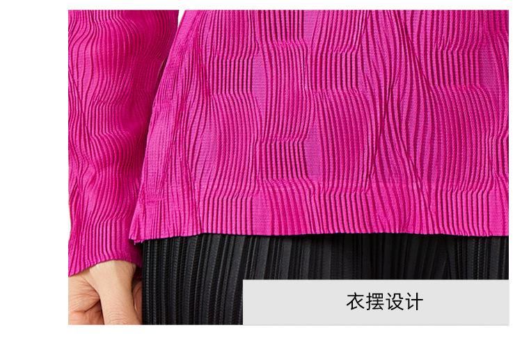 | Blusas plisadas para mujer, Miyake Primavera y Otoño, color sólido, mangas de nueve puntos, color sólido, versátil, cuello alto pequeño, temperamento, camiseta de fondo para mujer |