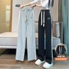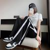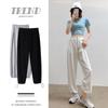 Pantalones anchos grises para mujer, de verano, finos, de cintura alta, drapeados, holgados, informales, con abertura en la parte delantera, deportivos, 2022