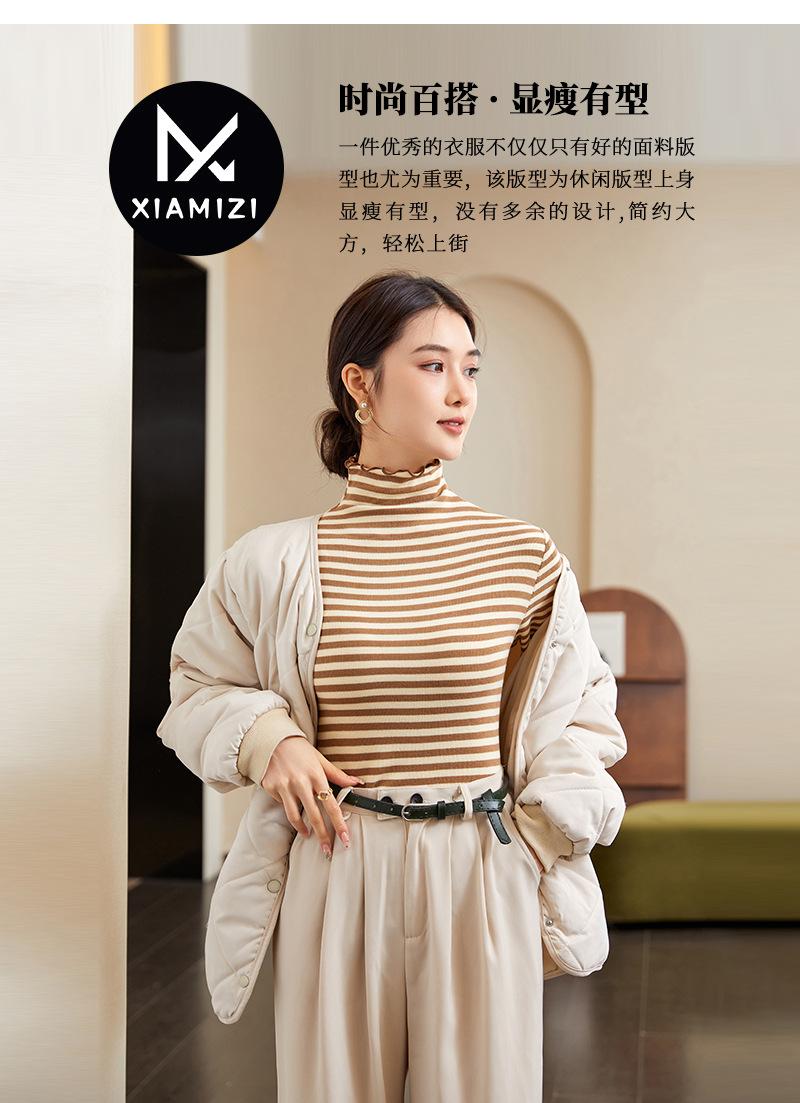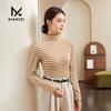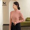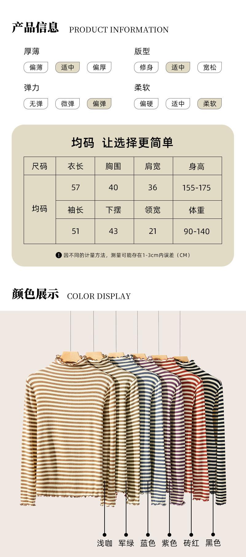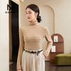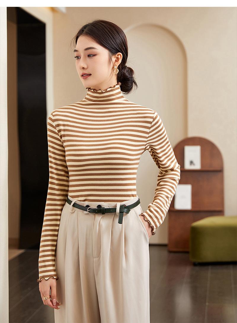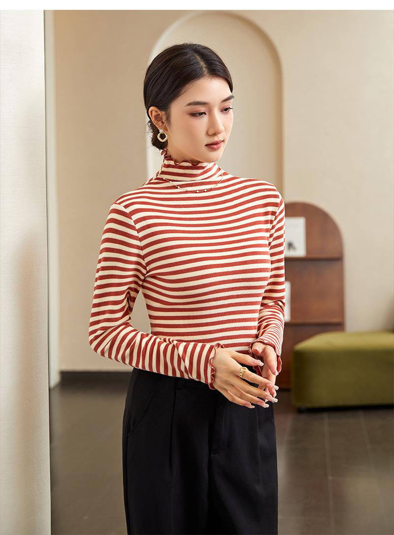 Camisa de base de rayas de terciopelo para mujer, otoño e invierno, con forro polar interior, gruesa, cálida, camiseta de manga larga, ropa de punto superior