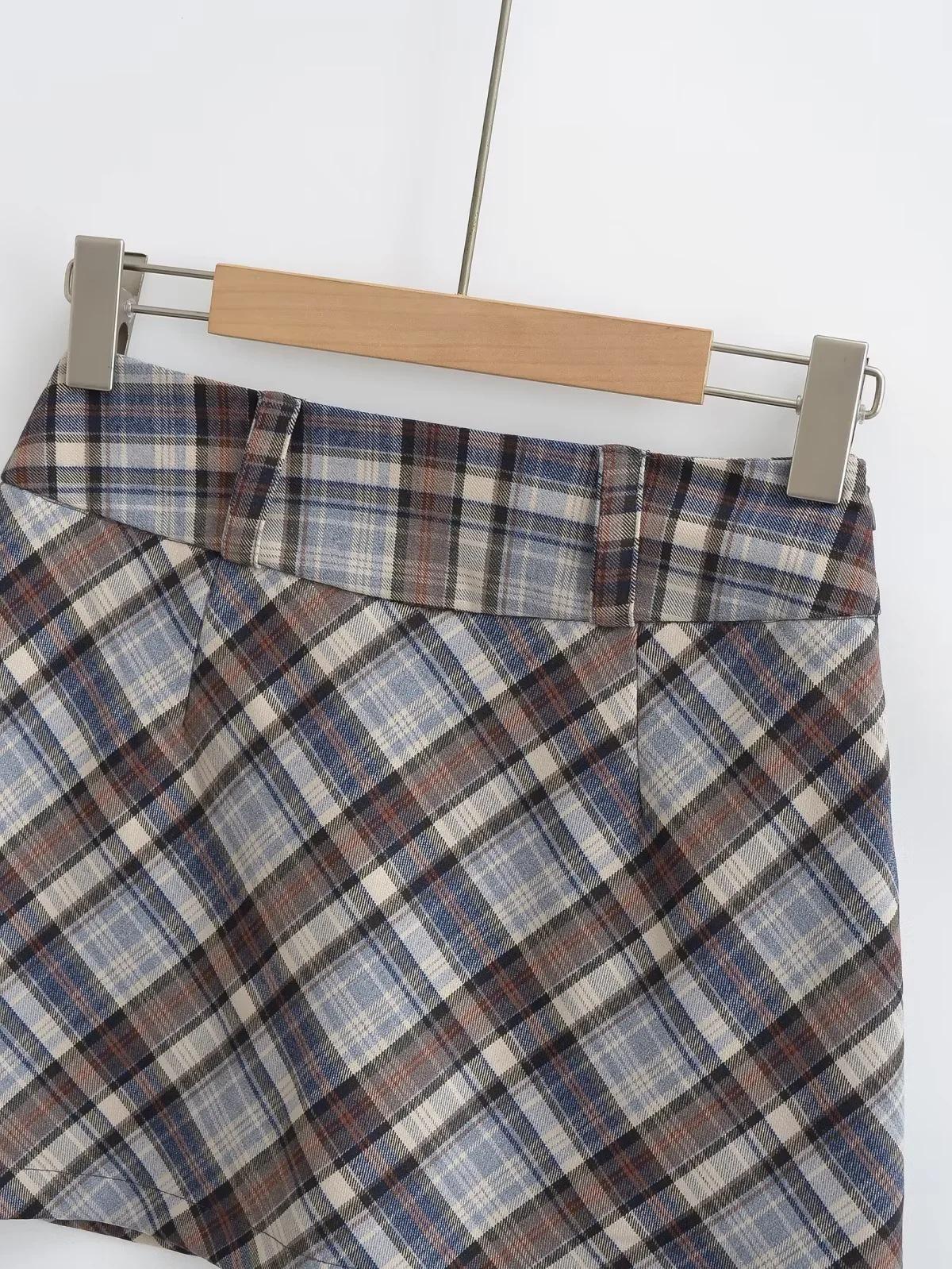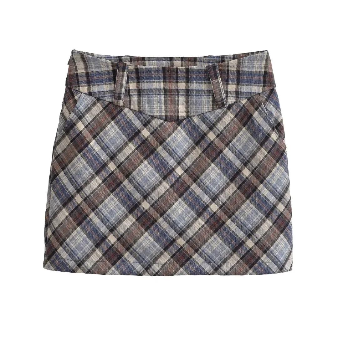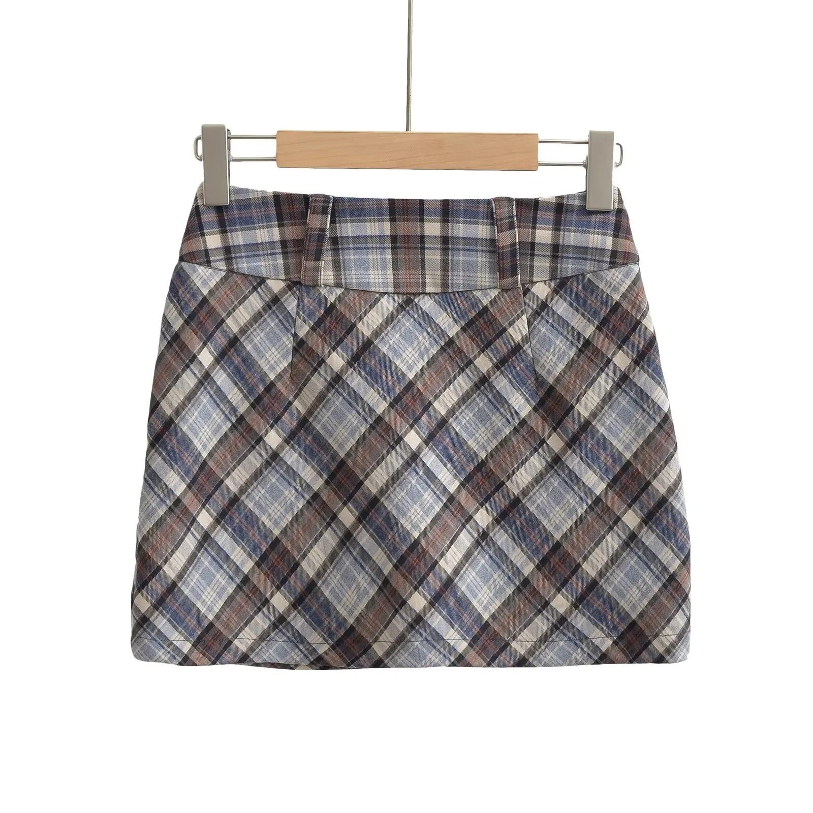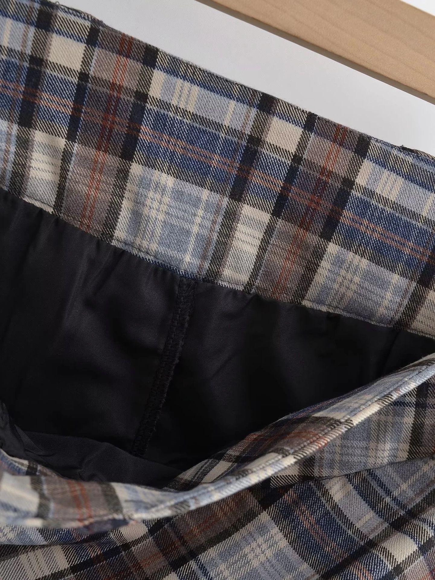 Falda a cuadros estilo preppy estilo americano retro, cintura alta, diseño pequeño, adelgazante, corte A, falda a cuadros hasta la cadera.