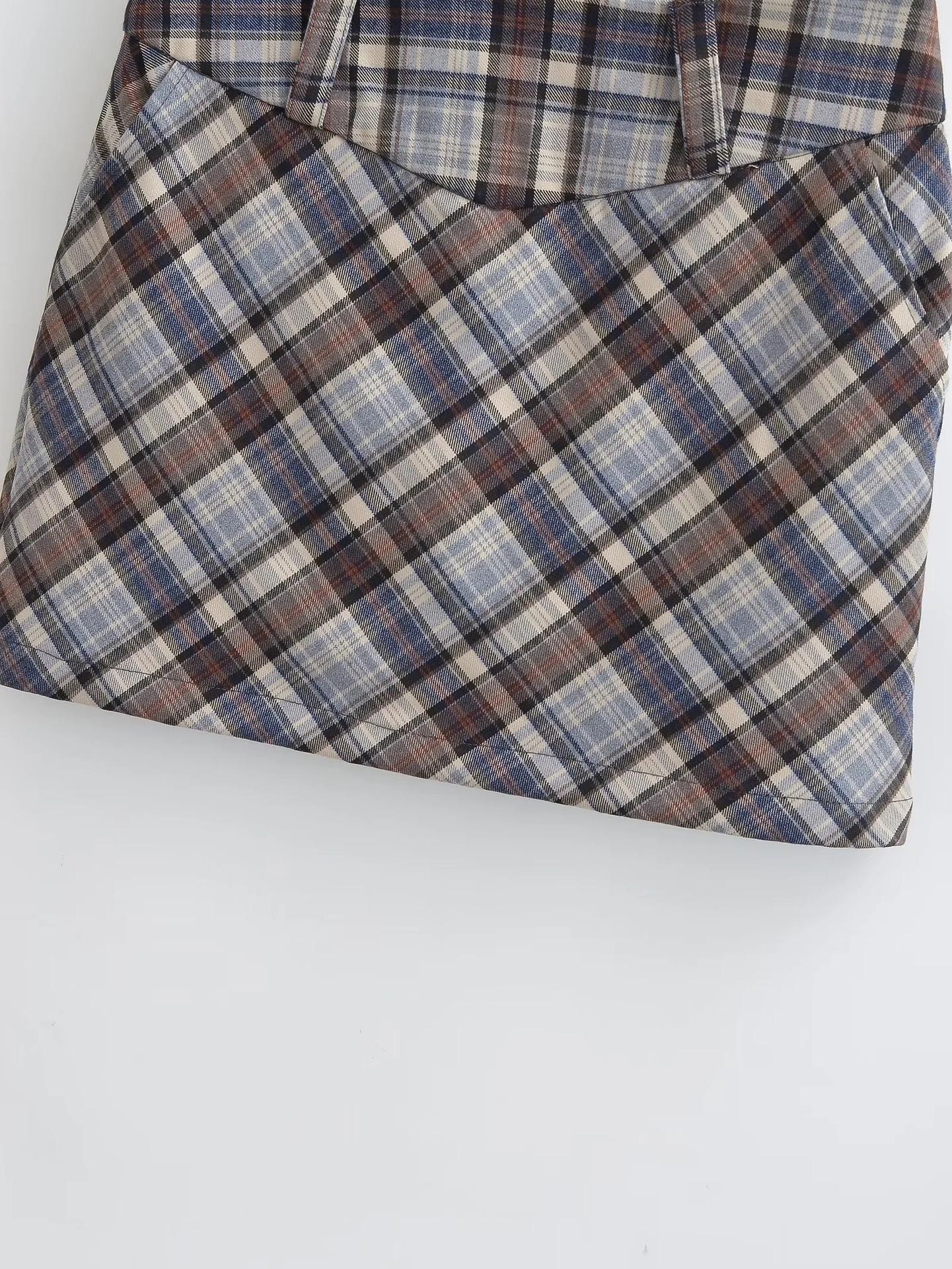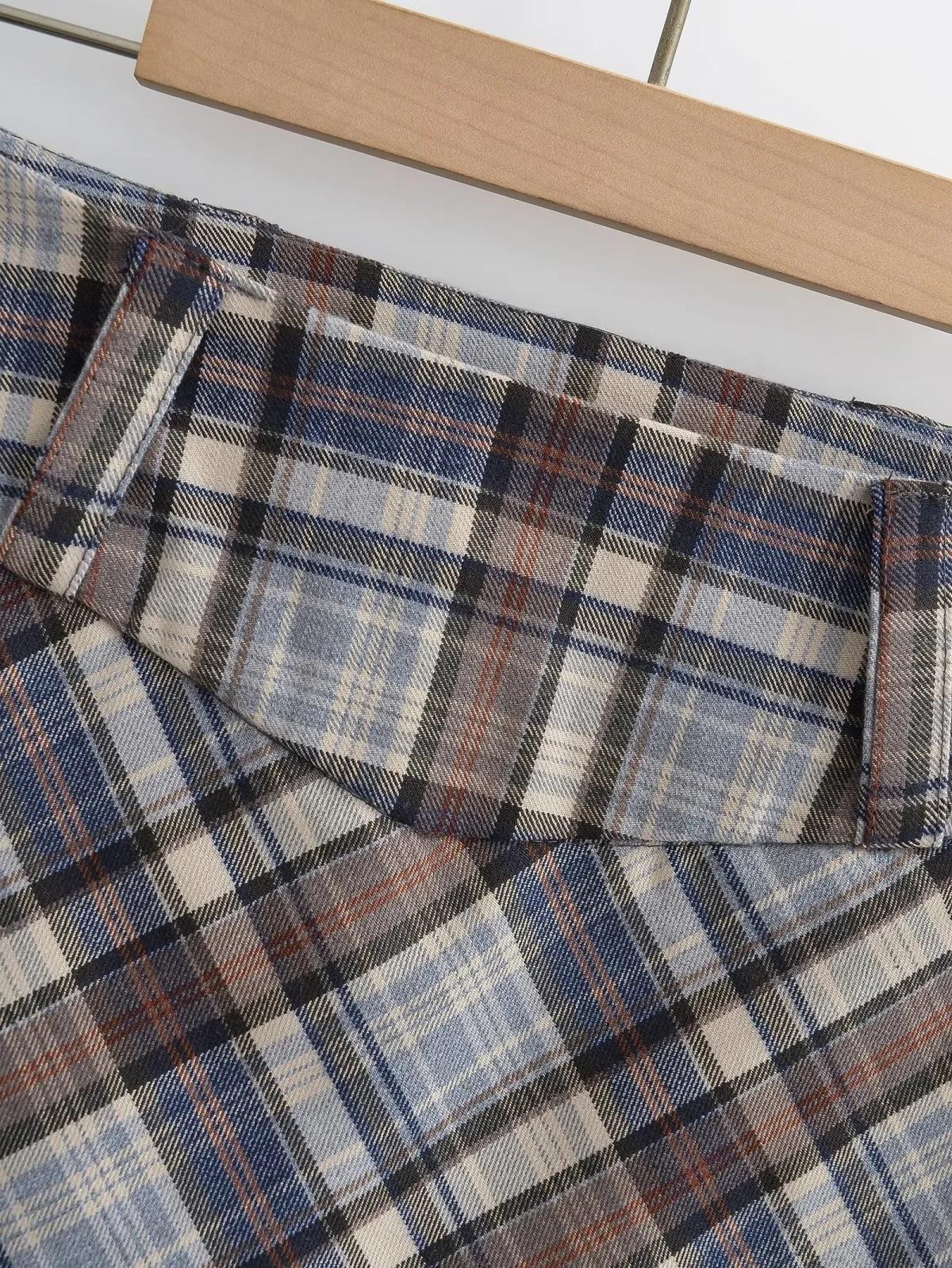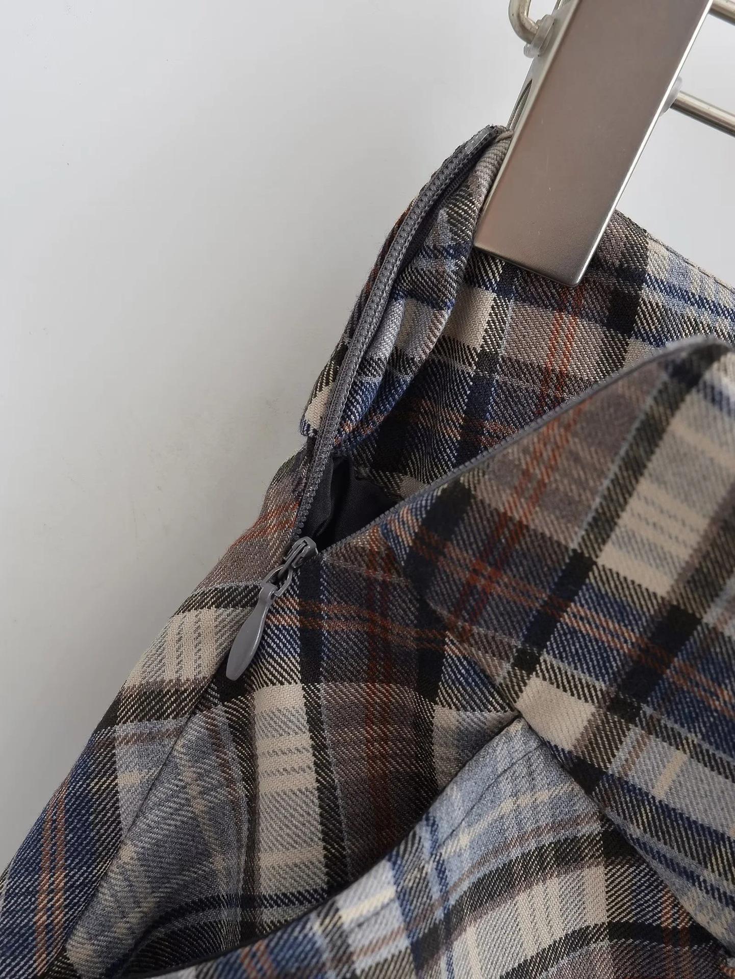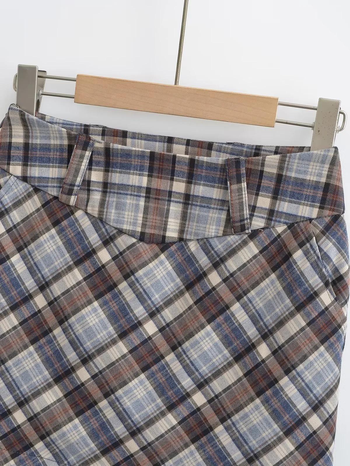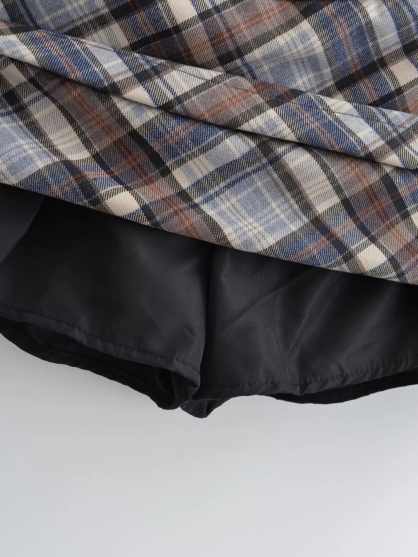 Falda a cuadros estilo preppy estilo americano retro, cintura alta, diseño pequeño, adelgazante, corte A, falda a cuadros hasta la cadera.