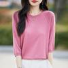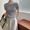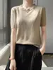 Camiseta de punto fina de manga corta con solapa y color de seda de hielo para mujer, estilo coreano, holgada, de verano 2024