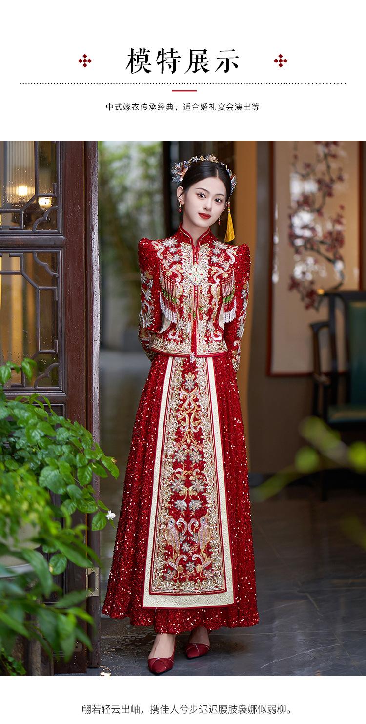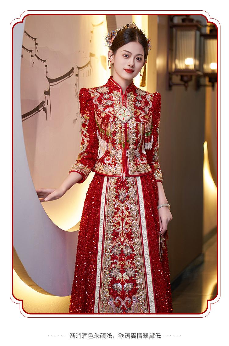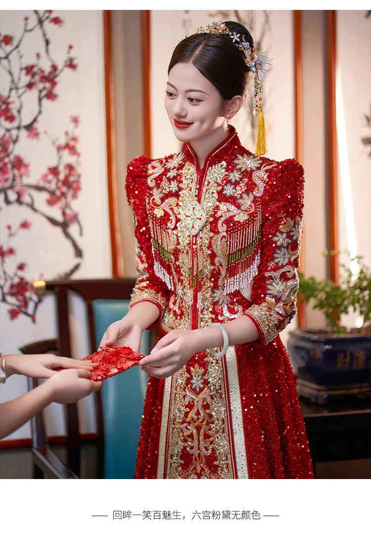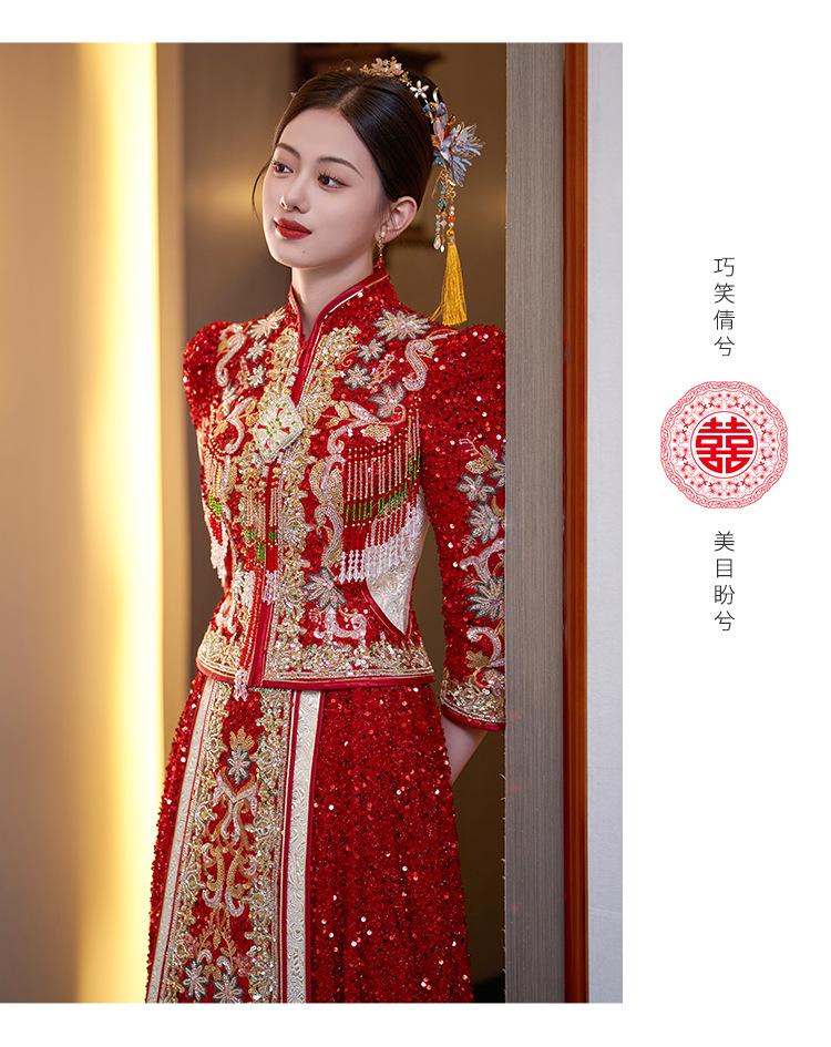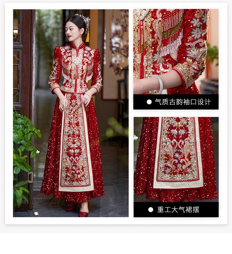 Vestido Xiuhe Novia 2024 Nuevo Estilo Vestido de Boda Vestido de Boda Chino Lentejuelas de Alta Gama Vestido para Brindar Chaqueta de Dragón y Fénix