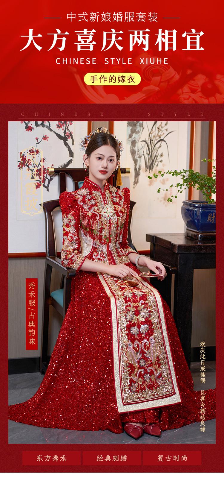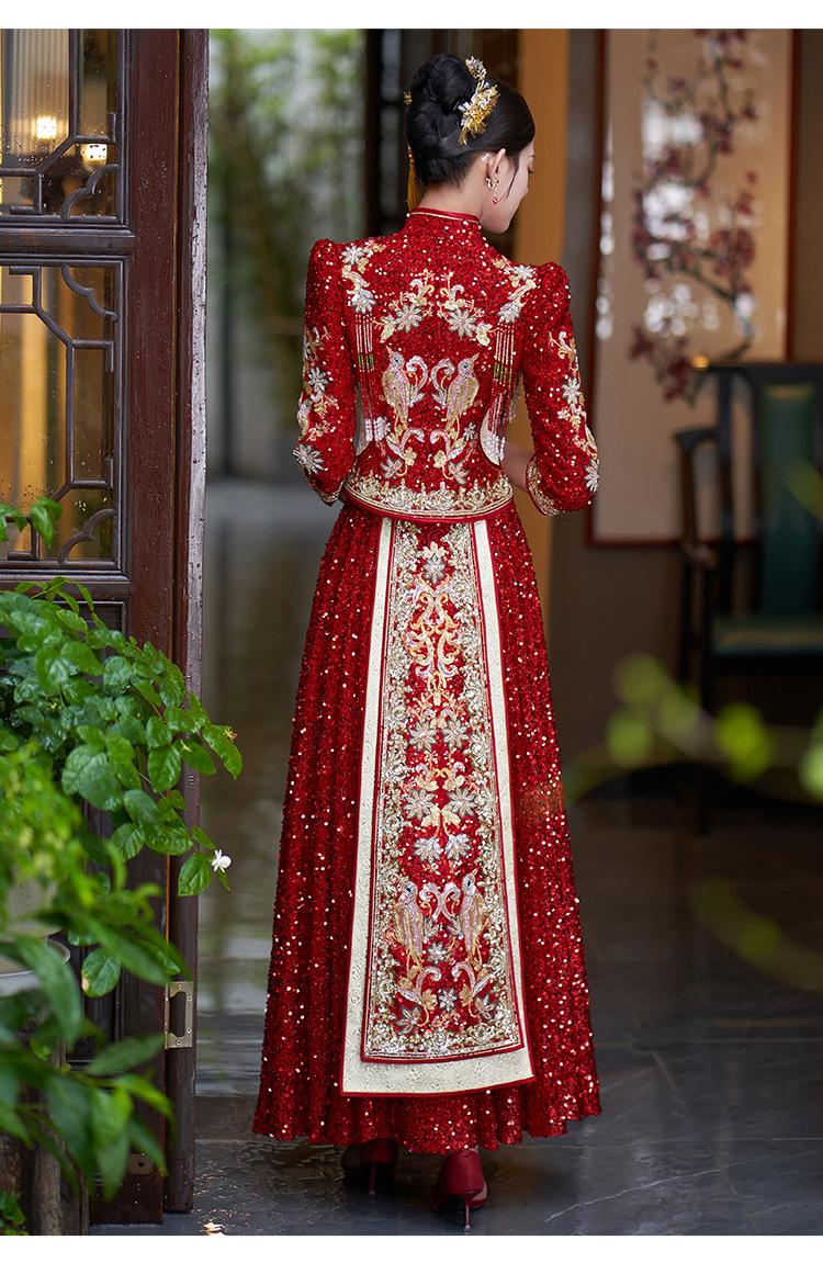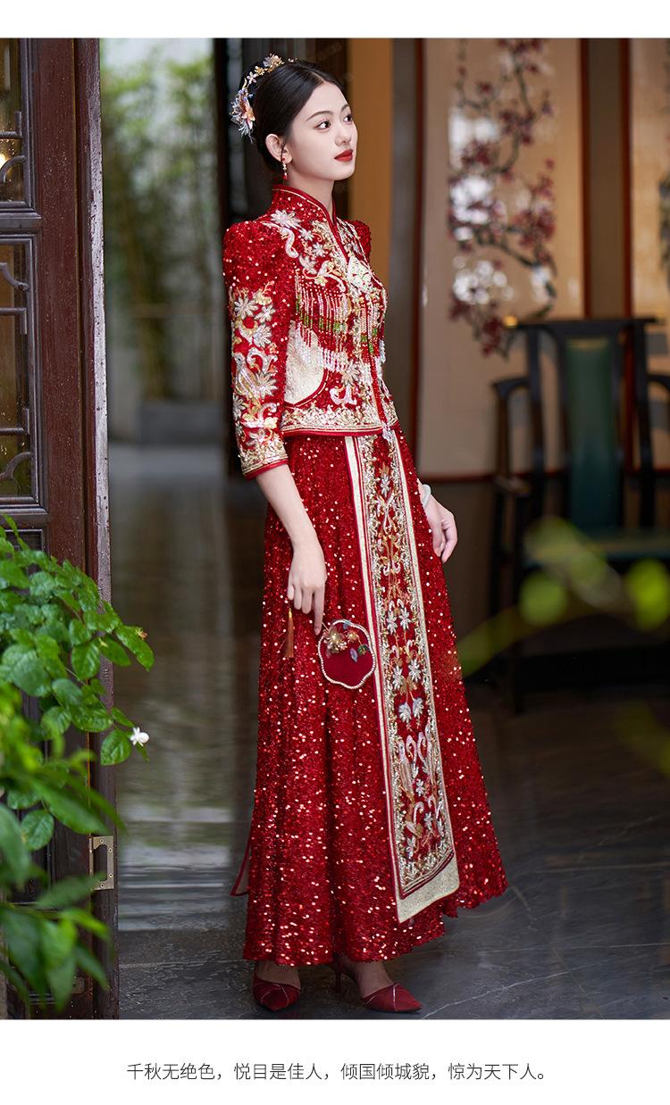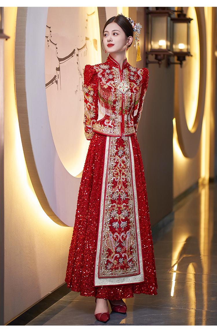 Vestido Xiuhe Novia 2024 Nuevo Estilo Vestido de Boda Vestido de Boda Chino Lentejuelas de Alta Gama Vestido para Brindar Chaqueta de Dragón y Fénix