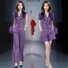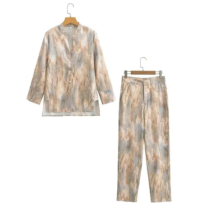 Ropa de mujer de comercio exterior europea y americana al por mayor 2023 verano nuevo traje de camisa asimétrica tie-dye y pantalones casuales de cintura alta