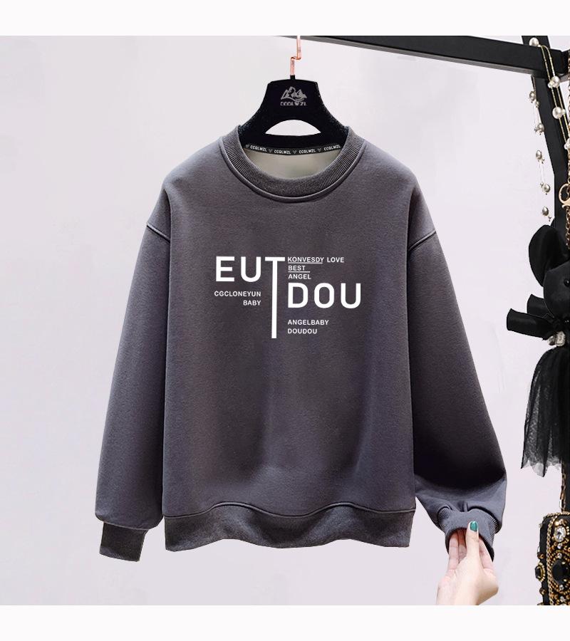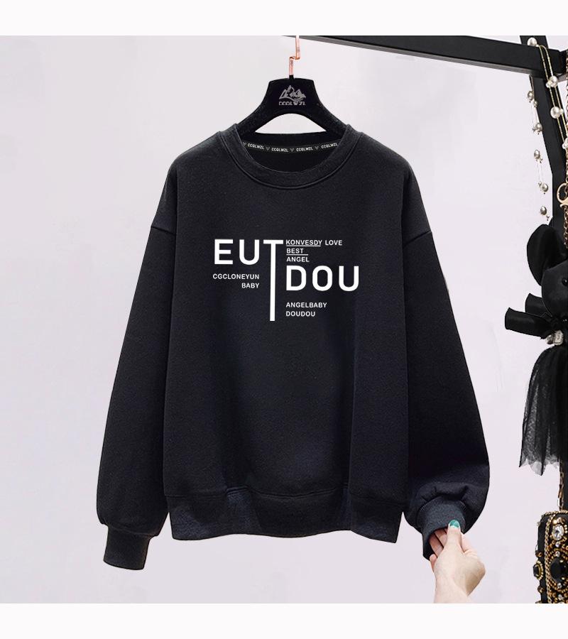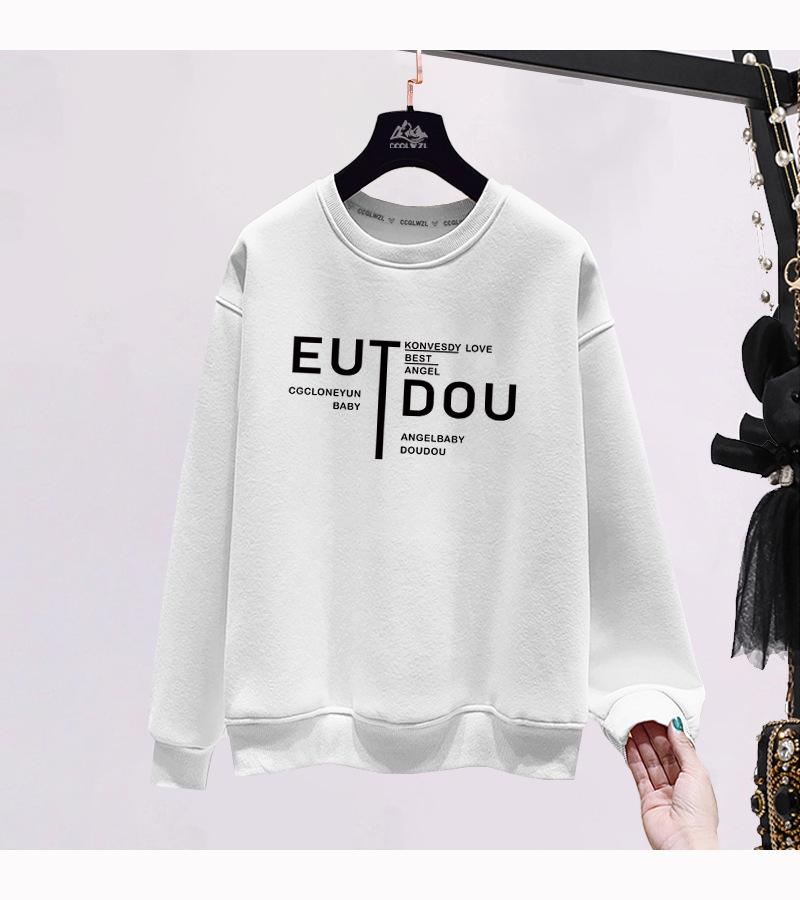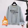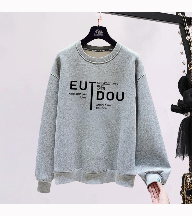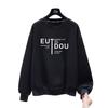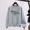 Venta al por mayor de fábrica 2023 nuevo estilo coreano holgado de algodón cuello redondo estampado con letras jersey de mujer afelpado grueso