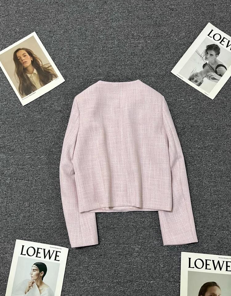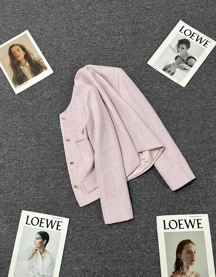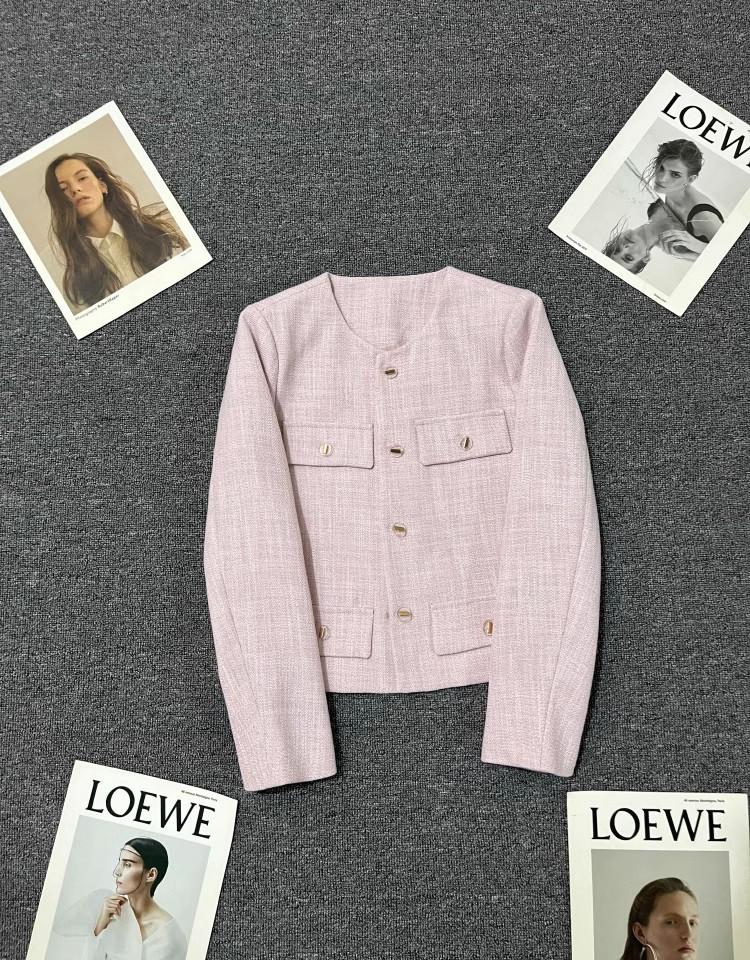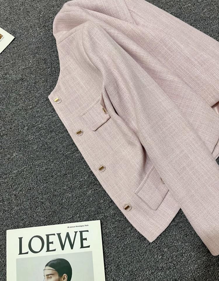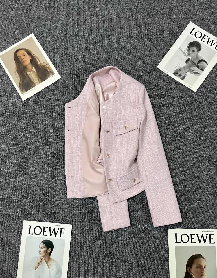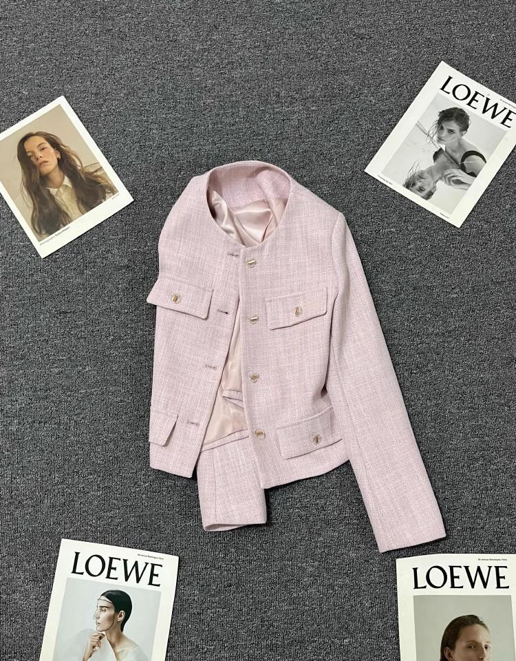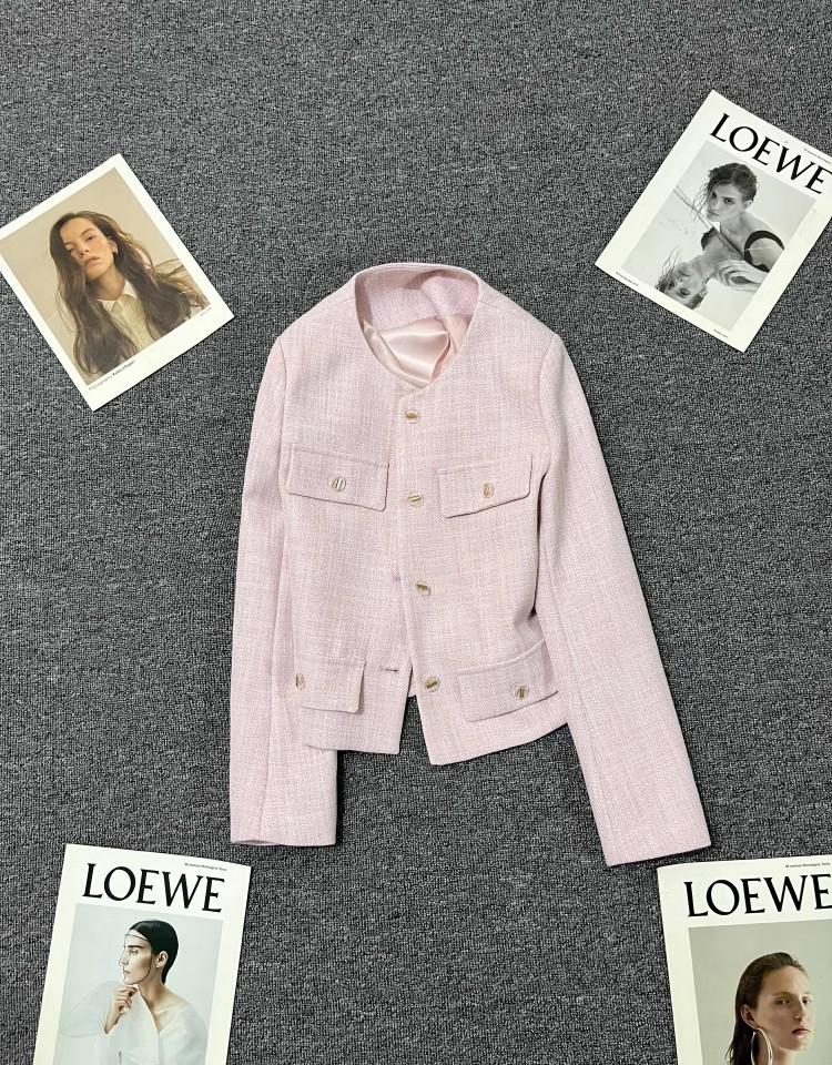 Chaqueta de Traje Rosa Coral Primavera Temprana Estilo Pequeño Fragante para Mujer 2025 Nuevo Diseño Traje Pequeño Elegante de Cuello Redondo