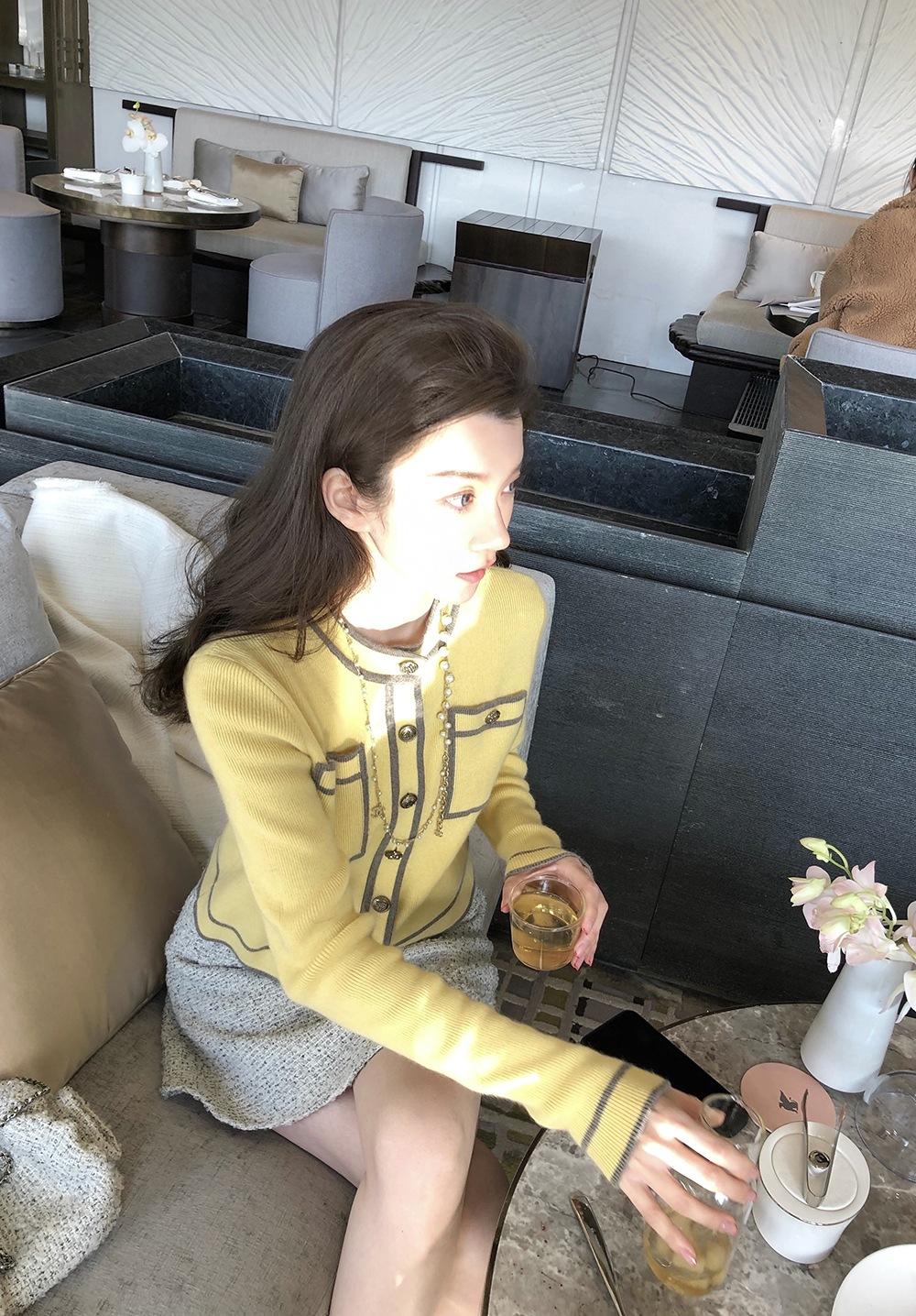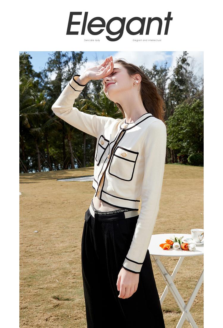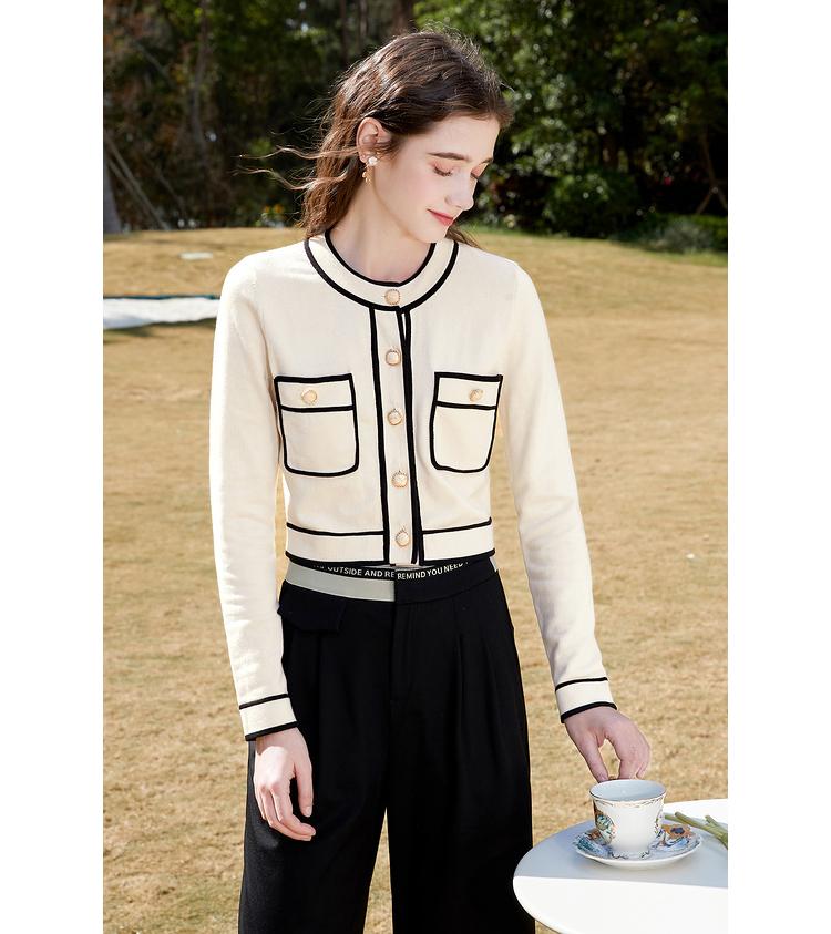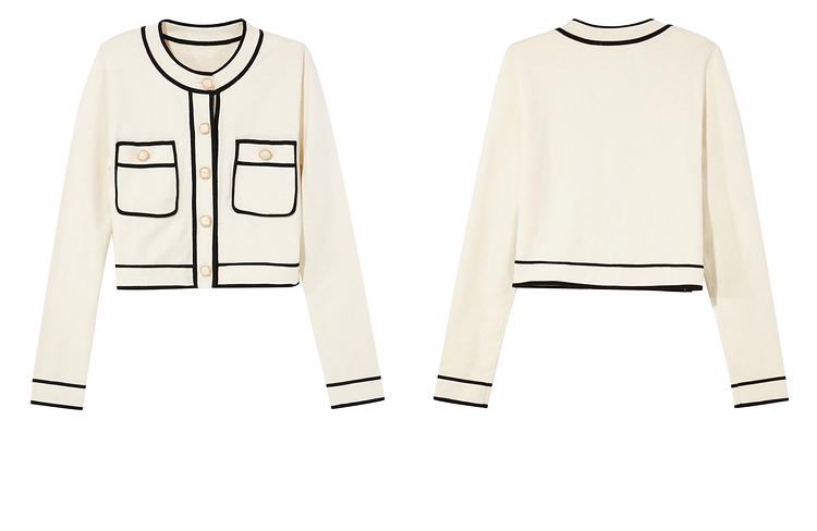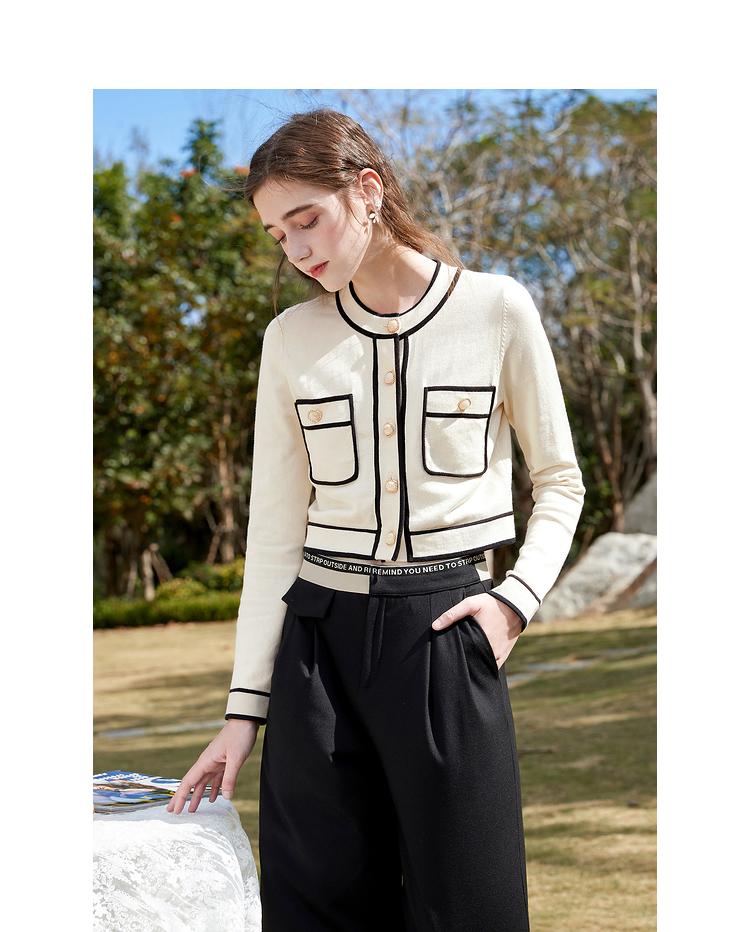 Primavera 2023 Nuevo Elegante Cárdigan de Contraste para Mujer Pequeño Estilo Chanel Suéter Corto Abrigo Fino