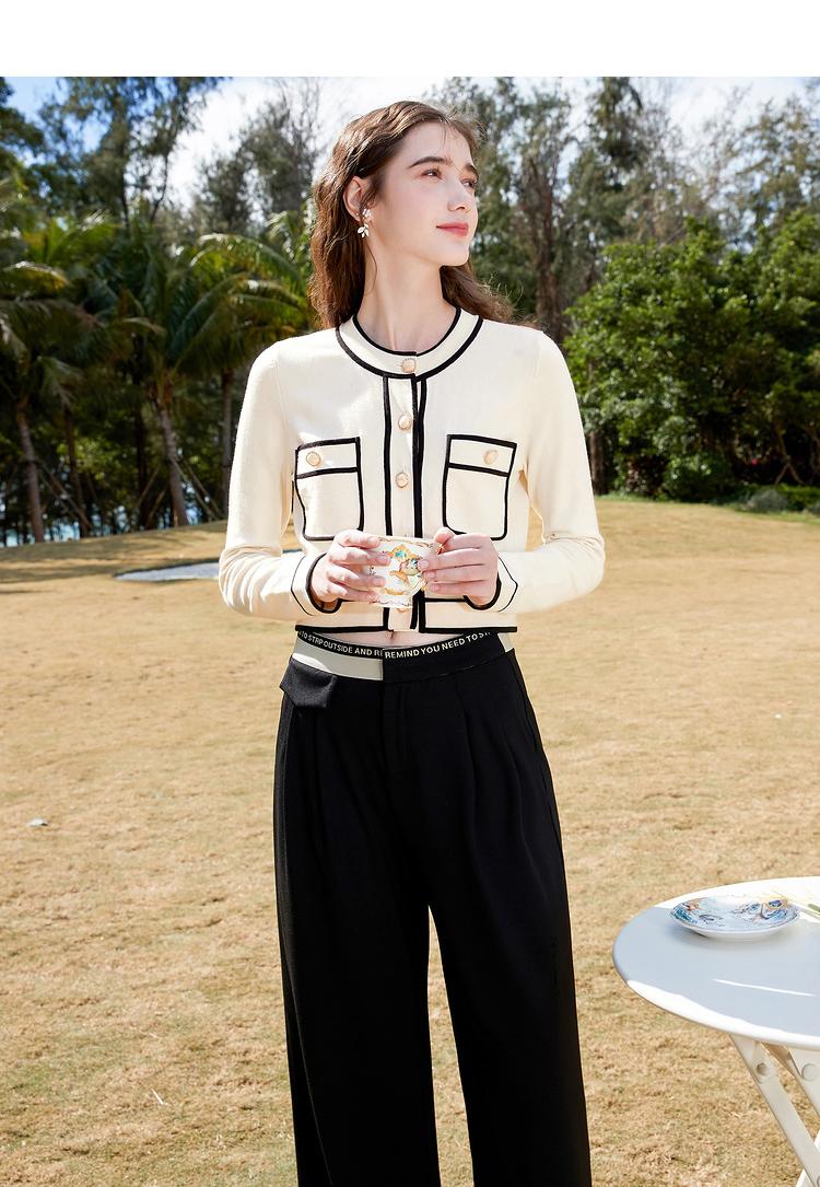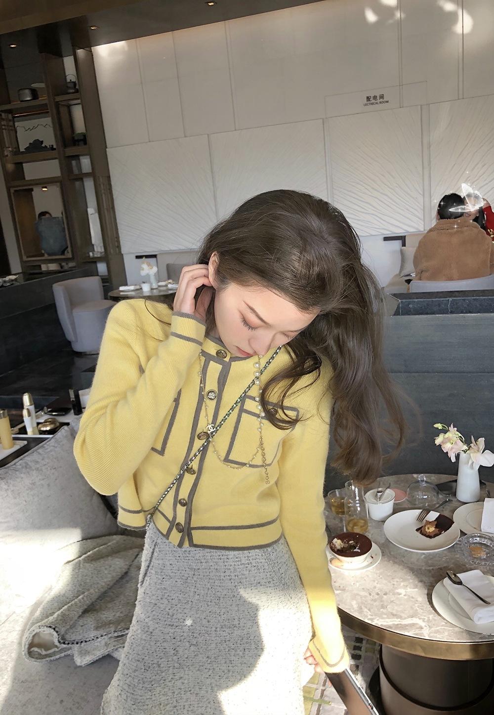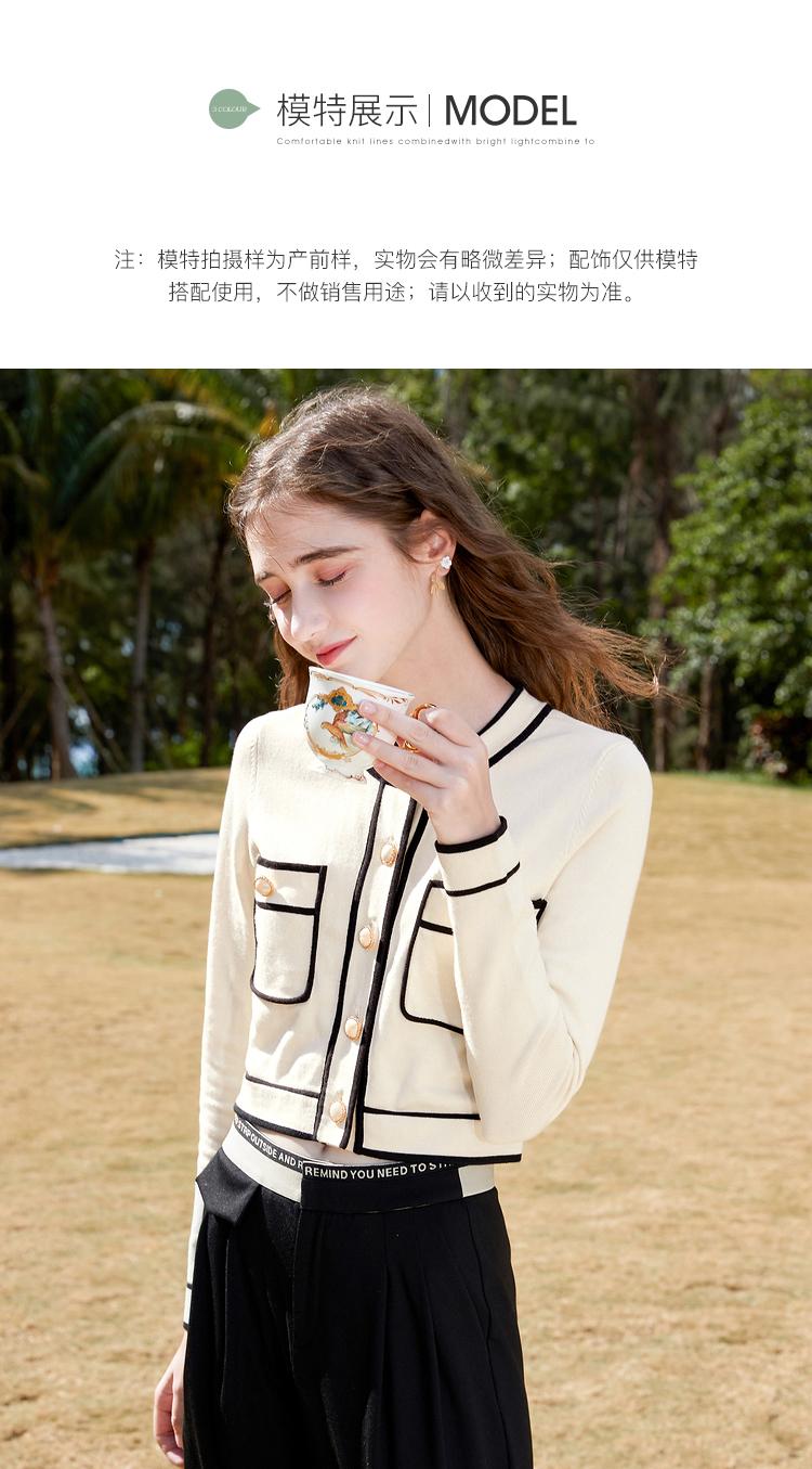 Primavera 2023 Nuevo Elegante Cárdigan de Contraste para Mujer Pequeño Estilo Chanel Suéter Corto Abrigo Fino