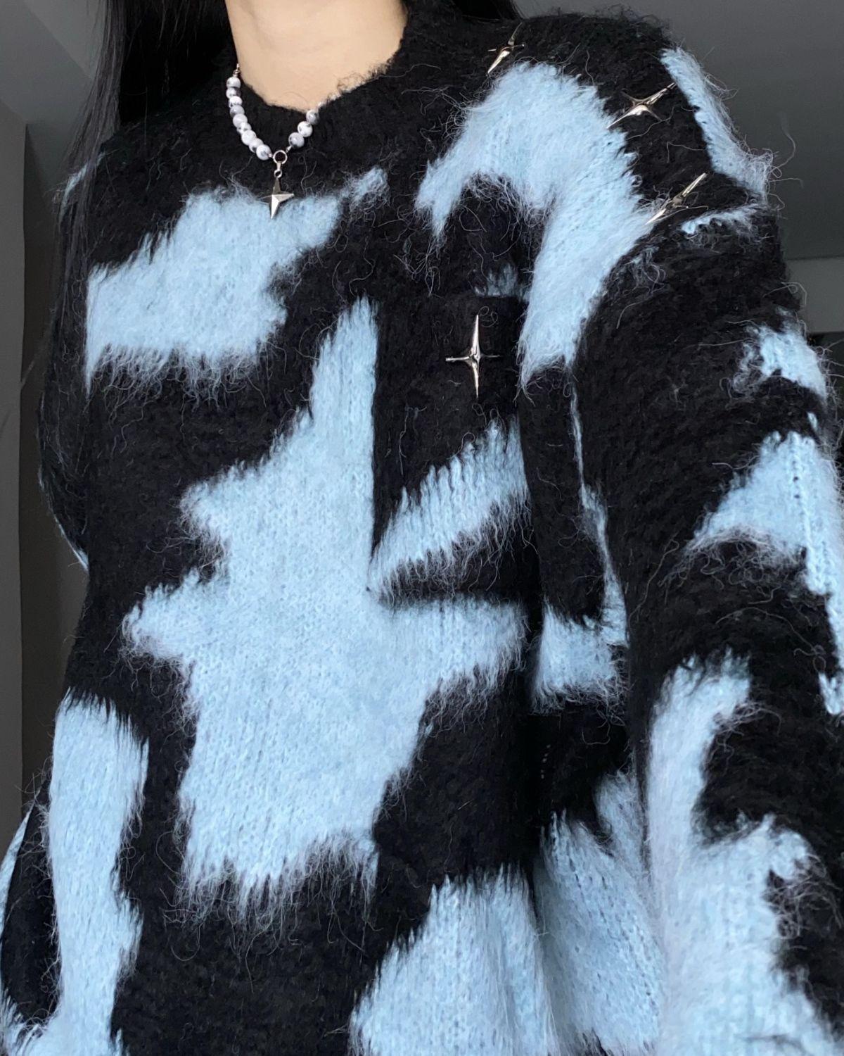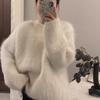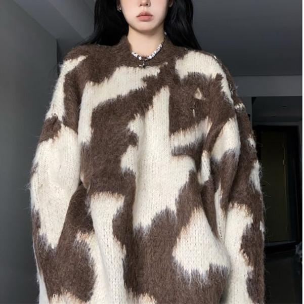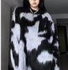 Tejido de punto de estilo perezoso suave y ceroso teñido anudado en colores contrastantes para mujer 2024 otoño e invierno Top de felpa de visón de imitación Tejido de punto americano