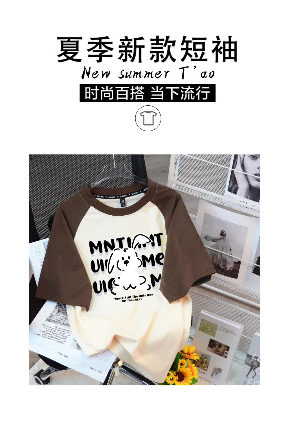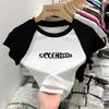 Camiseta de manga corta retro americana directa de fábrica para mujer, verano, nuevo diseño de nicho, estilo Raglán, top de moda estilo Hong Kong