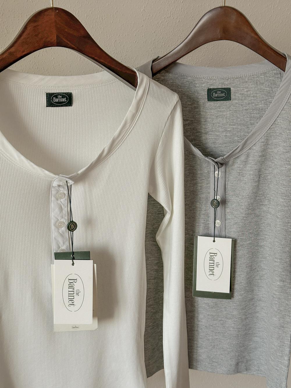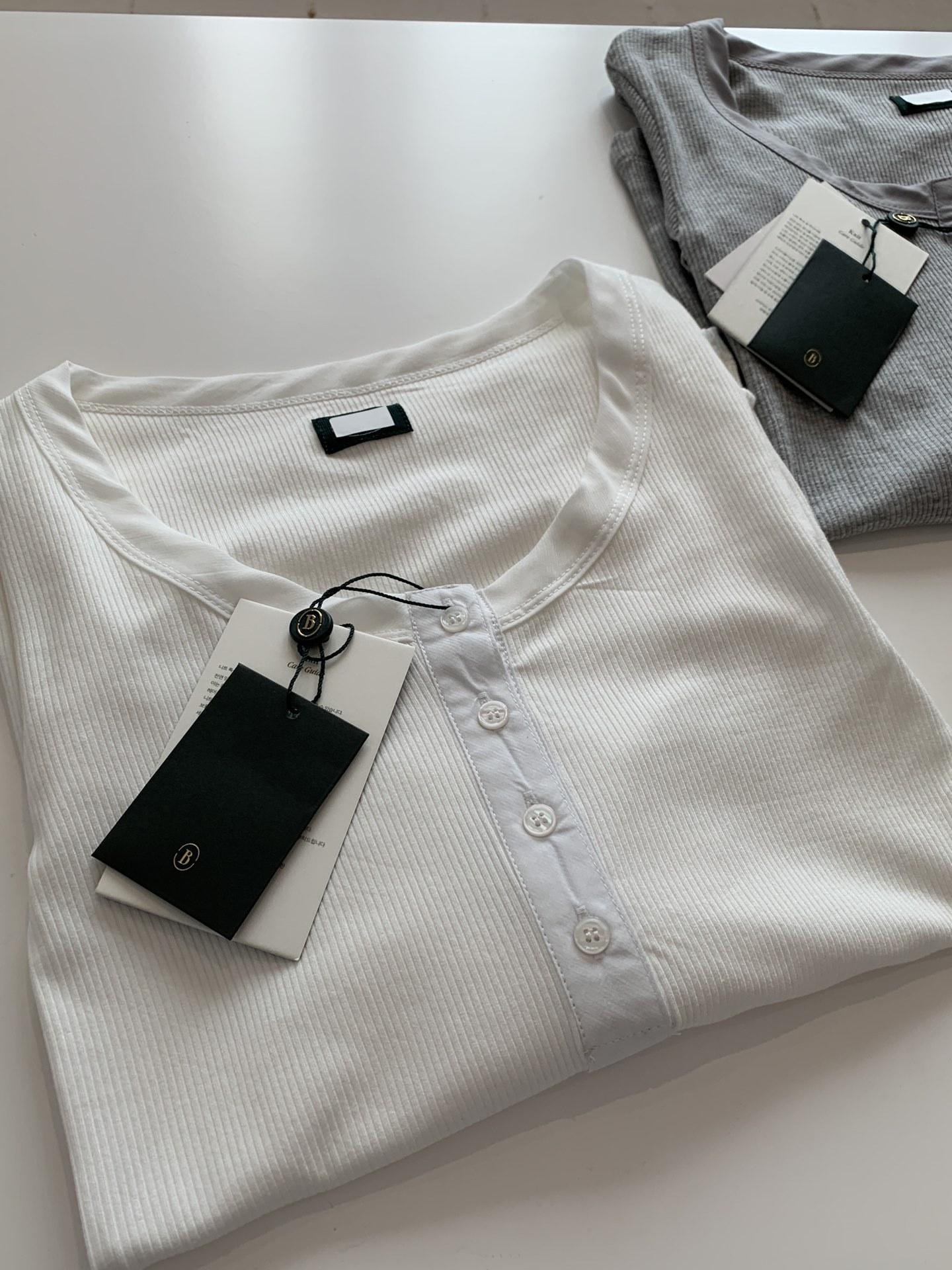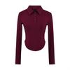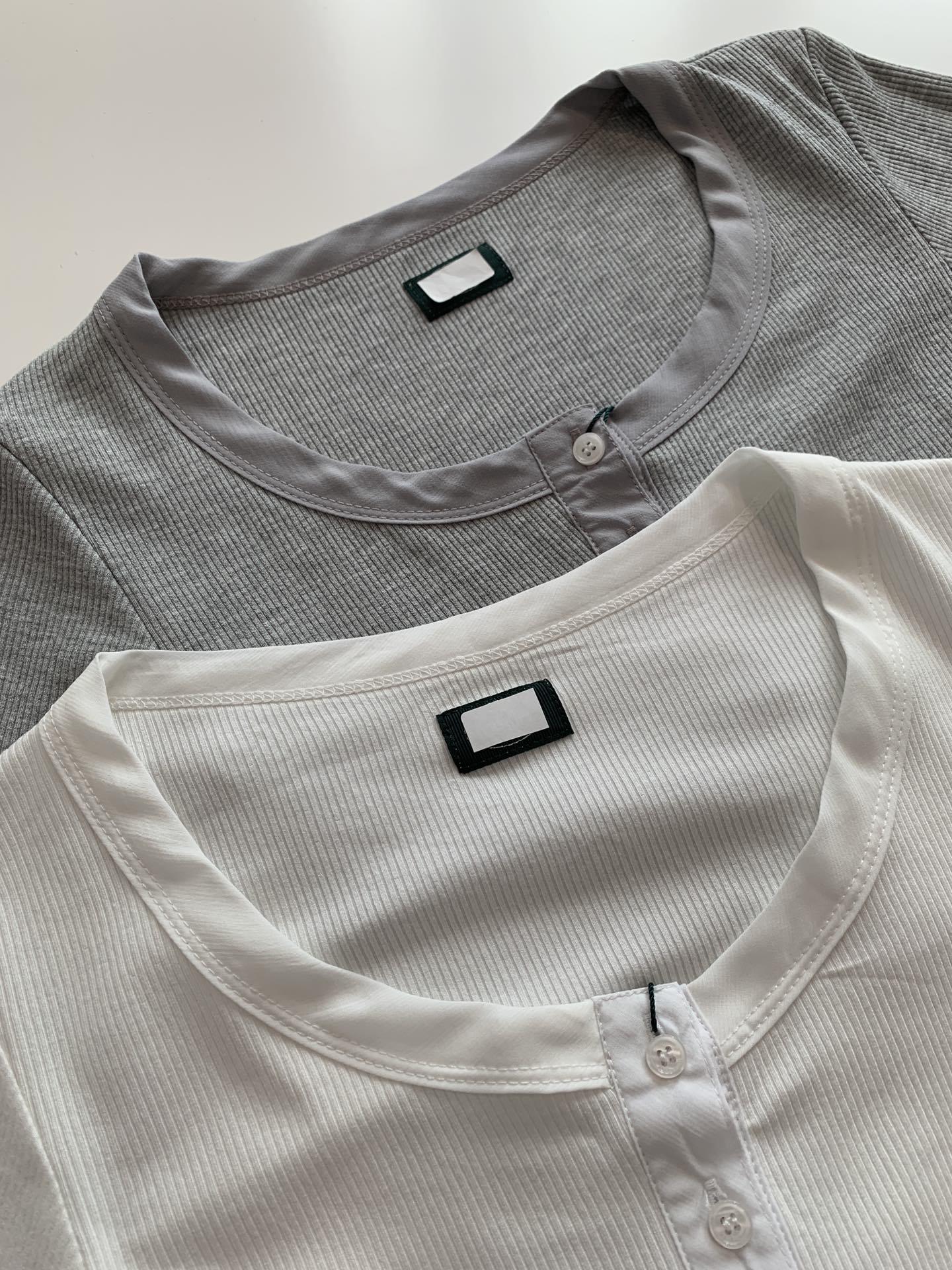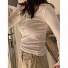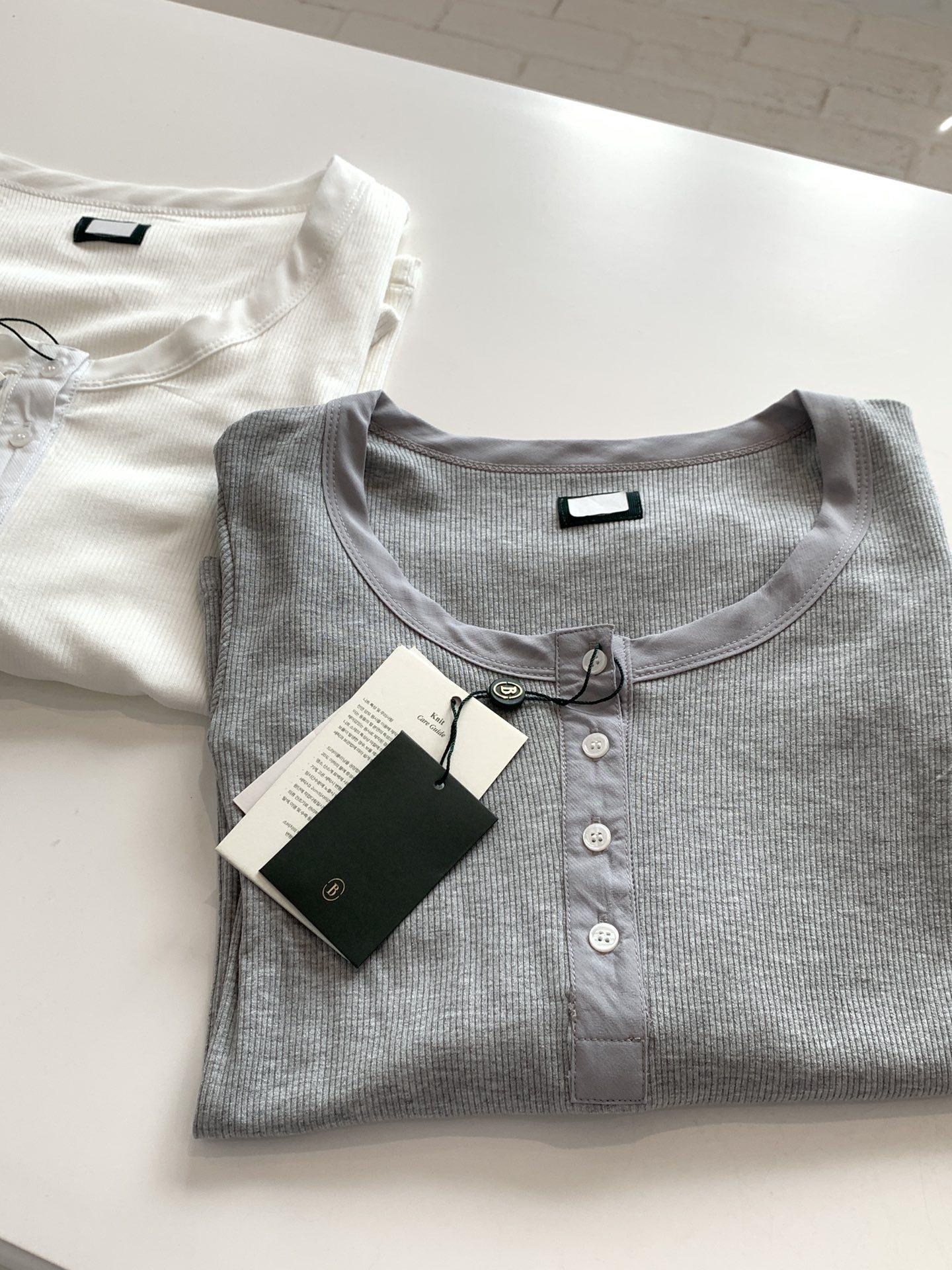 En stock Camisa de manga larga con cuello redondo Joker para mujer, primavera, media abertura, hebilla, color sólido, corte entallado, top the barnn * t