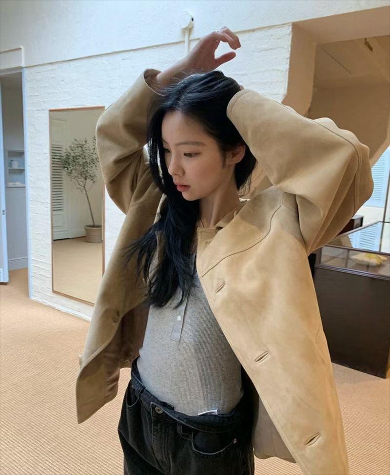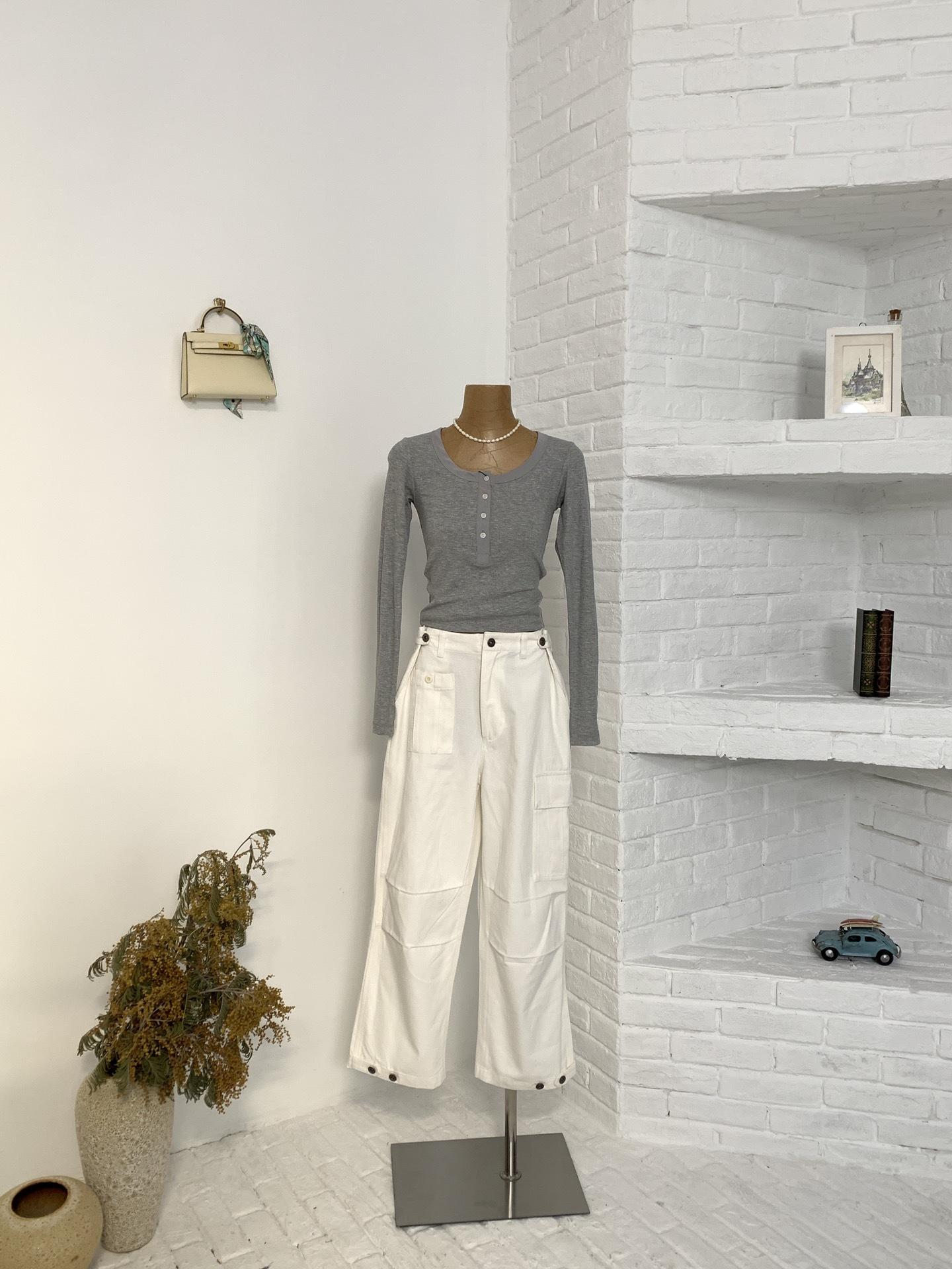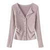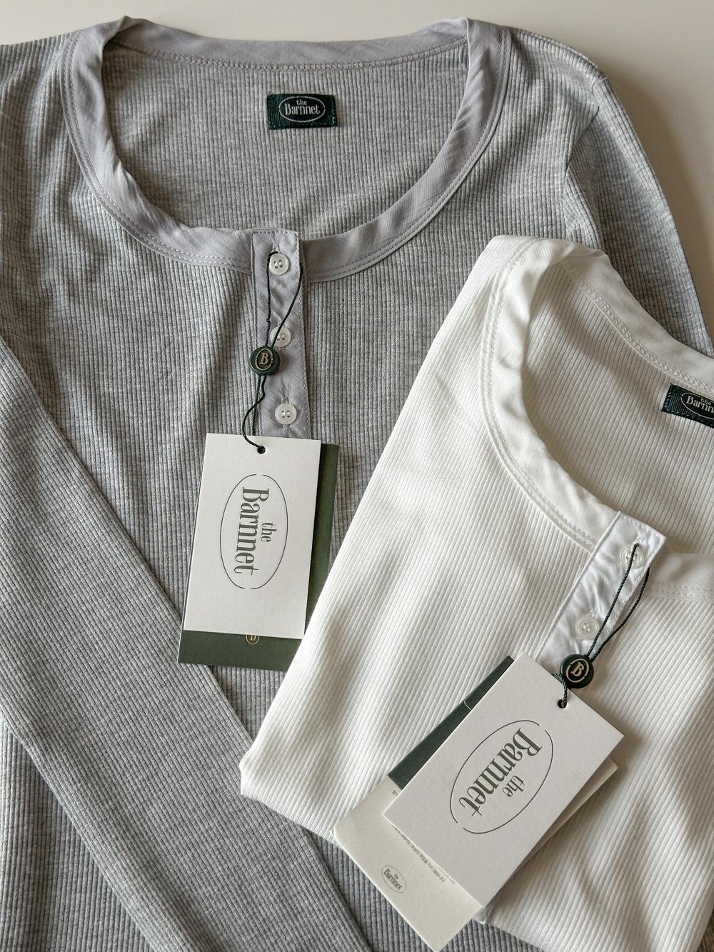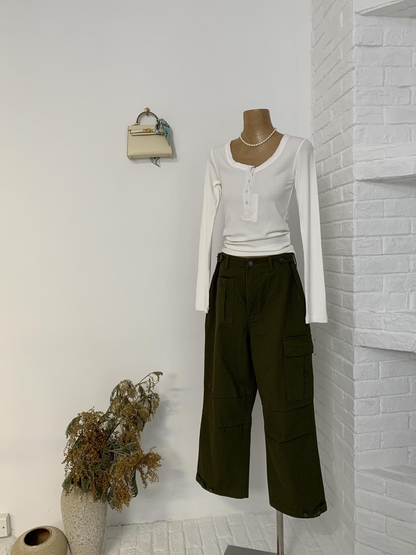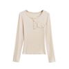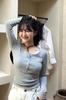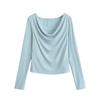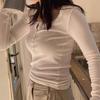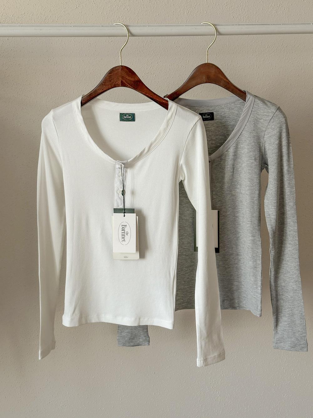 En stock Camisa de manga larga con cuello redondo Joker para mujer, primavera, media abertura, hebilla, color sólido, corte entallado, top the barnn * t