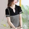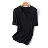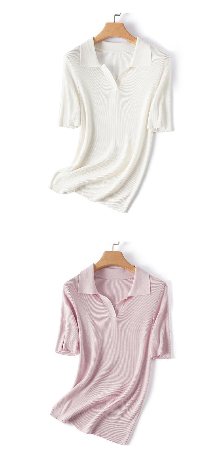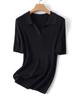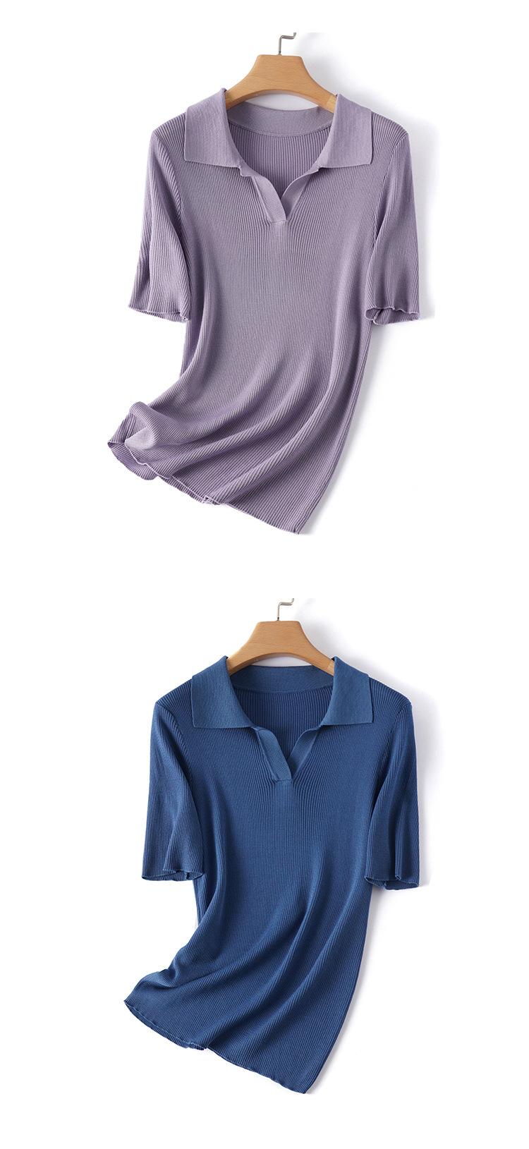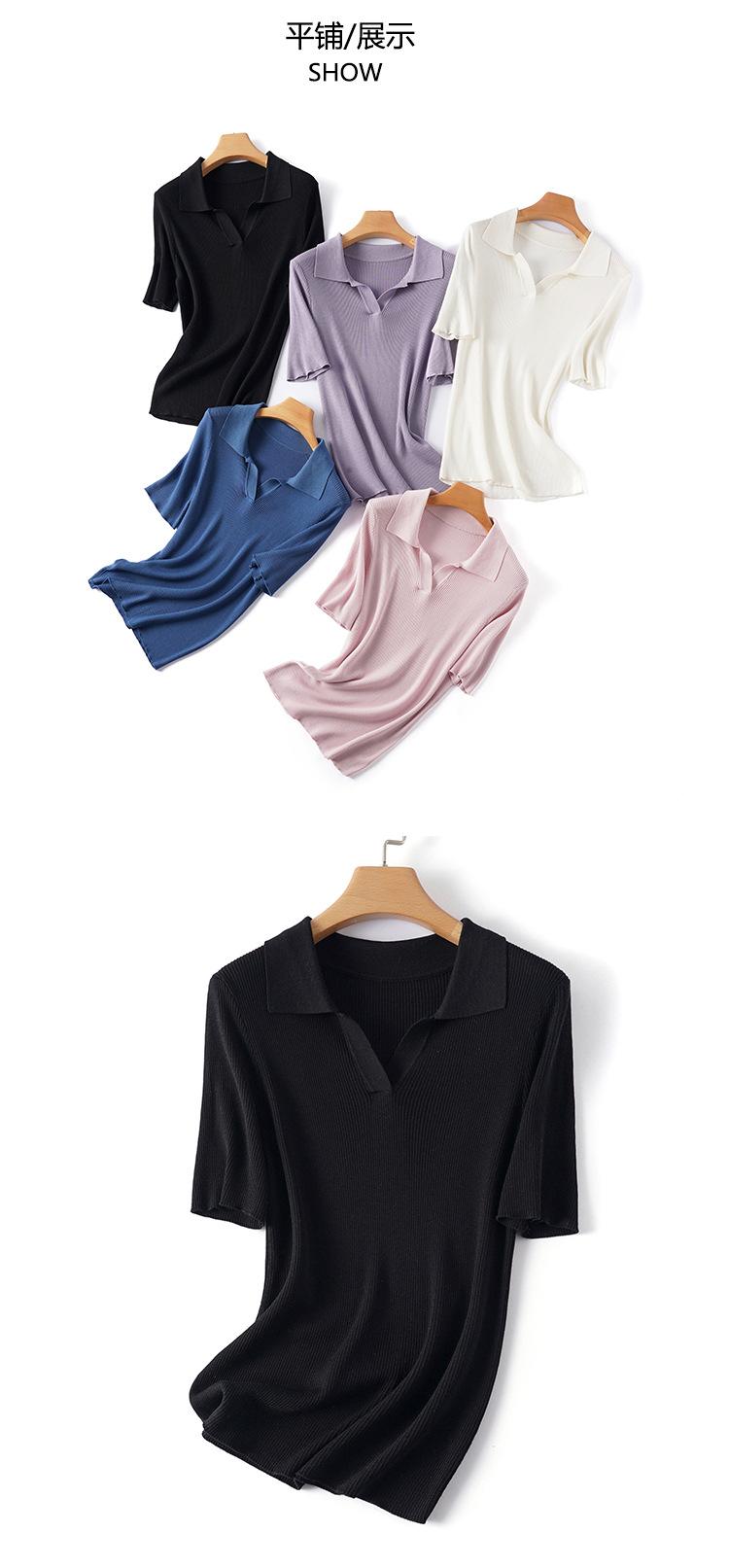 Tejido de punto Tencel fresco para mujer, polo de manga corta, verano 2025, nuevo top de punto fino con hilo exterior