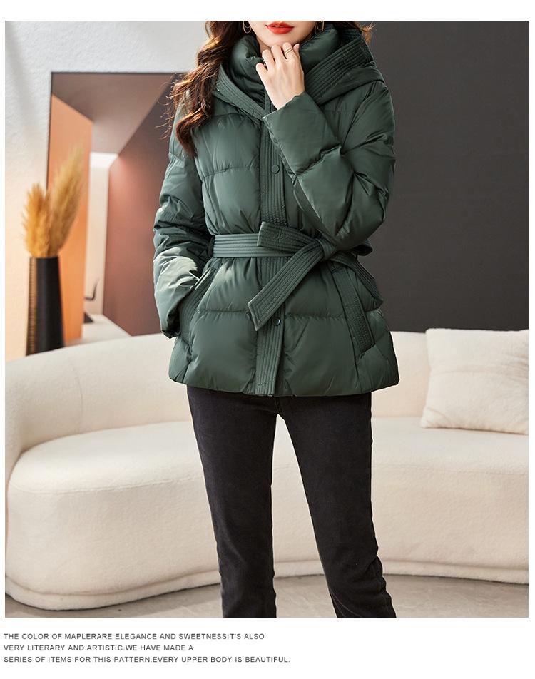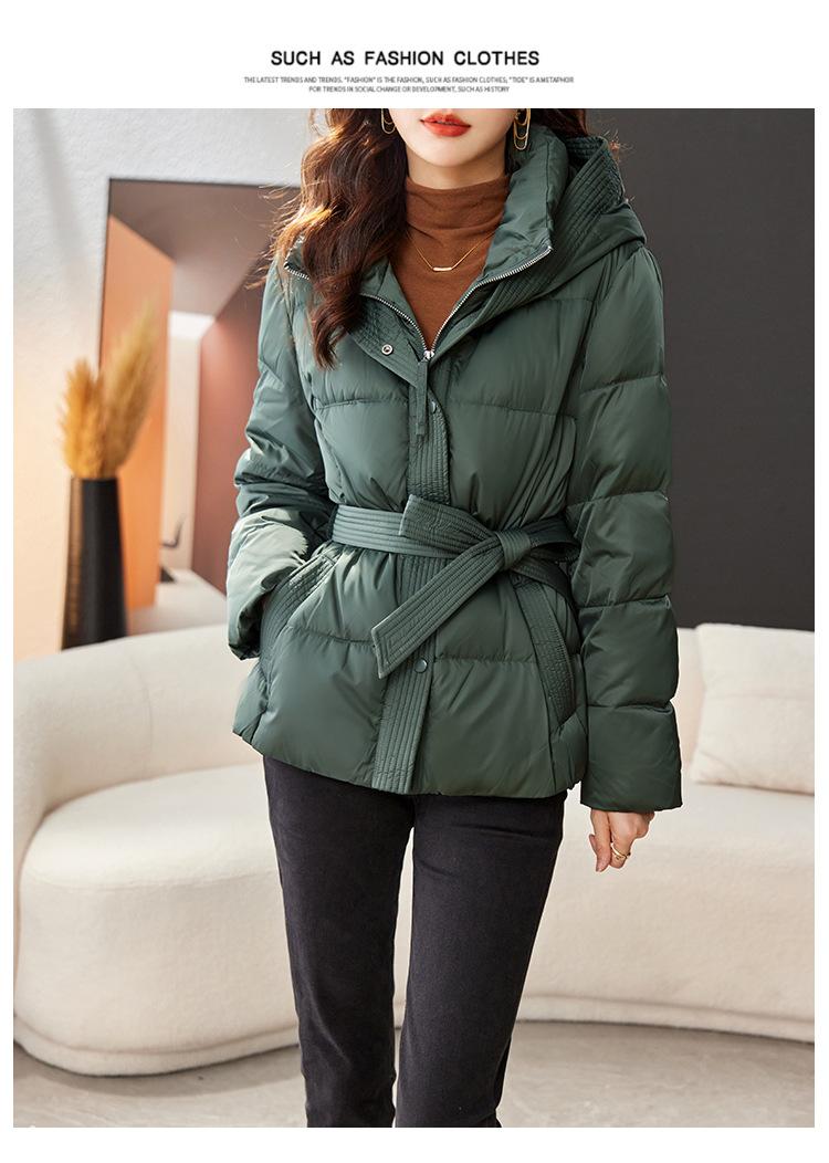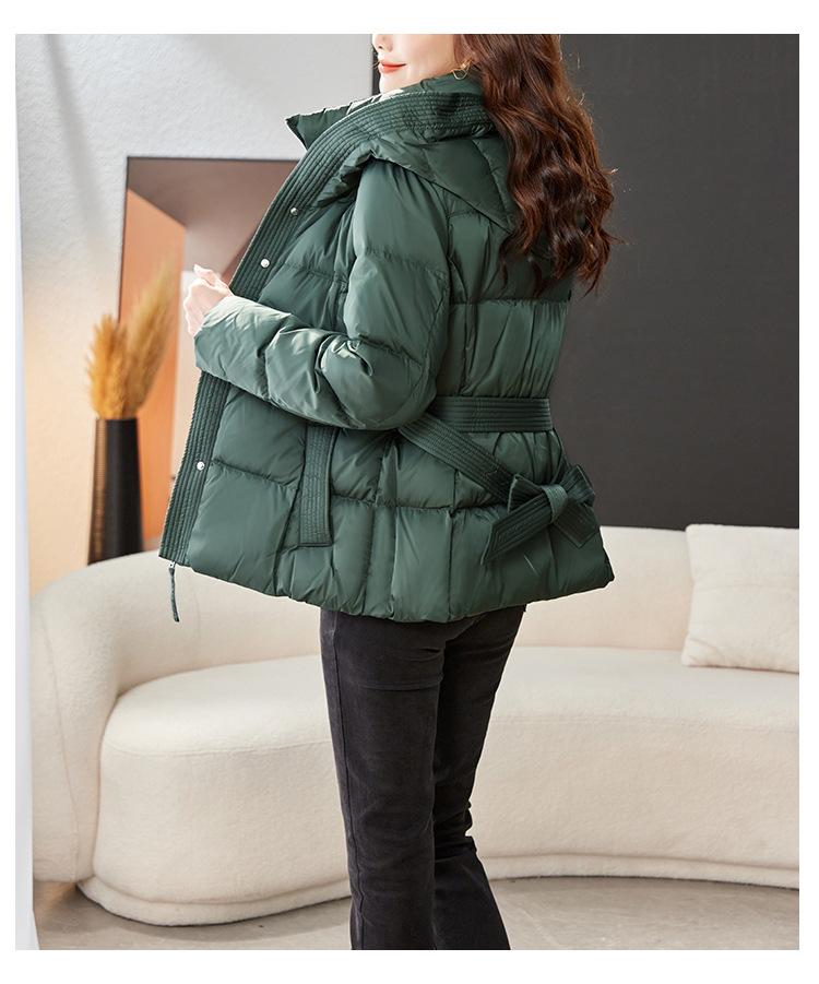 Abrigo acolchado de algodón adelgazante informal con capucha y cordones retro francés de lujo ligero de otoño e invierno de 2023, abrigo grueso a juego
