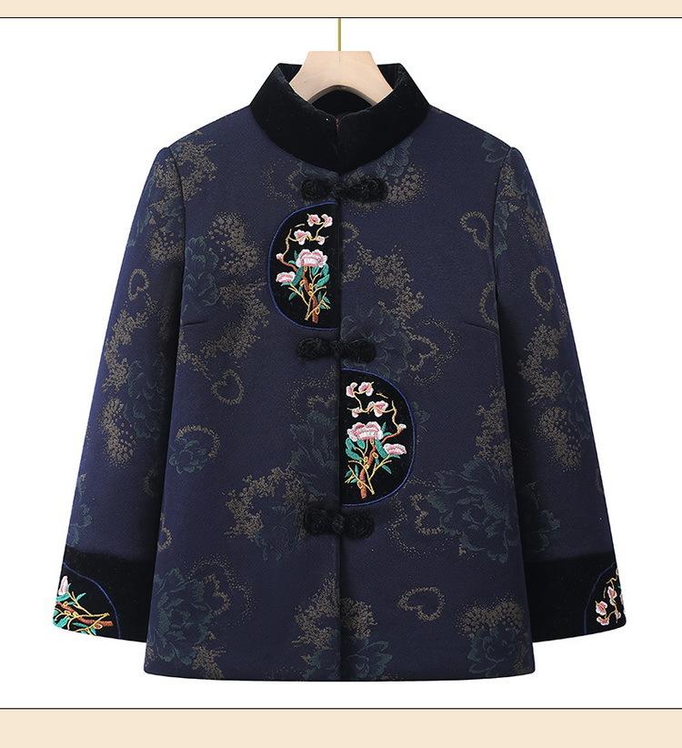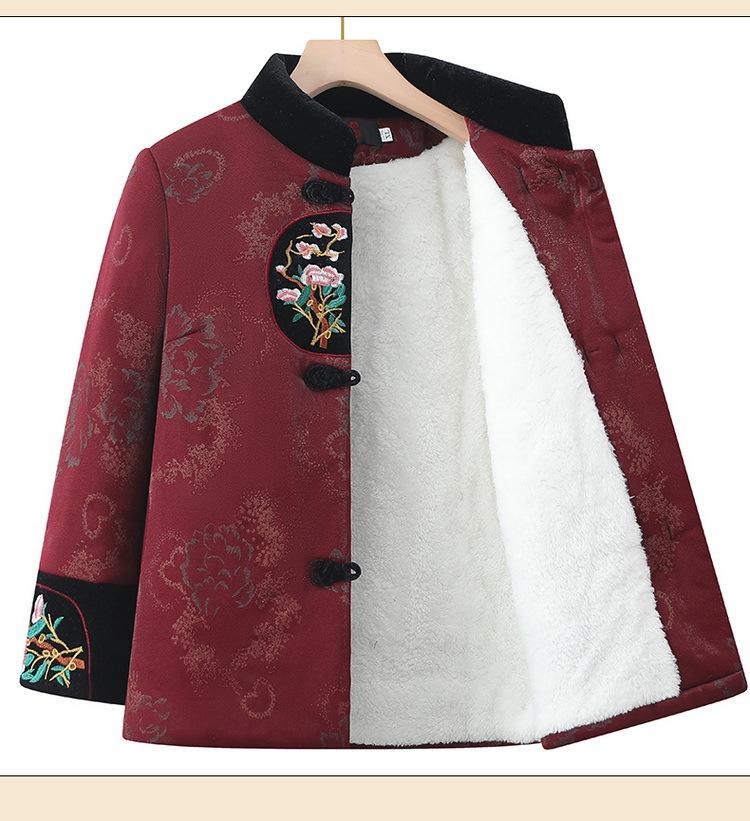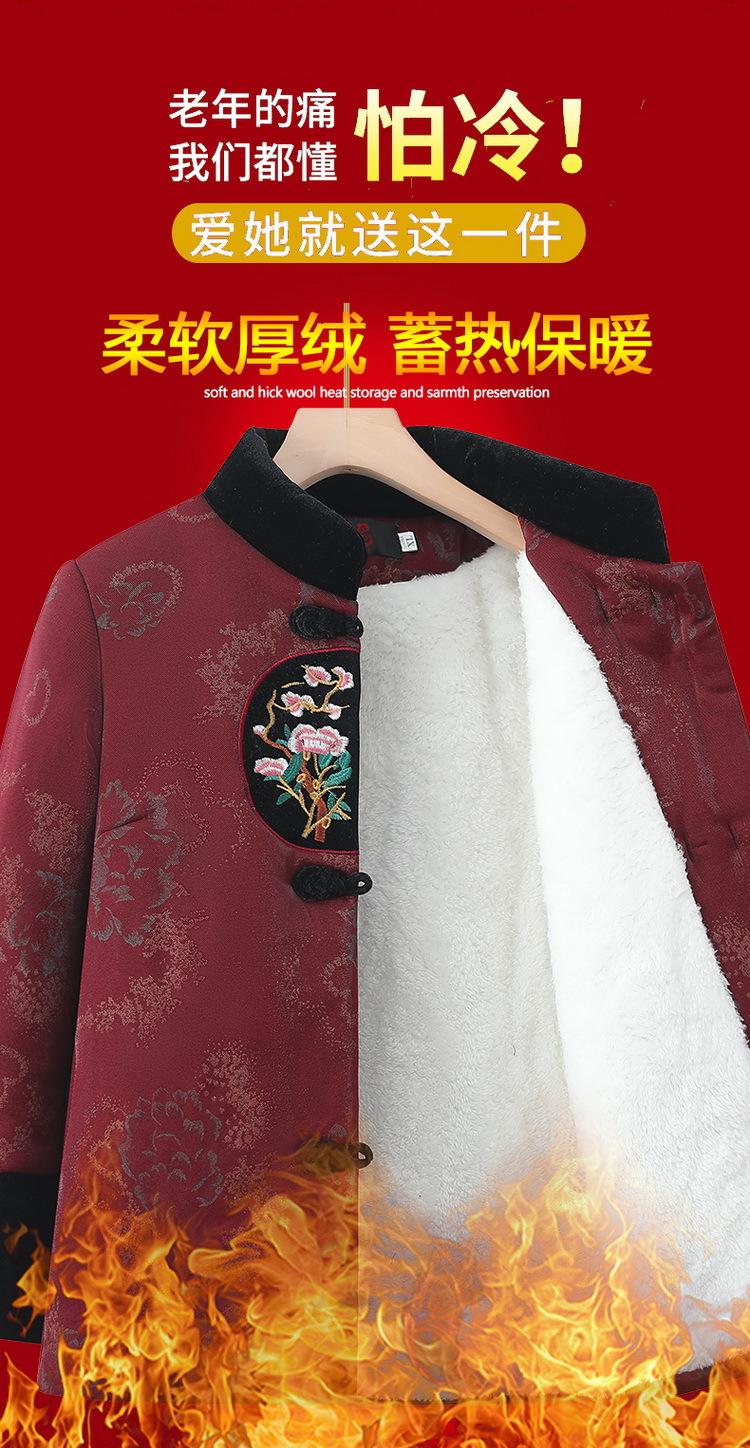 Ropa acolchada de algodón de la abuela, ropa de invierno gruesa con forro polar para mujeres mayores, chaqueta acolchada de algodón de la madre con hebilla, ropa de traje de señora Tang de 80 años
