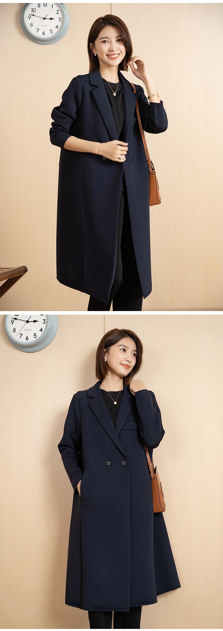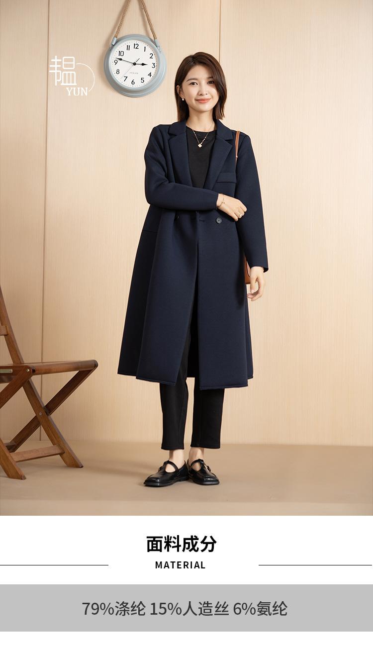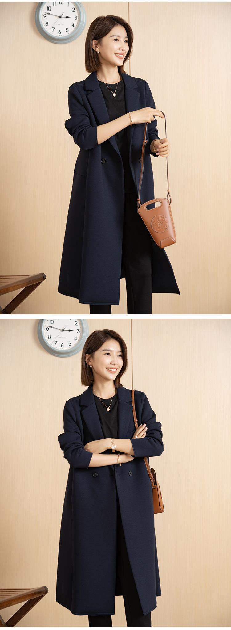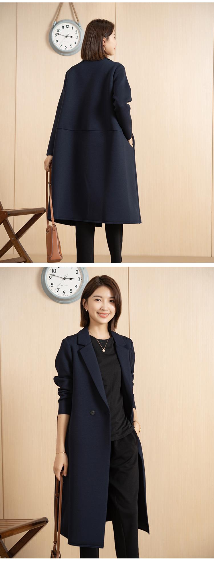 Yun Otoño e Invierno Coreano Nueva Moda Versátil Simple Abrigo Botón Elegante Cuello de Traje Largo Chaqueta Cortavientos para Mujer
