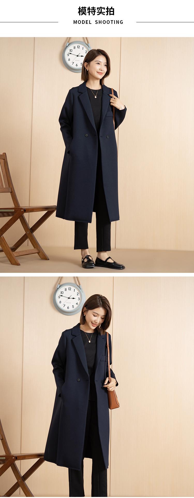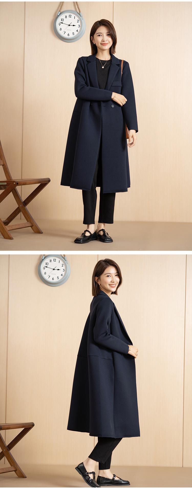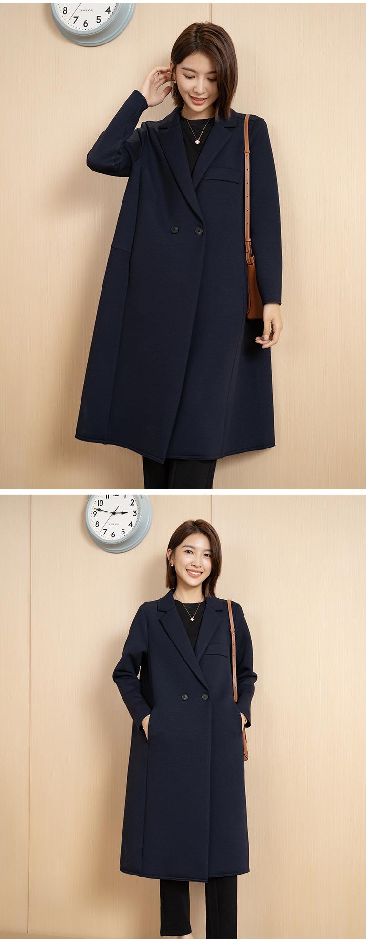 Yun Otoño e Invierno Coreano Nueva Moda Versátil Simple Abrigo Botón Elegante Cuello de Traje Largo Chaqueta Cortavientos para Mujer