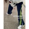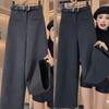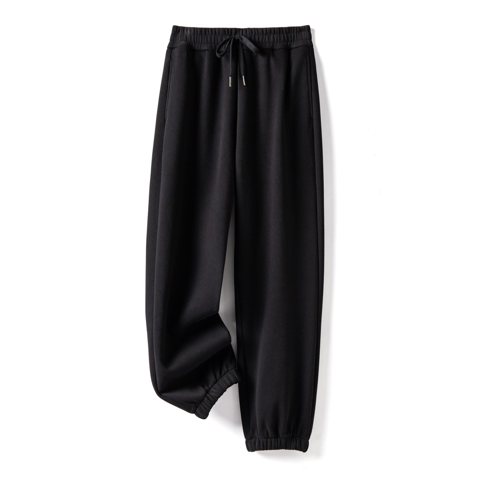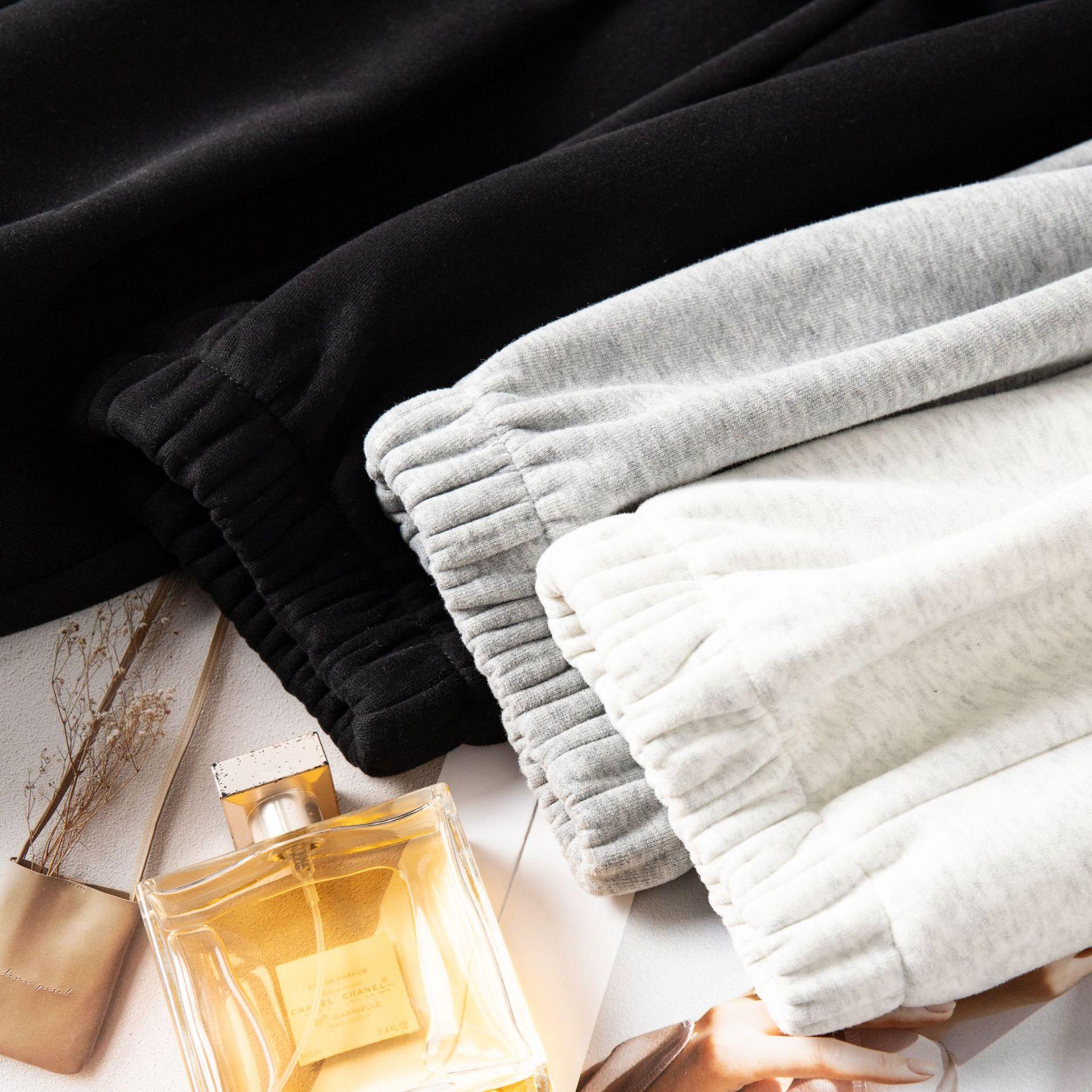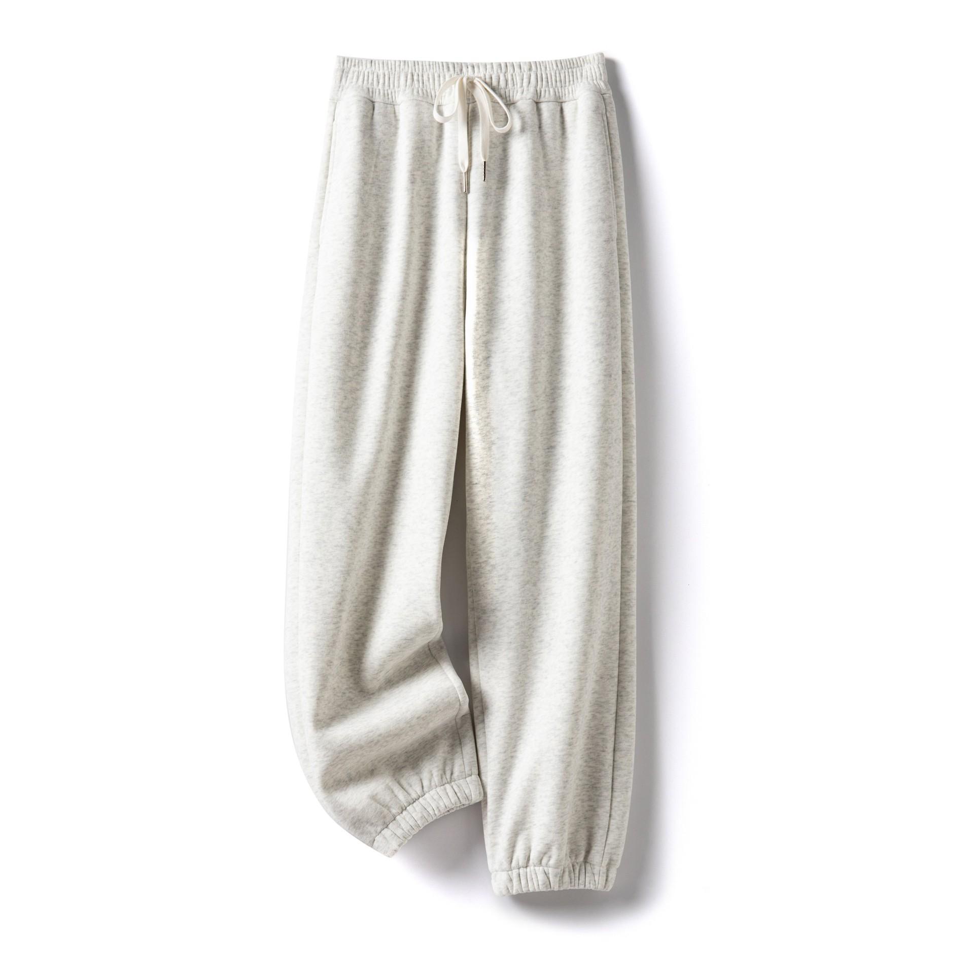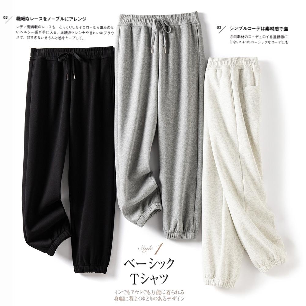 Estilo casual simple para viajero japonés, pantalones deportivos rectos de felpa de bebé gruesos y cálidos con cordón elástico en la cintura para mujer