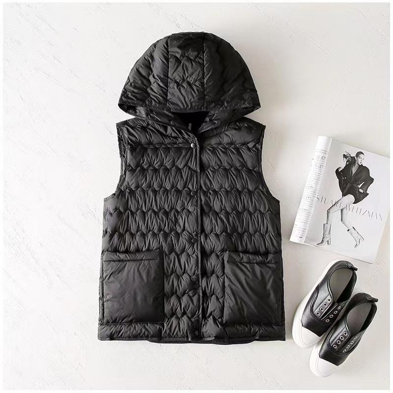 Chaleco ligero con capucha para mujer, abrigo informal y cálido.