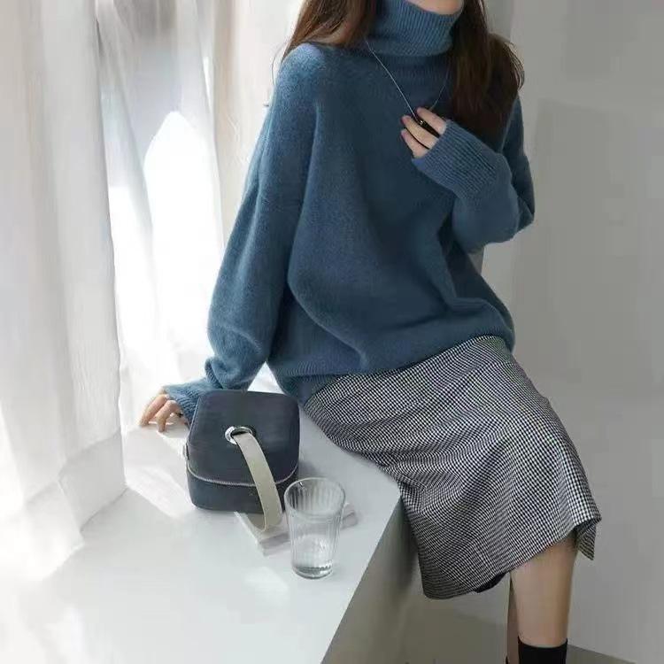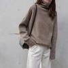 Suéter de cuello alto con forro polar interno para mujer, ropa exterior de estilo holgado y relajado, camisa base de cuello alto para otoño e invierno, top de punto suave, ceroso y grueso