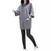 Ropa de Otoño/Invierno 2025 Nueva Talla Grande para Mujeres Gorditas, Abrigo Holgado de Manga Larga con Parches, Top Largo de Color Sólido, Sudadera de Cuello Redondo