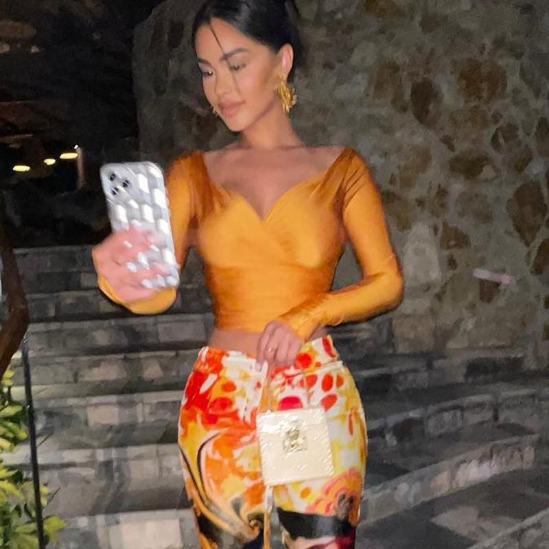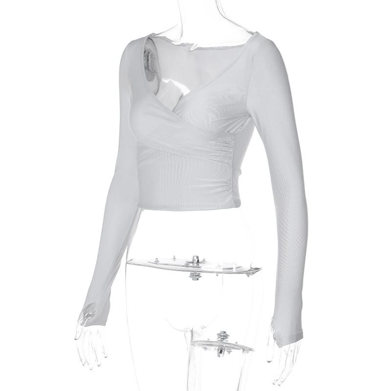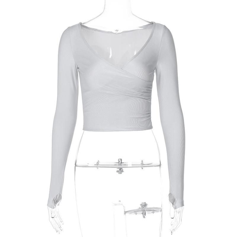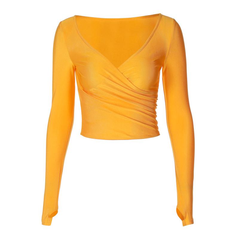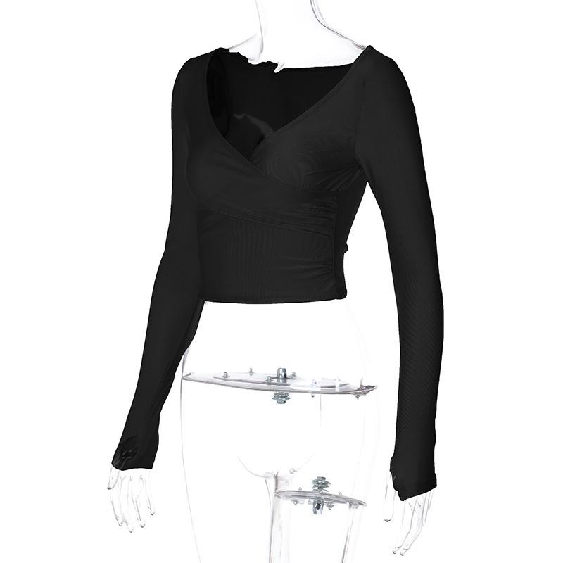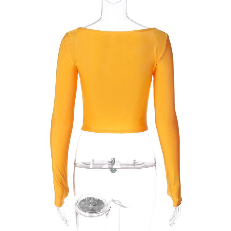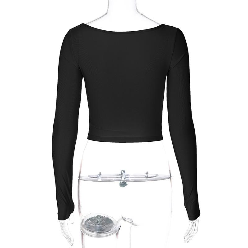 Nuevo top de estilo ins europeo y americano de gran venta, color sólido, corte ajustado, estilo chica sexy, versátil, manga larga, ajustado, estilo callejero, camisa básica
