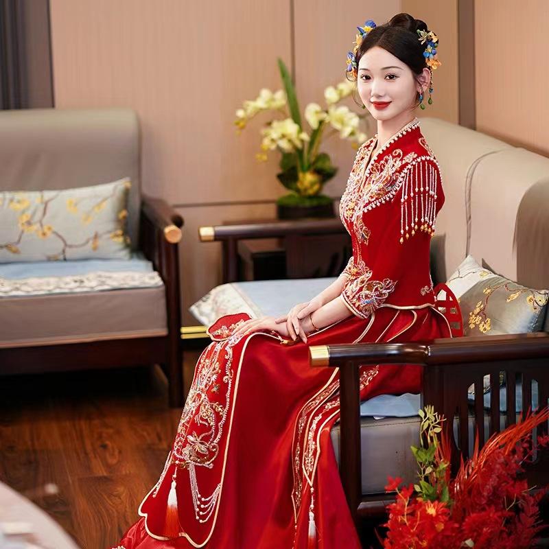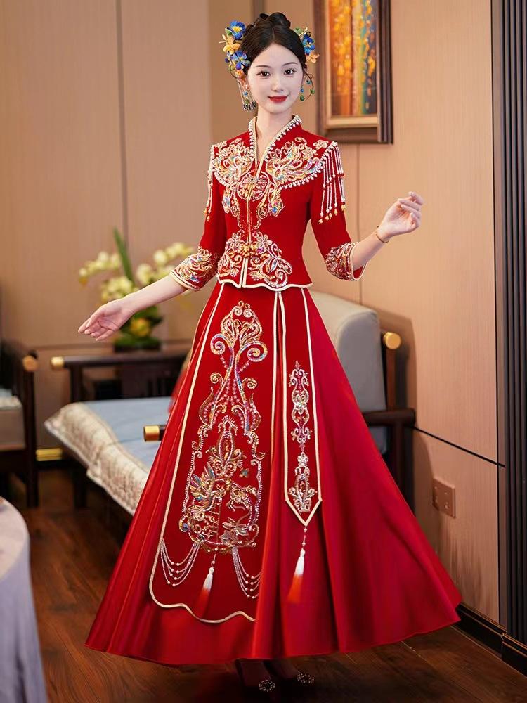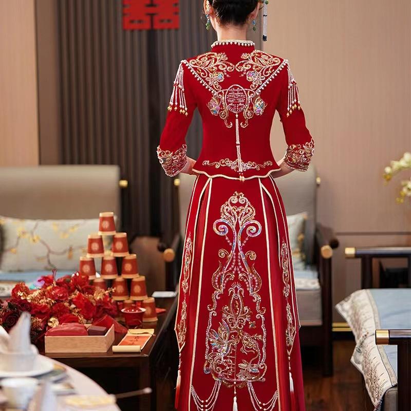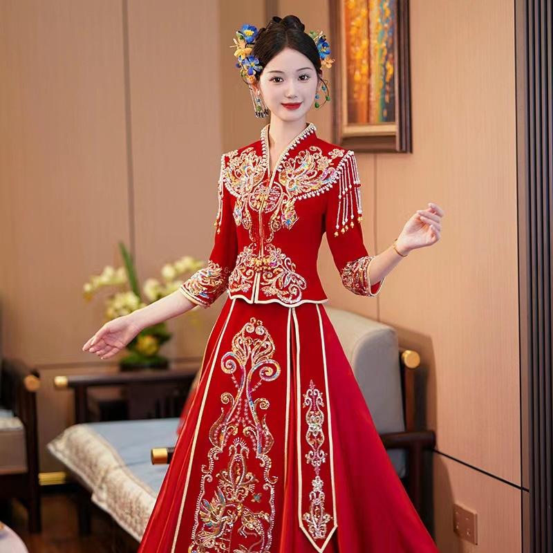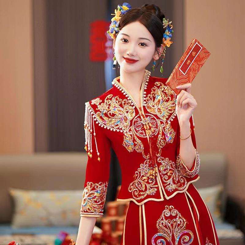 Vestido Xiuhe de cuello bajo novia 2023 nuevo boda china vestido de dragón y fénix retro corte vestido de novia alta gama trabajo pesado Terciopelo