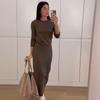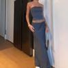 Otoño 2024 nuevo traje de dos piezas con falda dividida y top corto de color sólido transfronterizo de Amazon europeo y americano