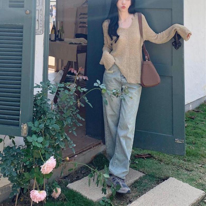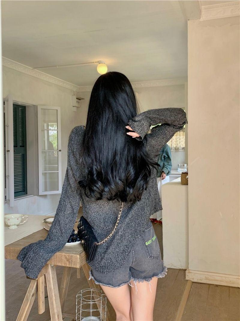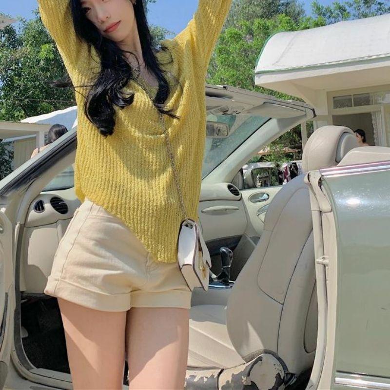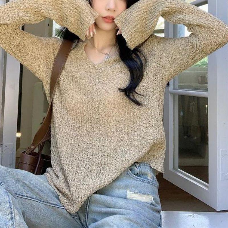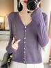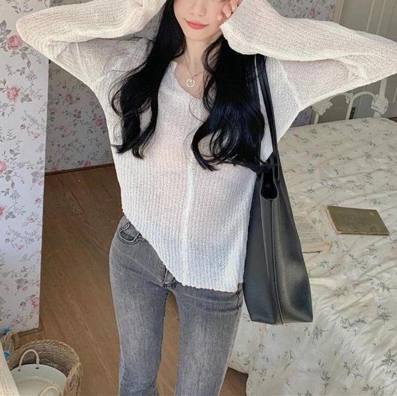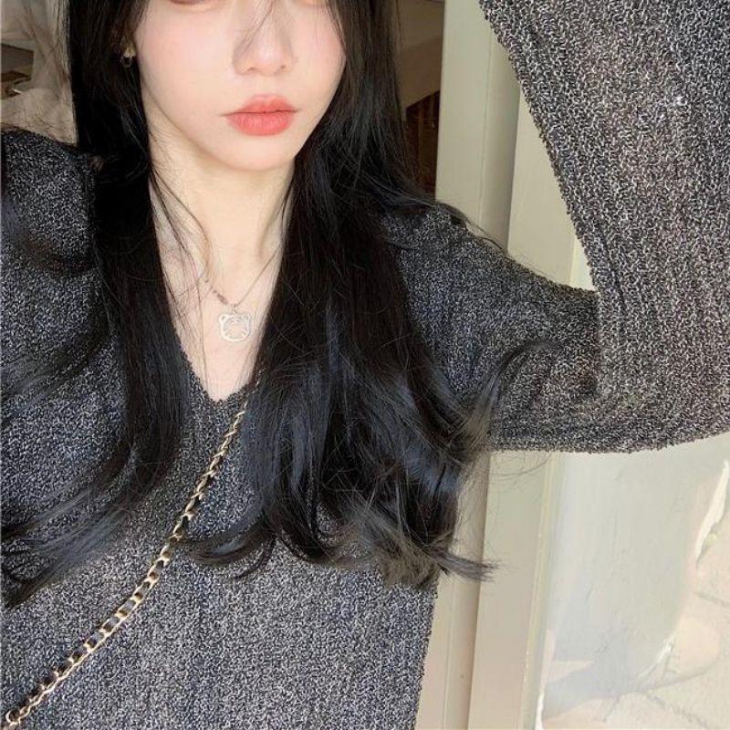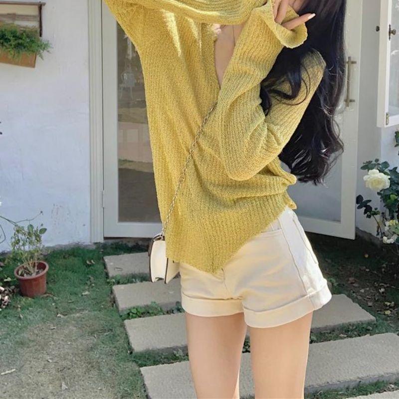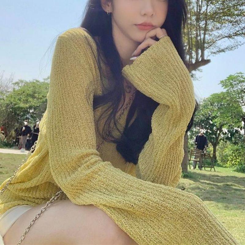 Cárdigan Delgado de Nicho con Cuello en V Camiseta Base para Mujer Verano Ajustado Suelto Negro Interior Camiseta de Punto Top Protector Solar