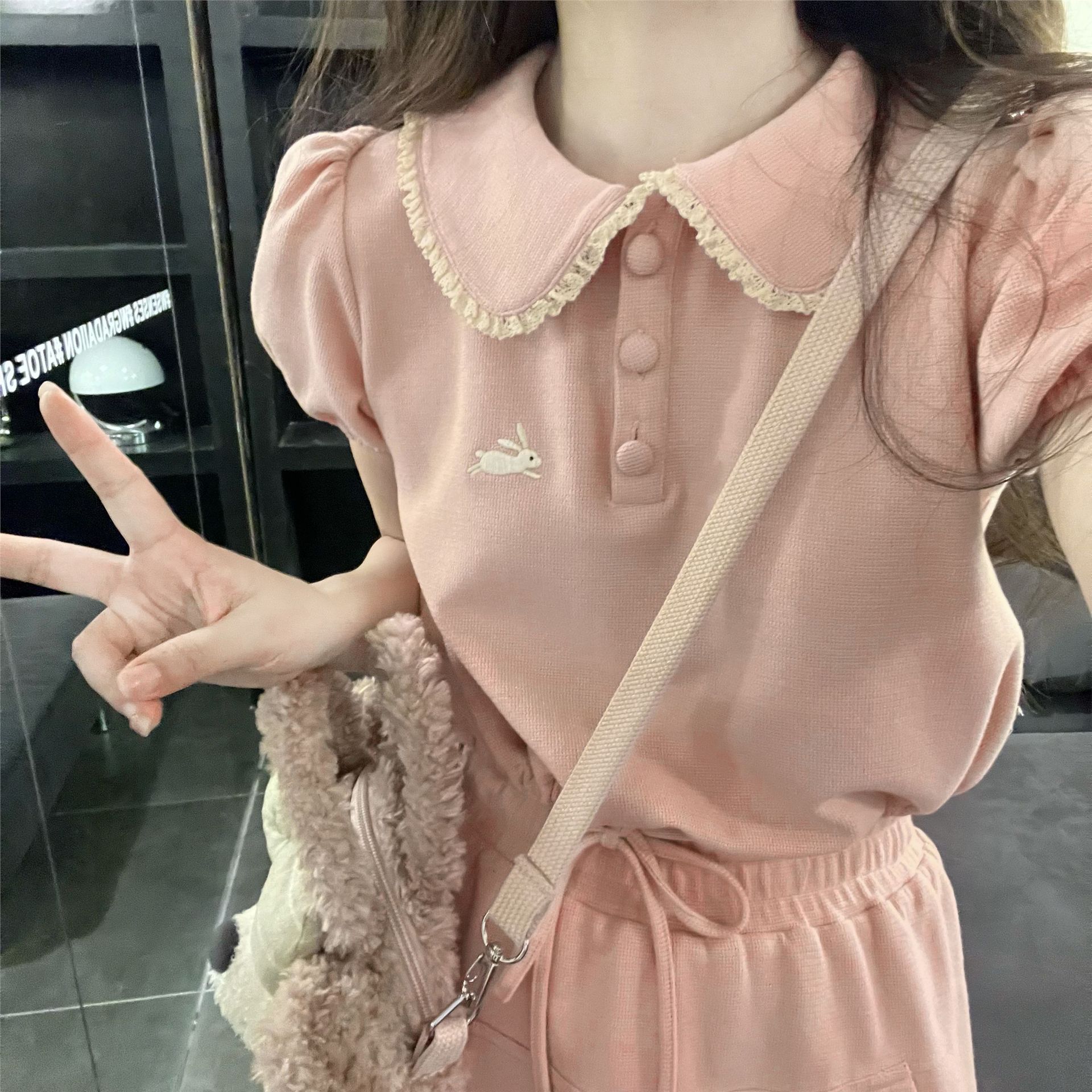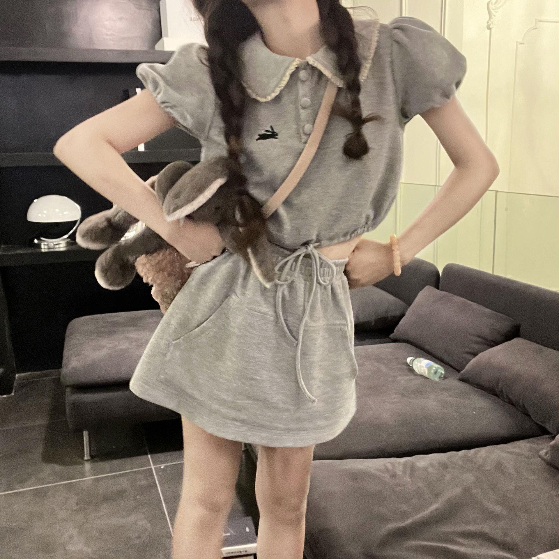Traje de Solapa de Conejo de Moda de Verano 2025 para Mujer, Estilo Casual de Verano, Top con Cordón, Falda Corta, Conjunto de Dos Piezas a la Moda