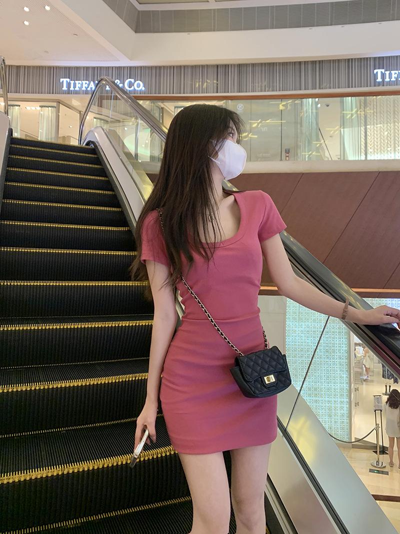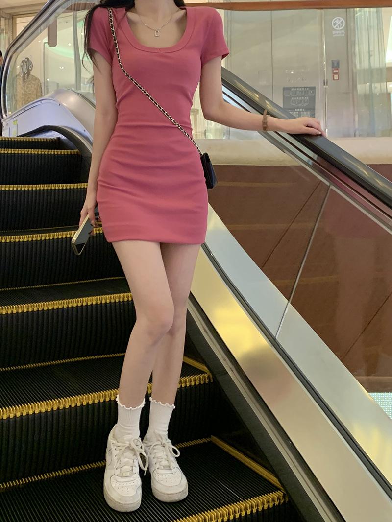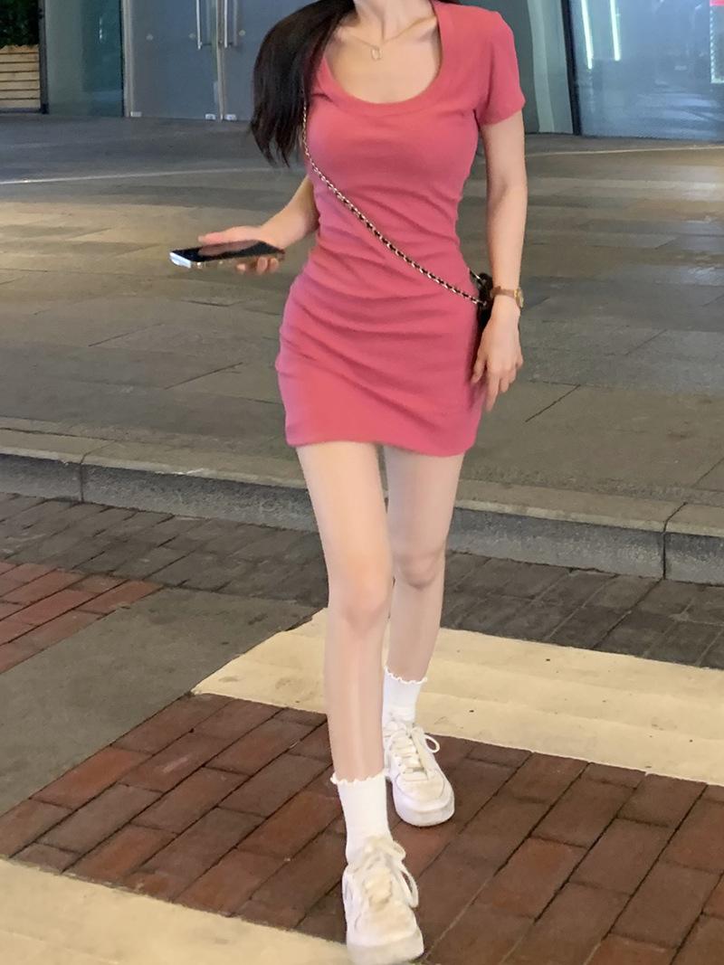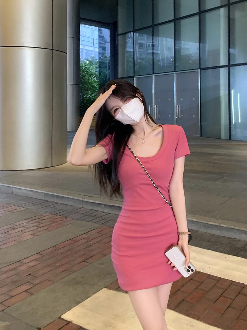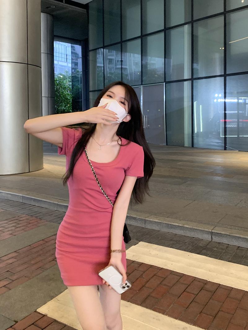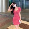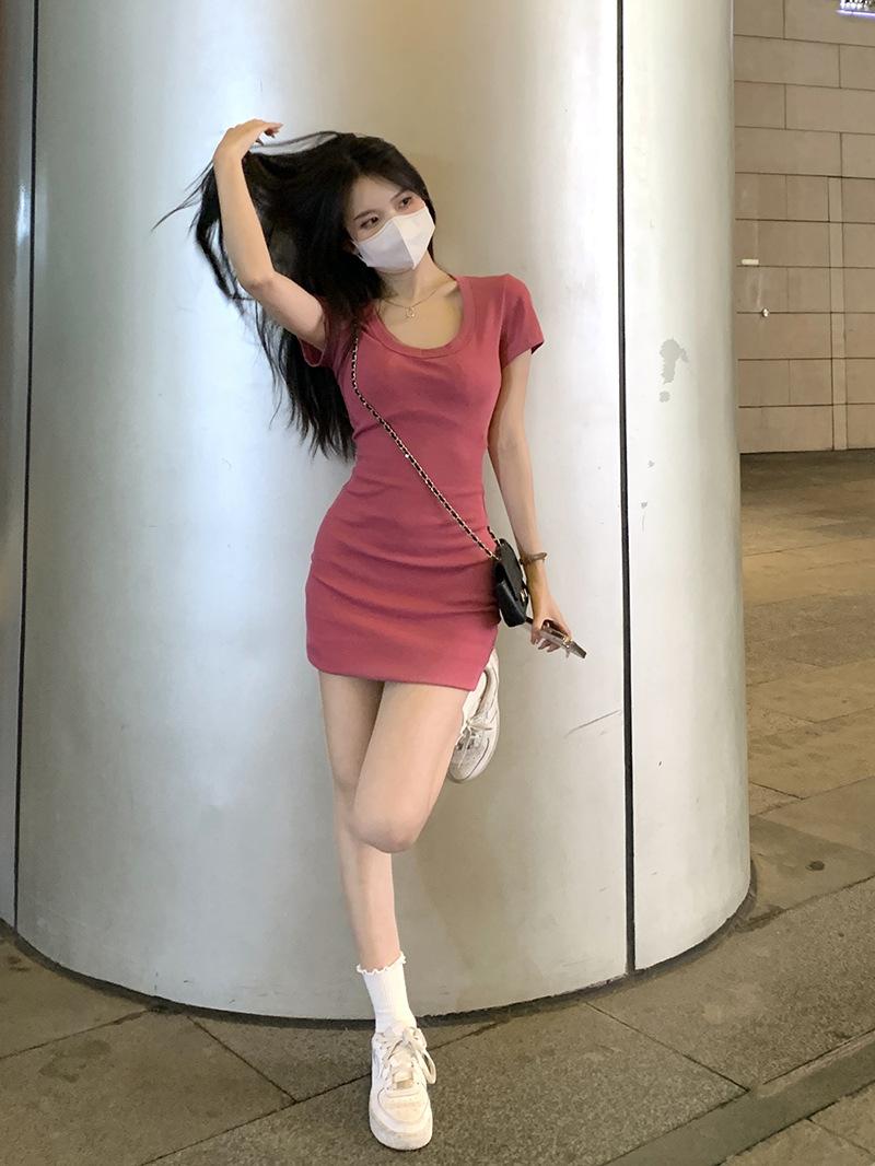 Vestido sexy de manga corta estilo deseo puro para mujer, verano, nuevo estilo, cintura adelgazante, temperamento, cadera, falda corta, tendencia