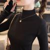 Suéter de terciopelo Andy con cuello alto y media manga para mujer, otoño e invierno 2023, manga corta, ropa interior ajustada con parte inferior fina.