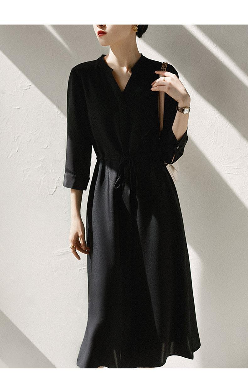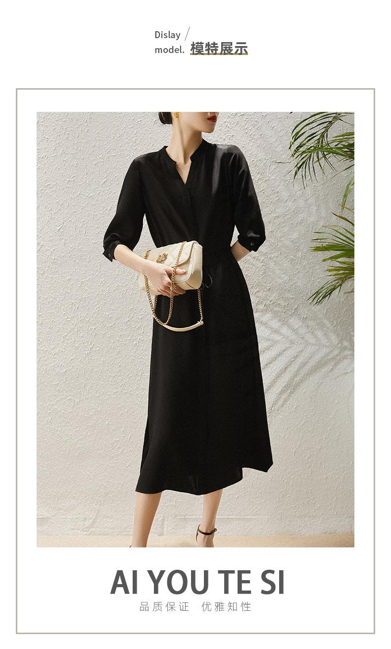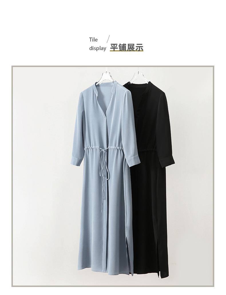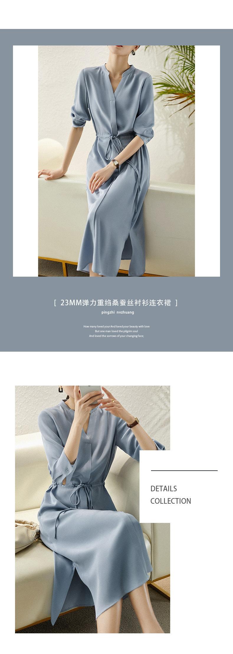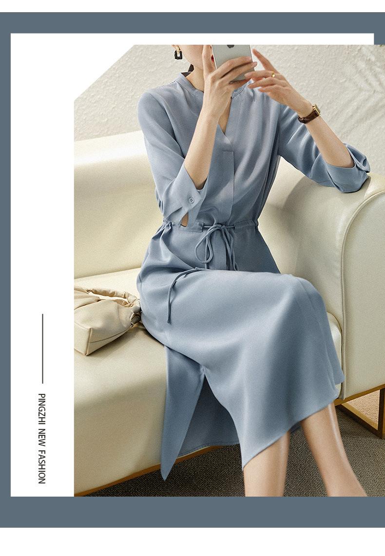 Vestido Camisero de Seda de Morera de Peso Pesado Falda Azul Seda 2025 Verano Mujer Largo Medio Elegante Falda Larga