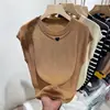 Top de Punto sin Mangas de Seda Helada con Empalme de Cadena de Estilo Europeo para Mujer, Tendencia de Verano 2025, Camiseta de Moda Calada