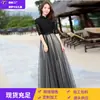 Compra Vestido de Mujer 2026 Nuevo Ajustado Vintage Cuello Alto Encaje Manga Media Negro Largo Anfitriona Banquete Vestido de Noche Vestido Largo al por mayor en Joom.pro