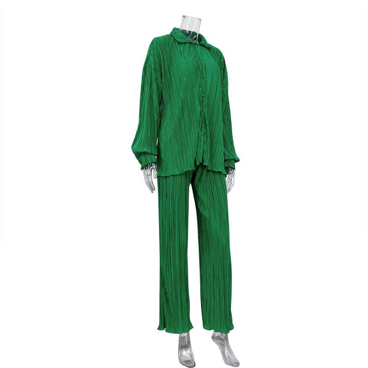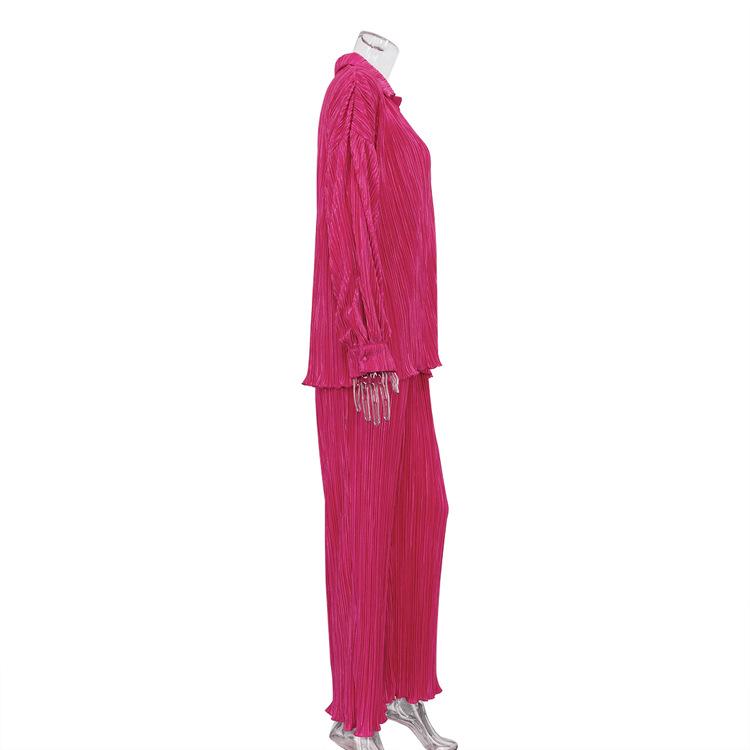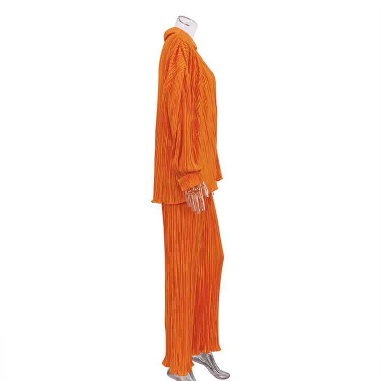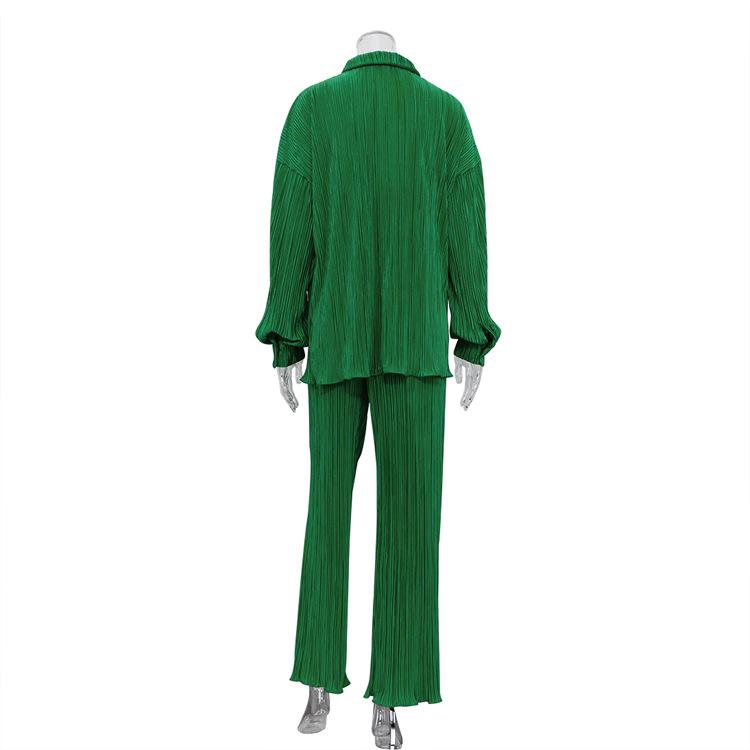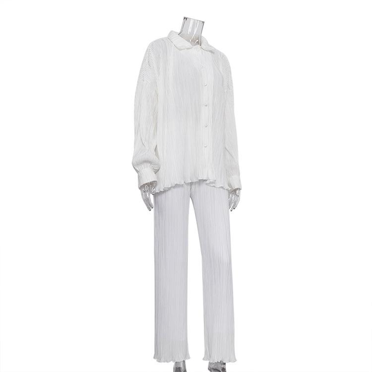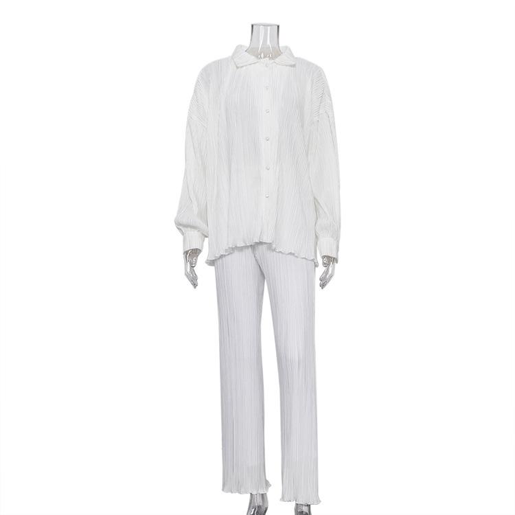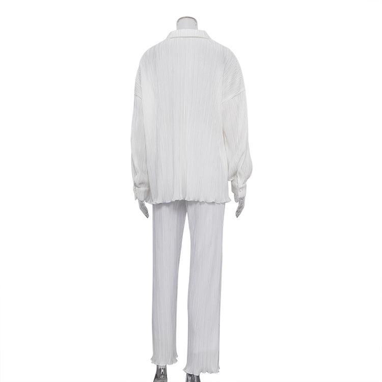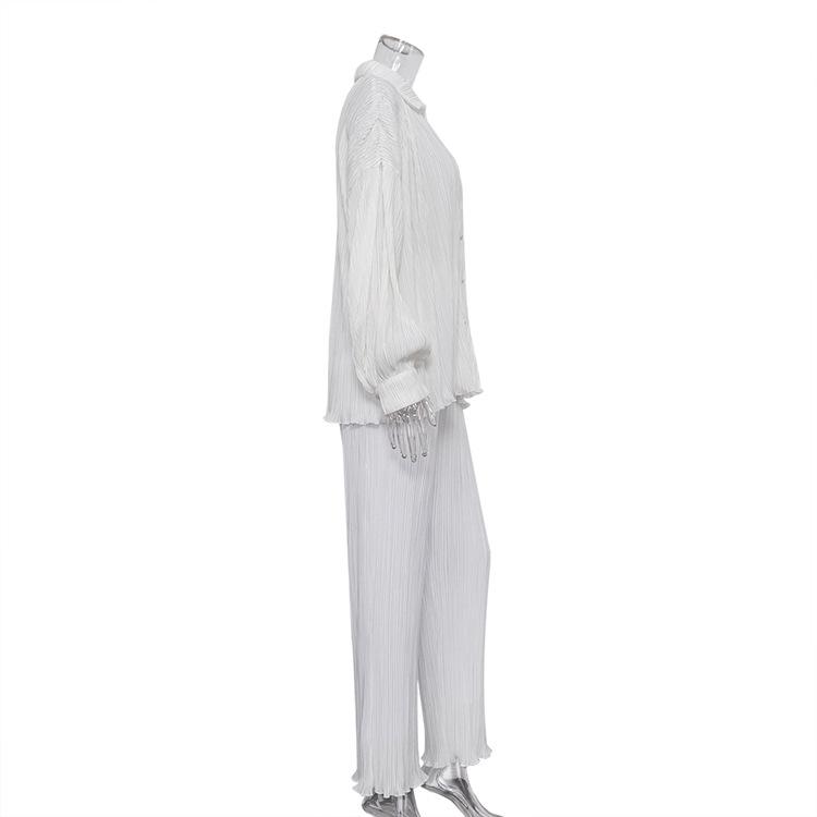 Traje casual de dos piezas para mujer europeo y americano 2023 de manga larga holgado plisado de pierna ancha otoño sexy sentido del diseño retro